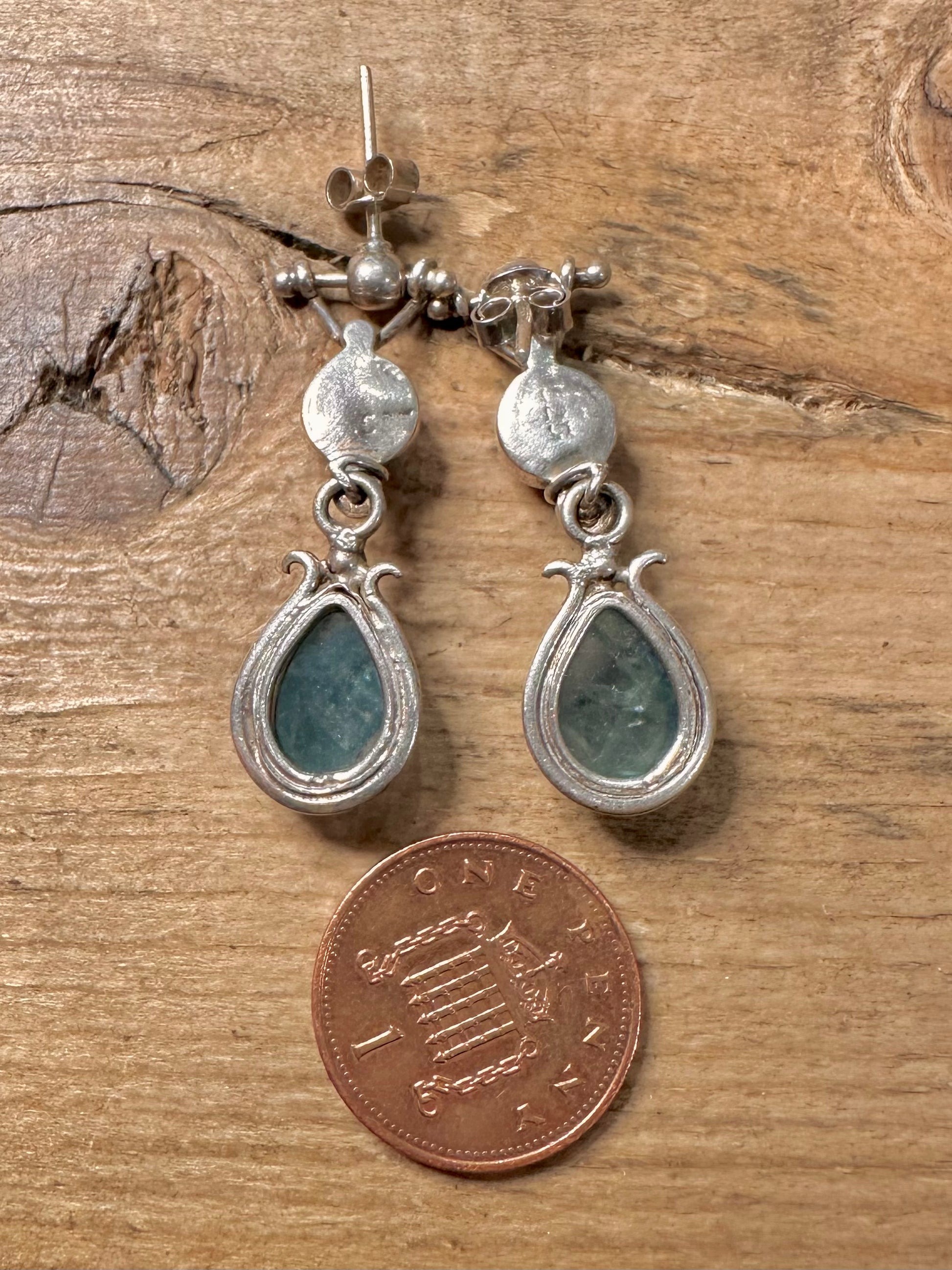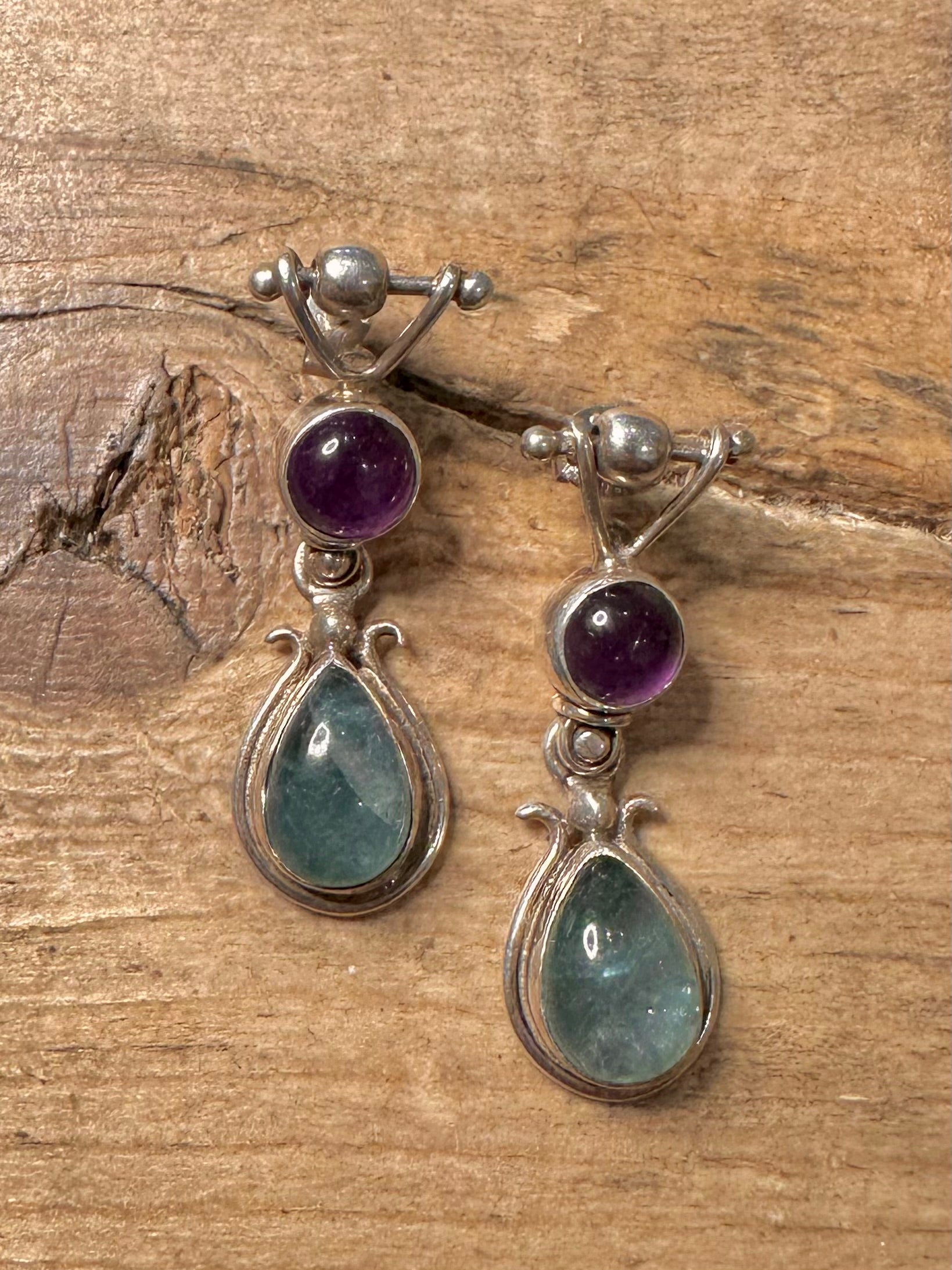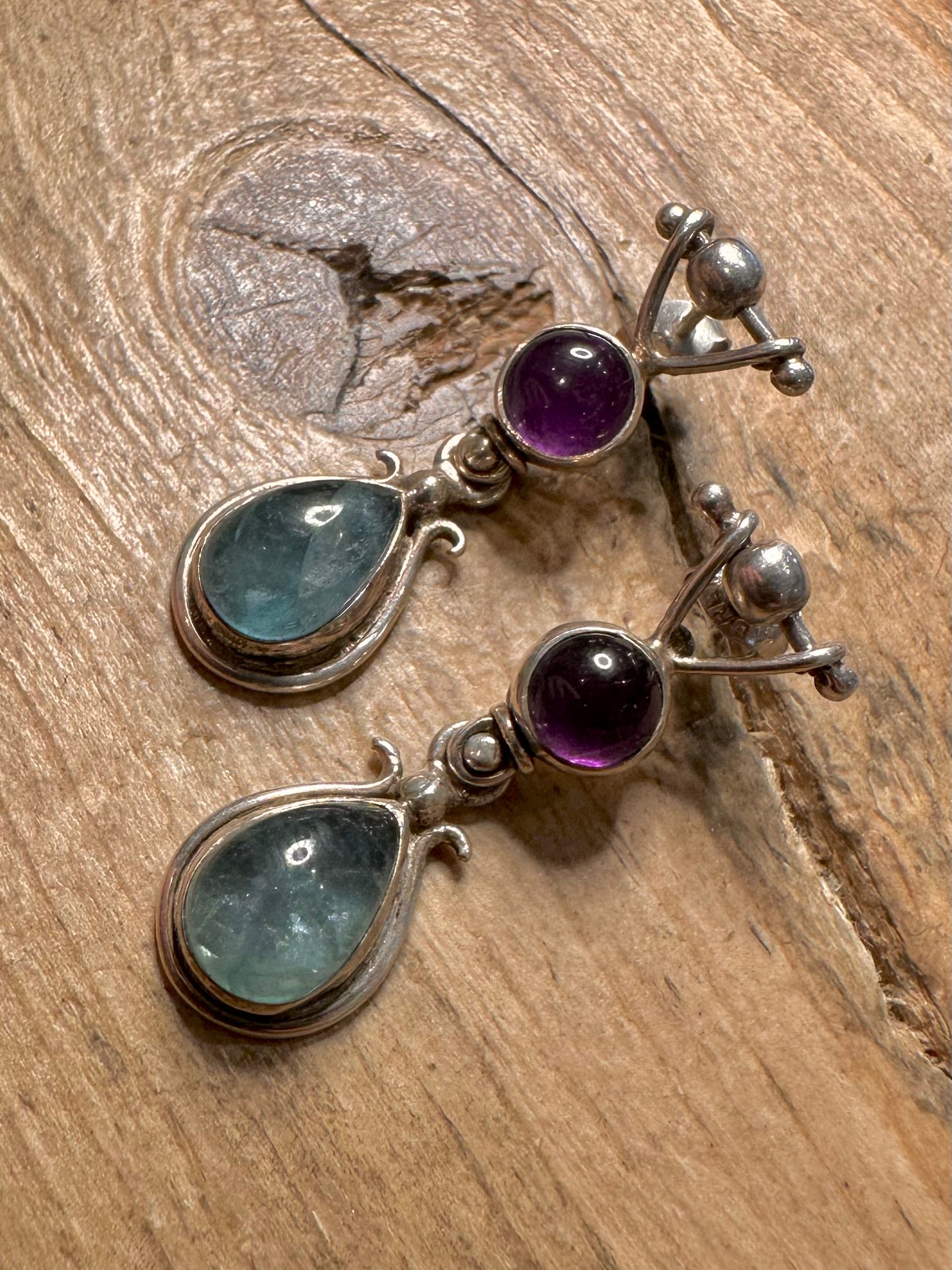 Abstract Amethyst and Blue Stone 925 Silver Earrings