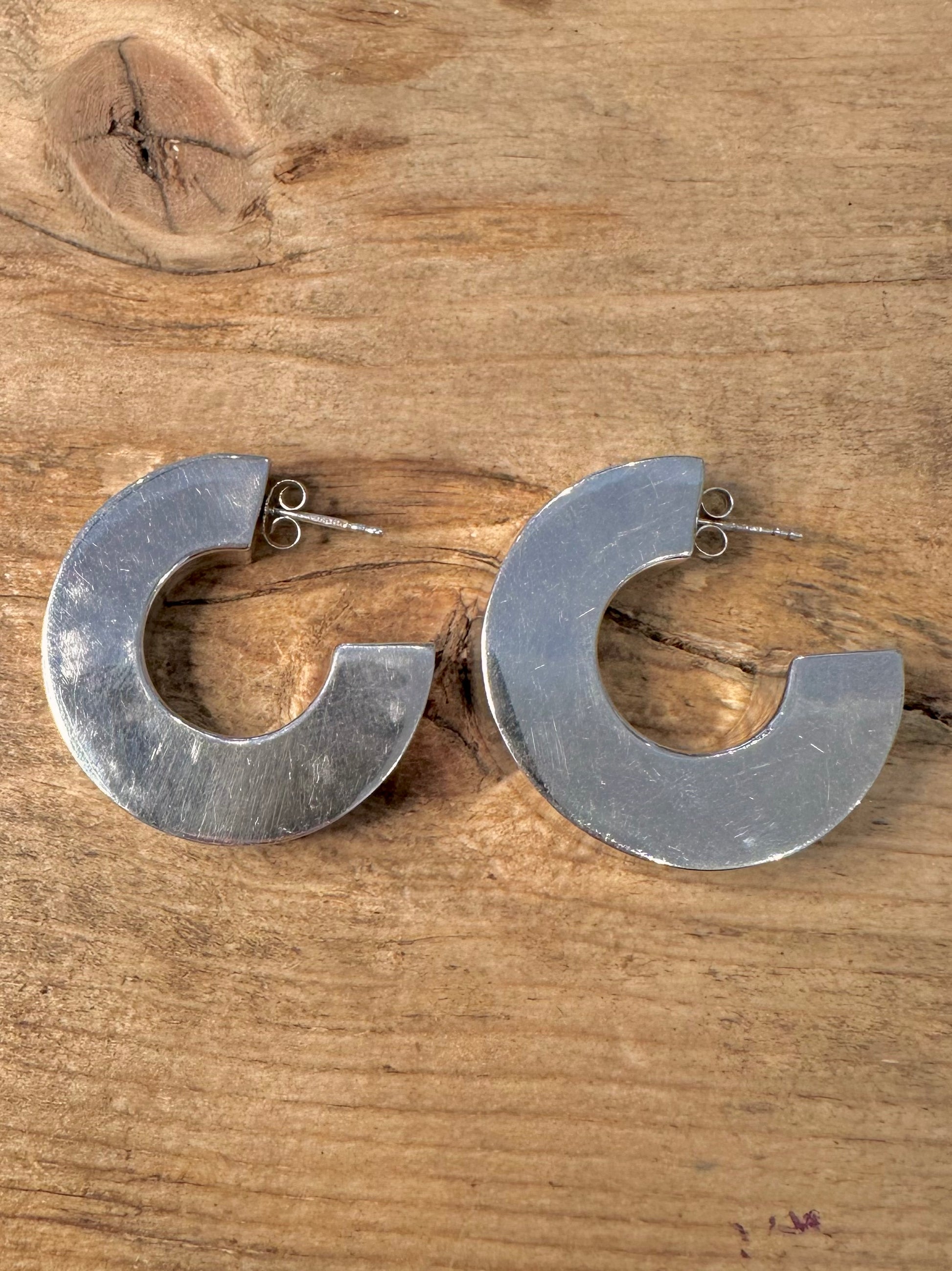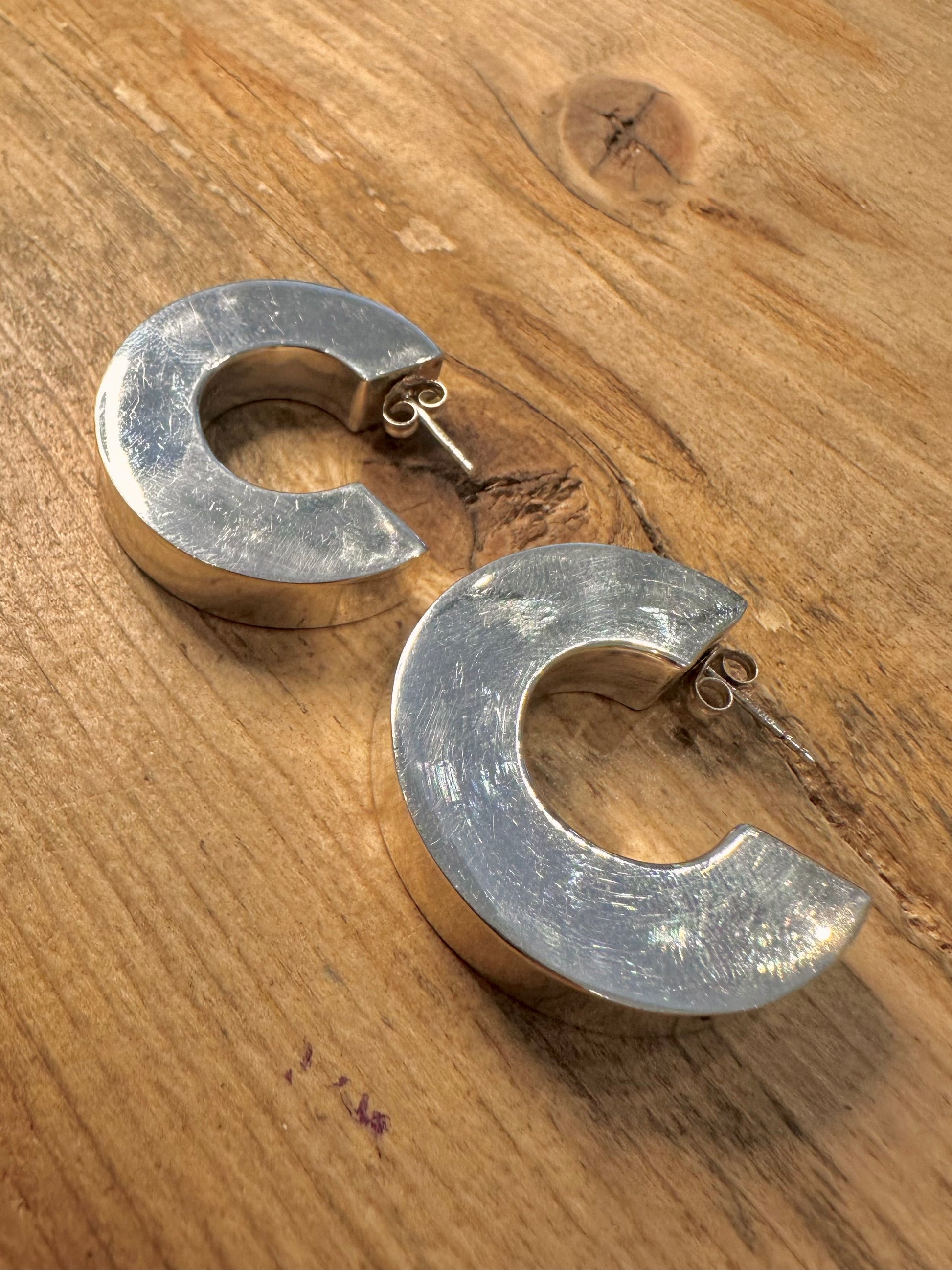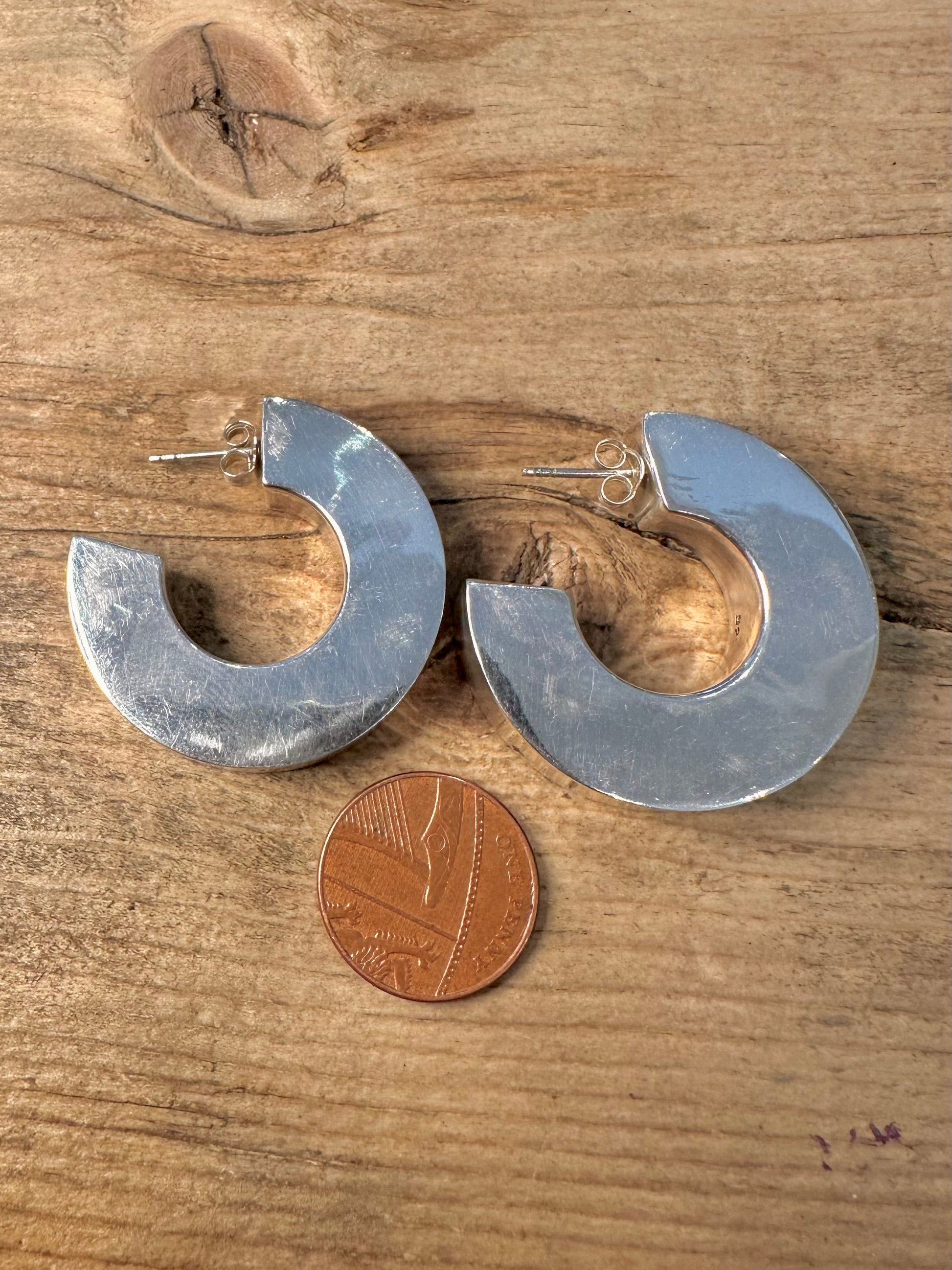 Abstract Chunky Half Hoops 925 Silver Earrings