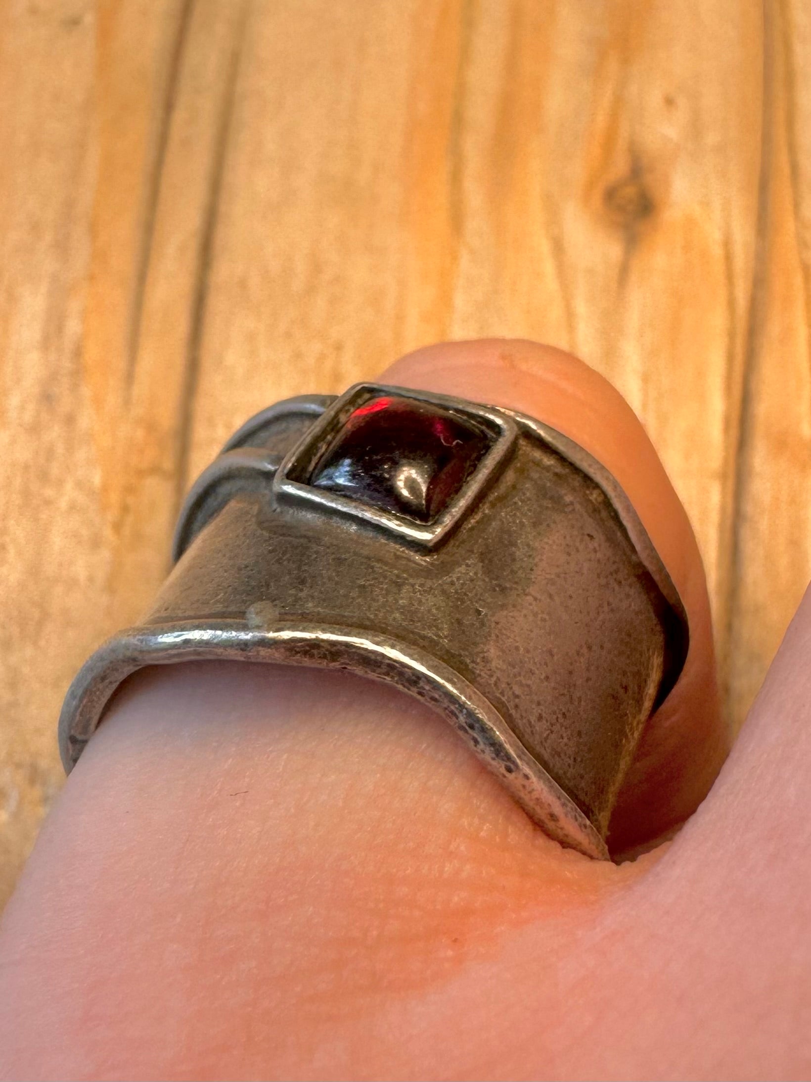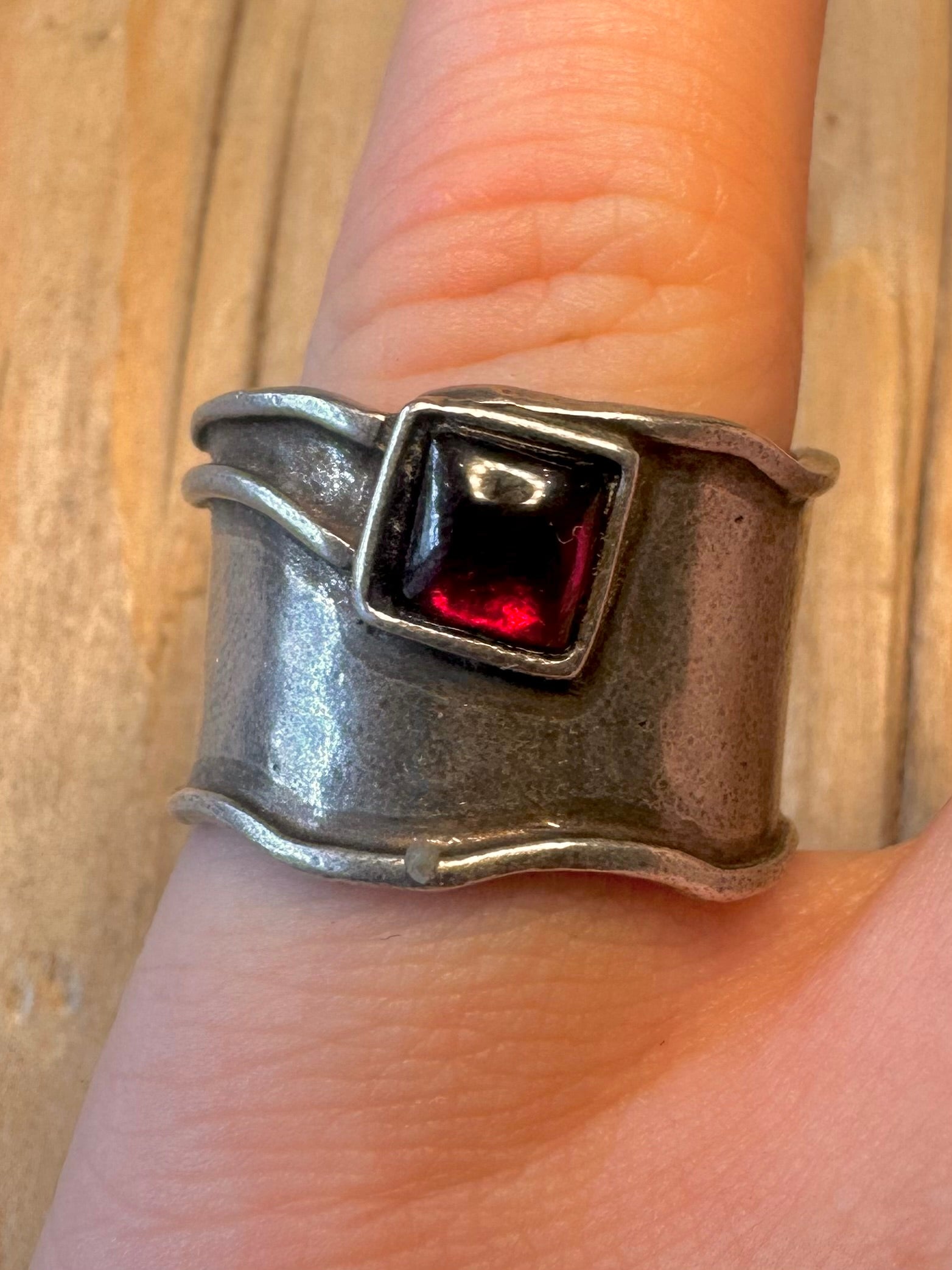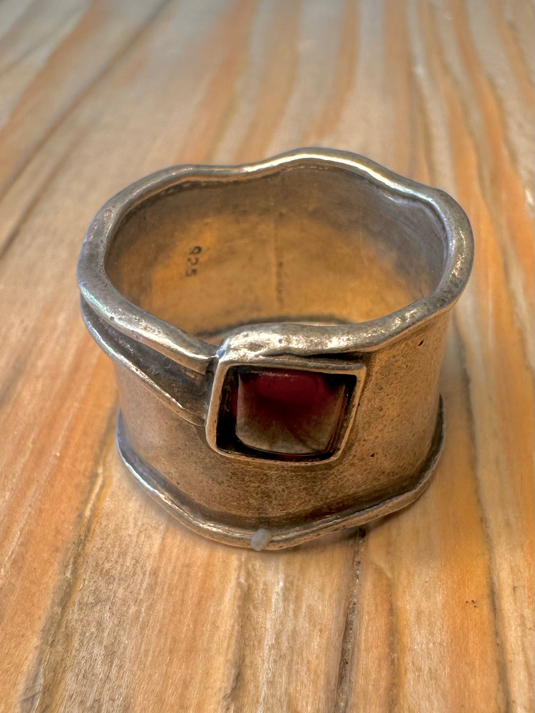 Abstract Garnet Wavy Band 925 Sterling Silver Size Q Ring