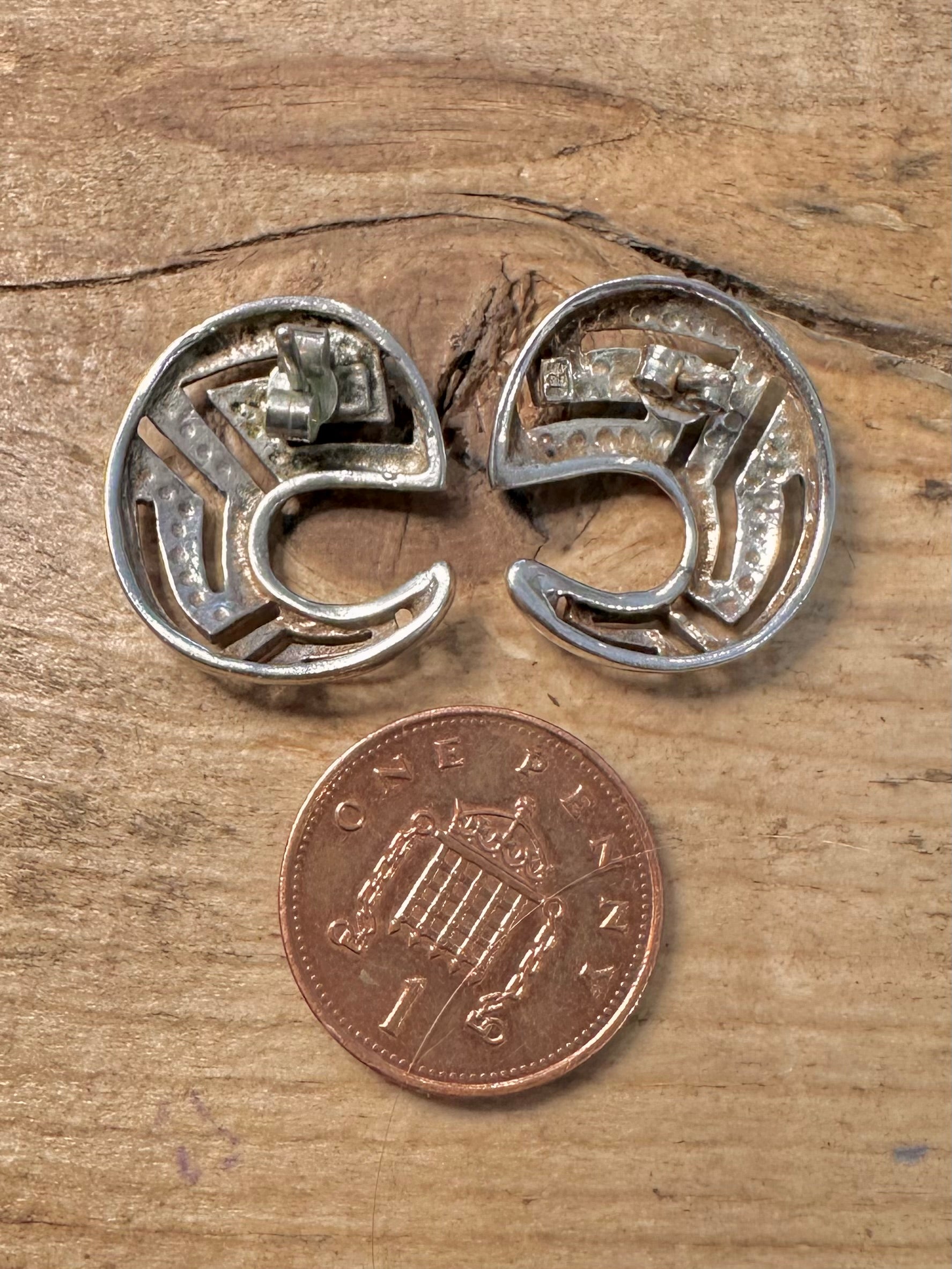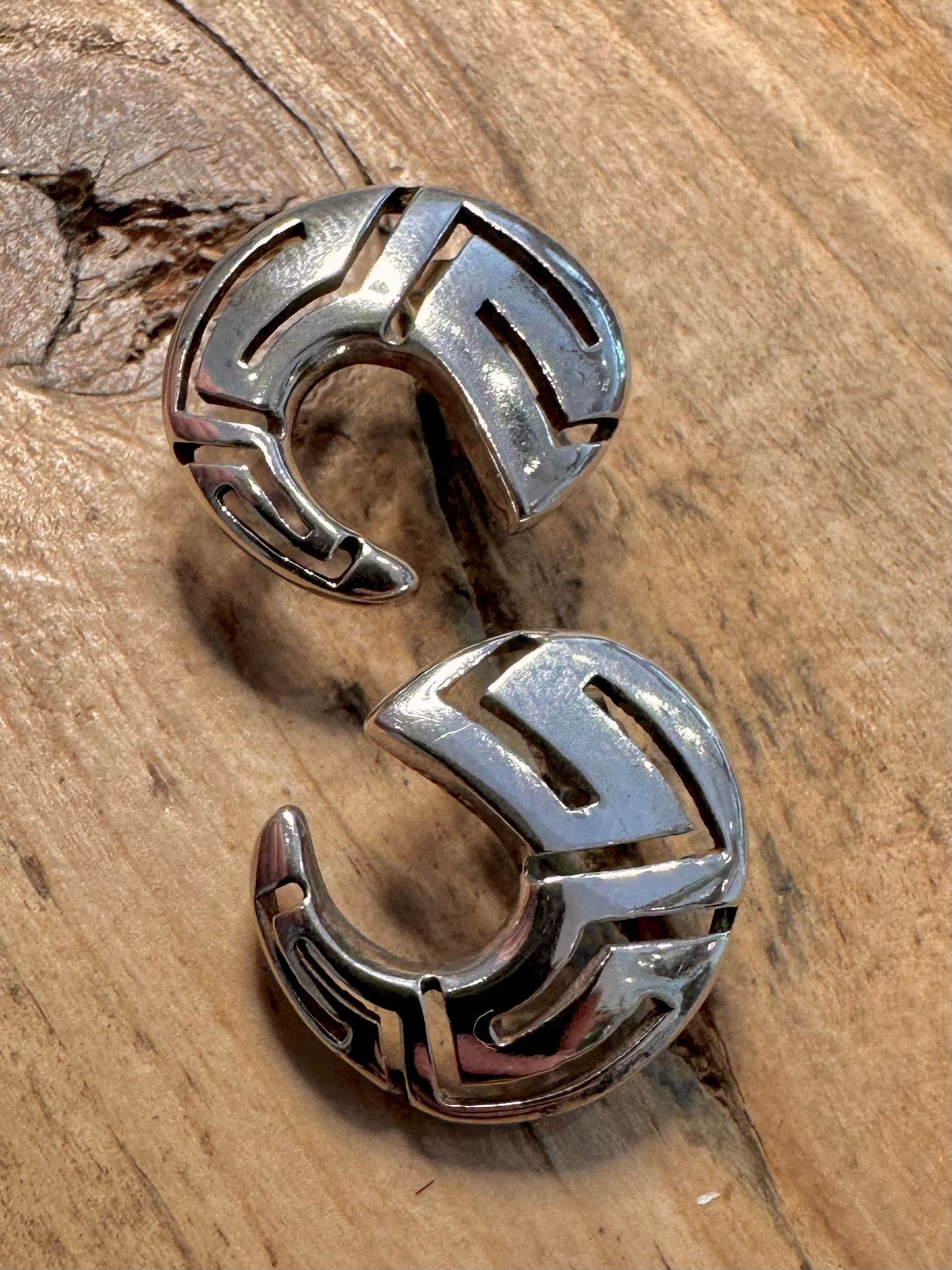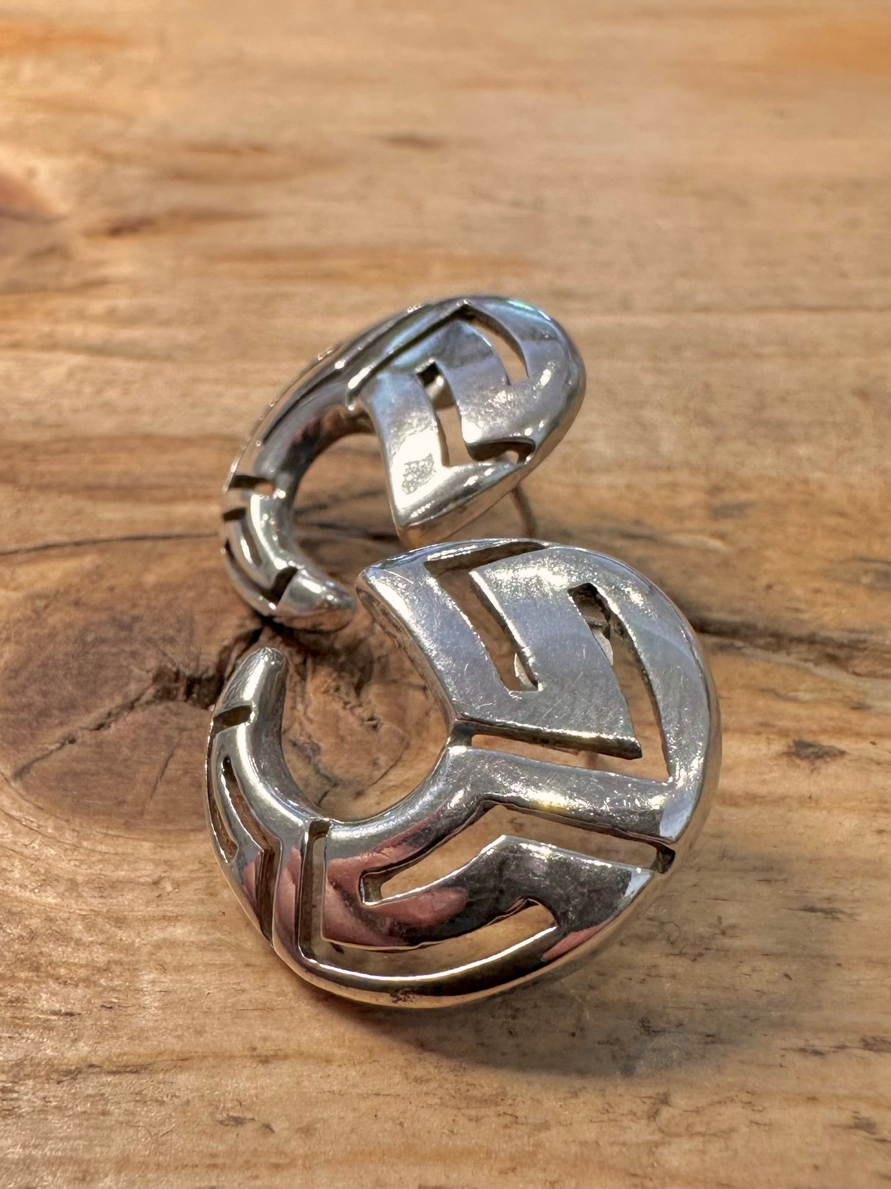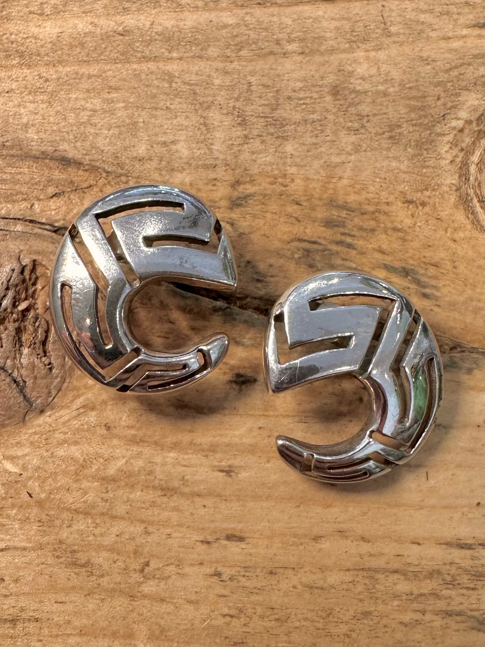 Abstract Greek Key Stud 925 Silver Earrings