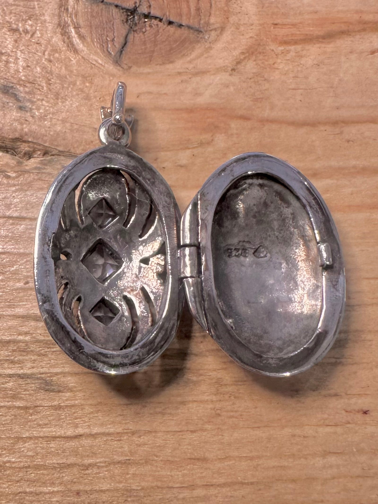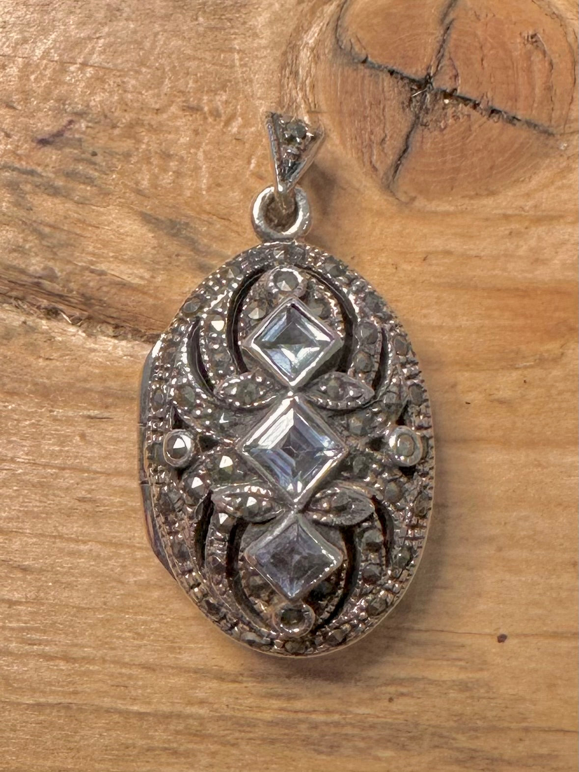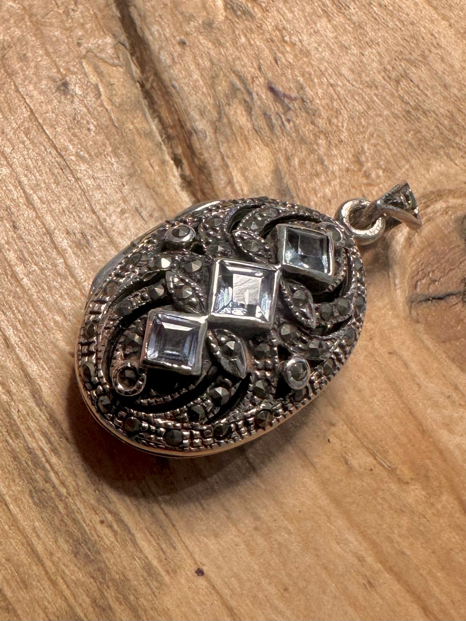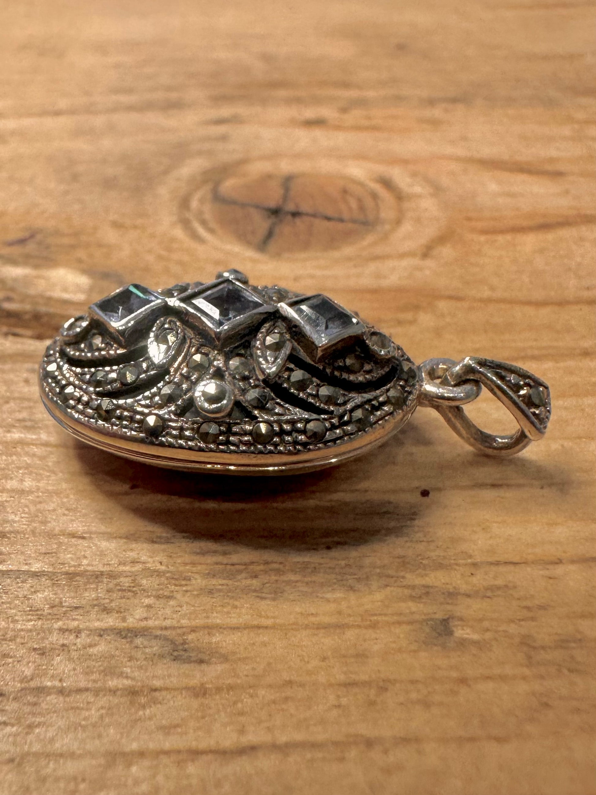 Modern 2001 Blue Topaz and Marcasite 925 Silver Locket Pendant