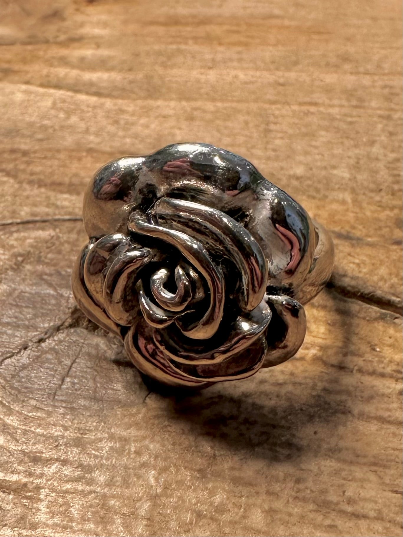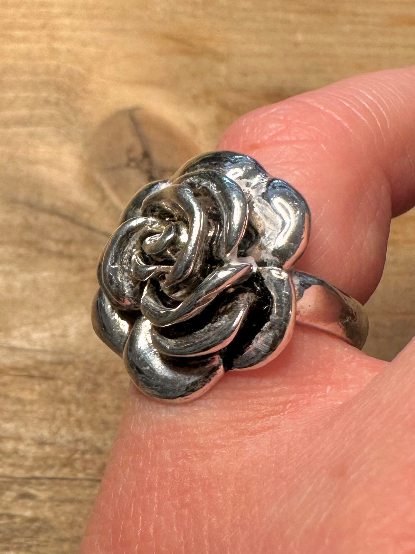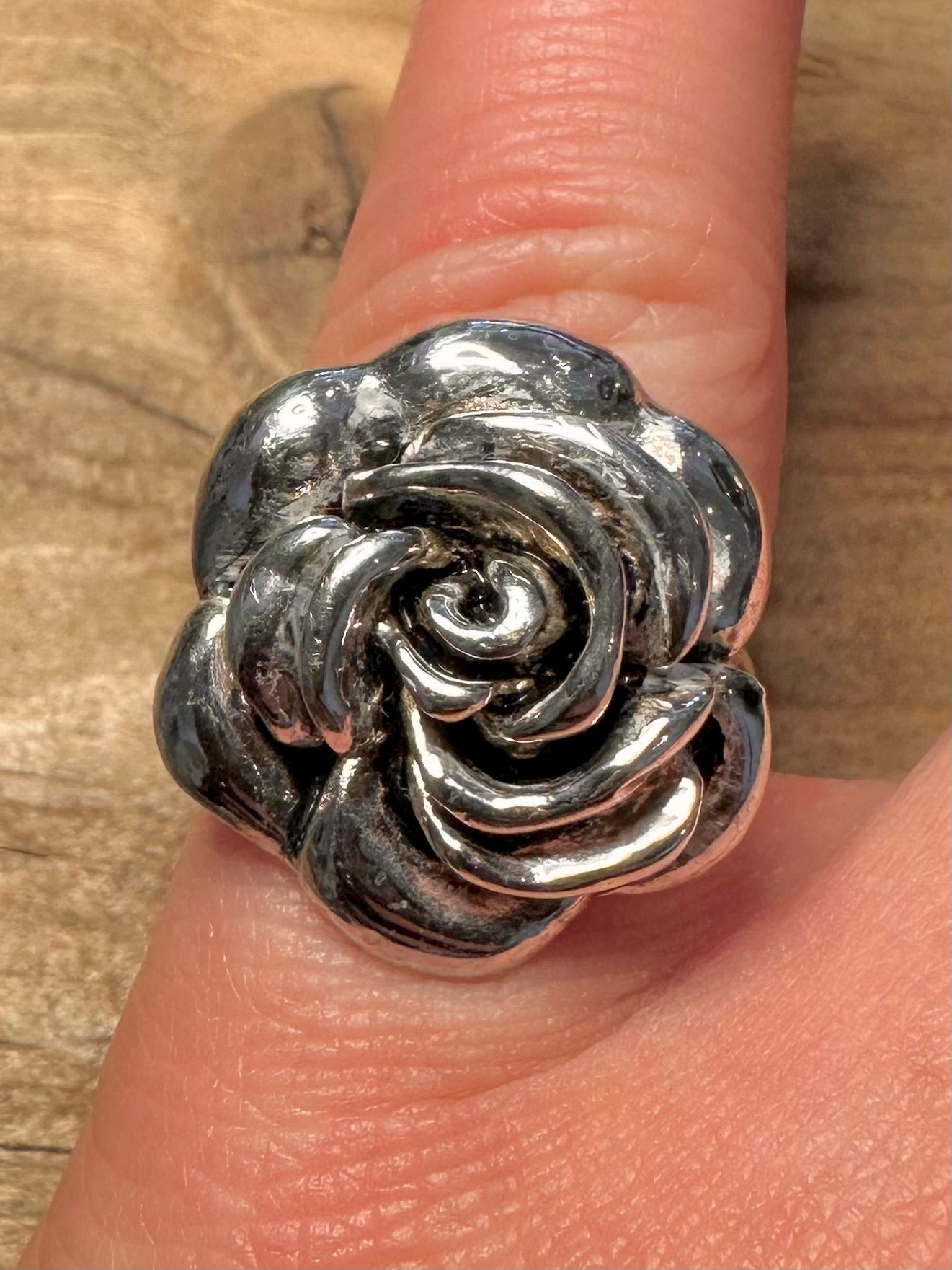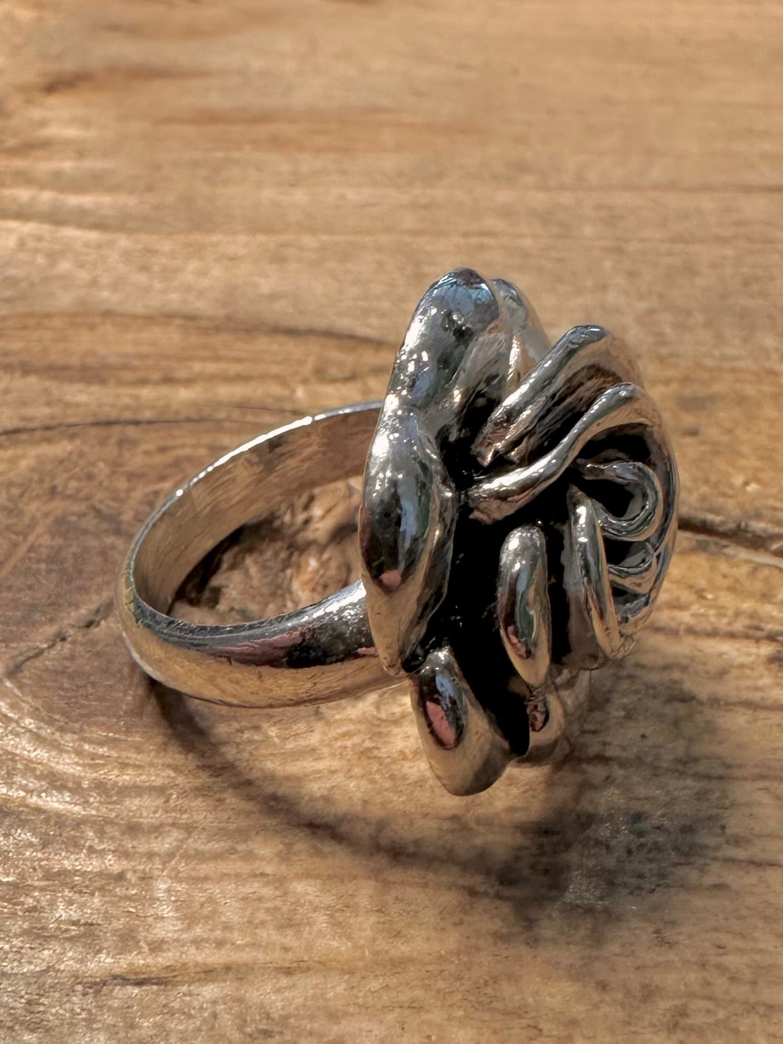 Modern Rose Flower 925 Silver Size L Ring