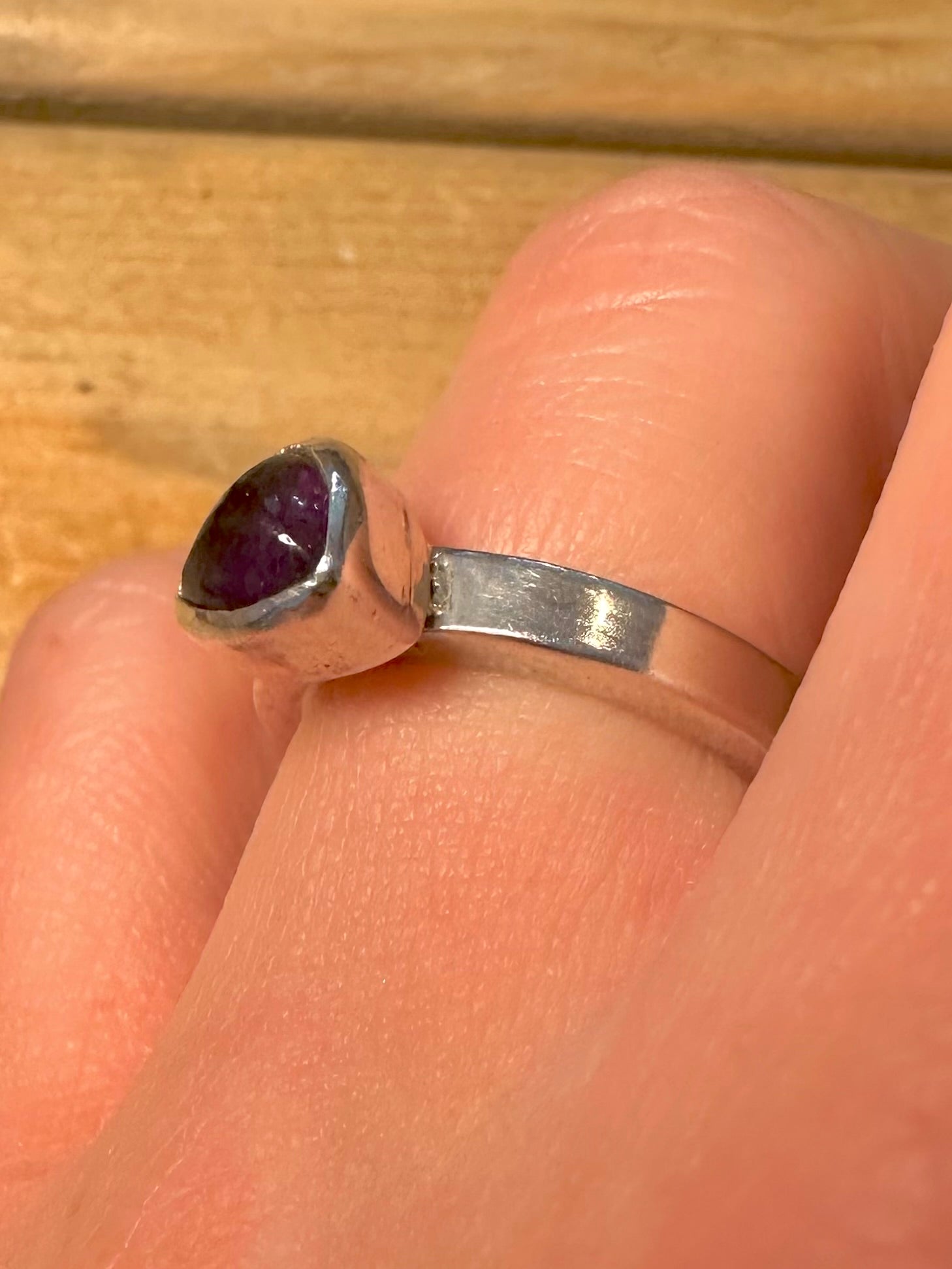 Modernist Amethyst 925 Silver Size O1/2 Ring