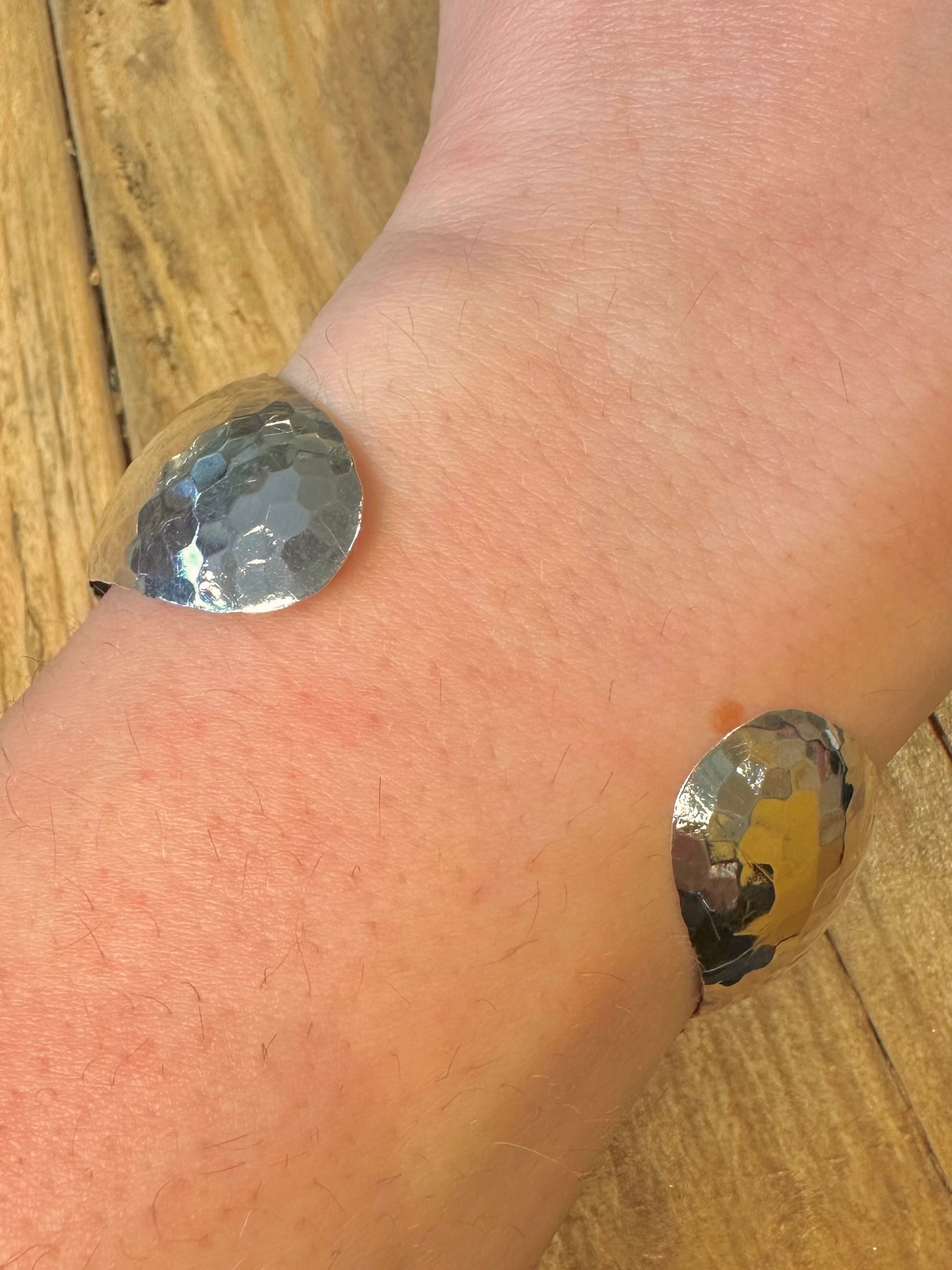 Modernist Hammered Wide Cuff 925 Sterling Silver Bangle