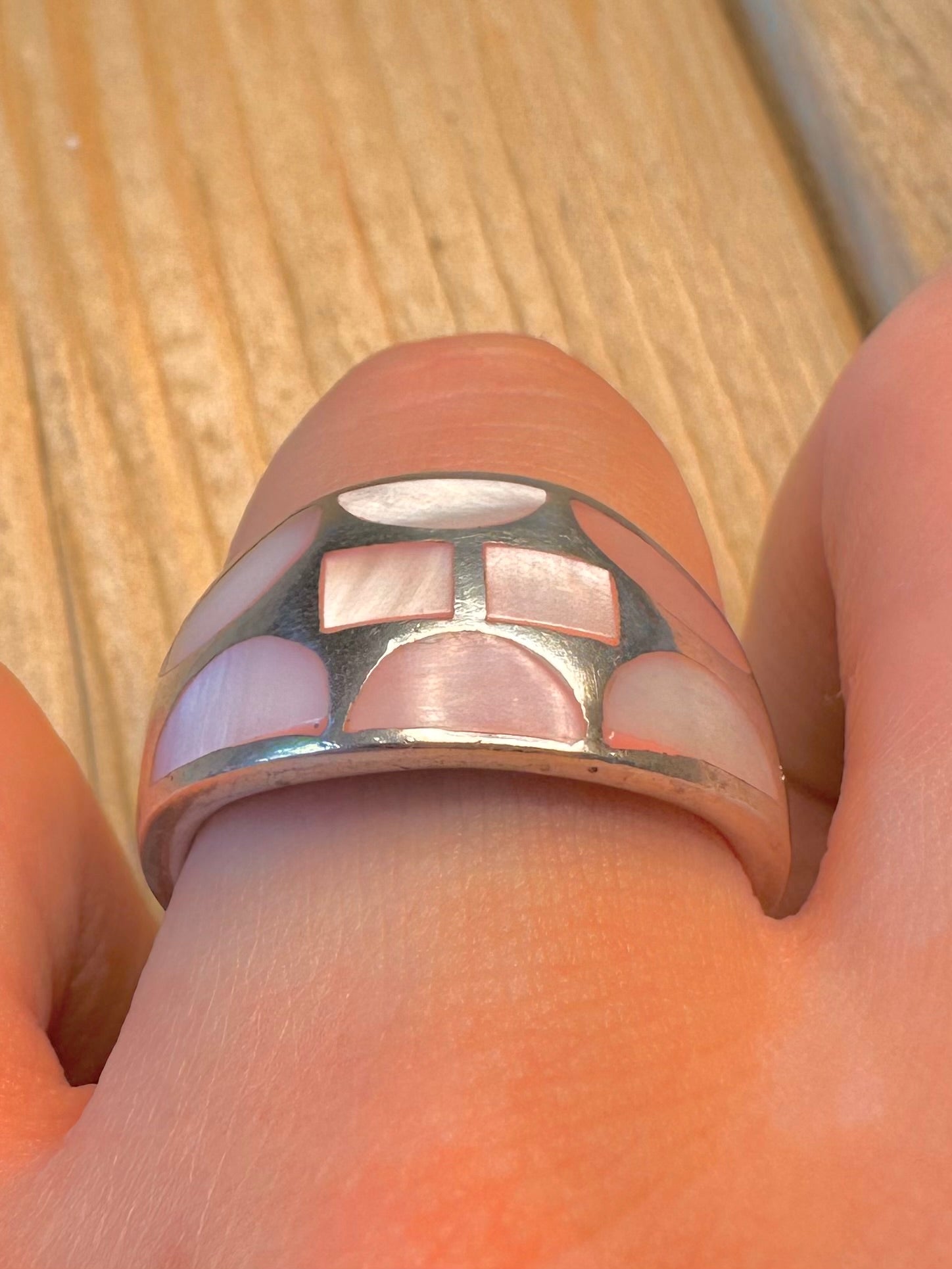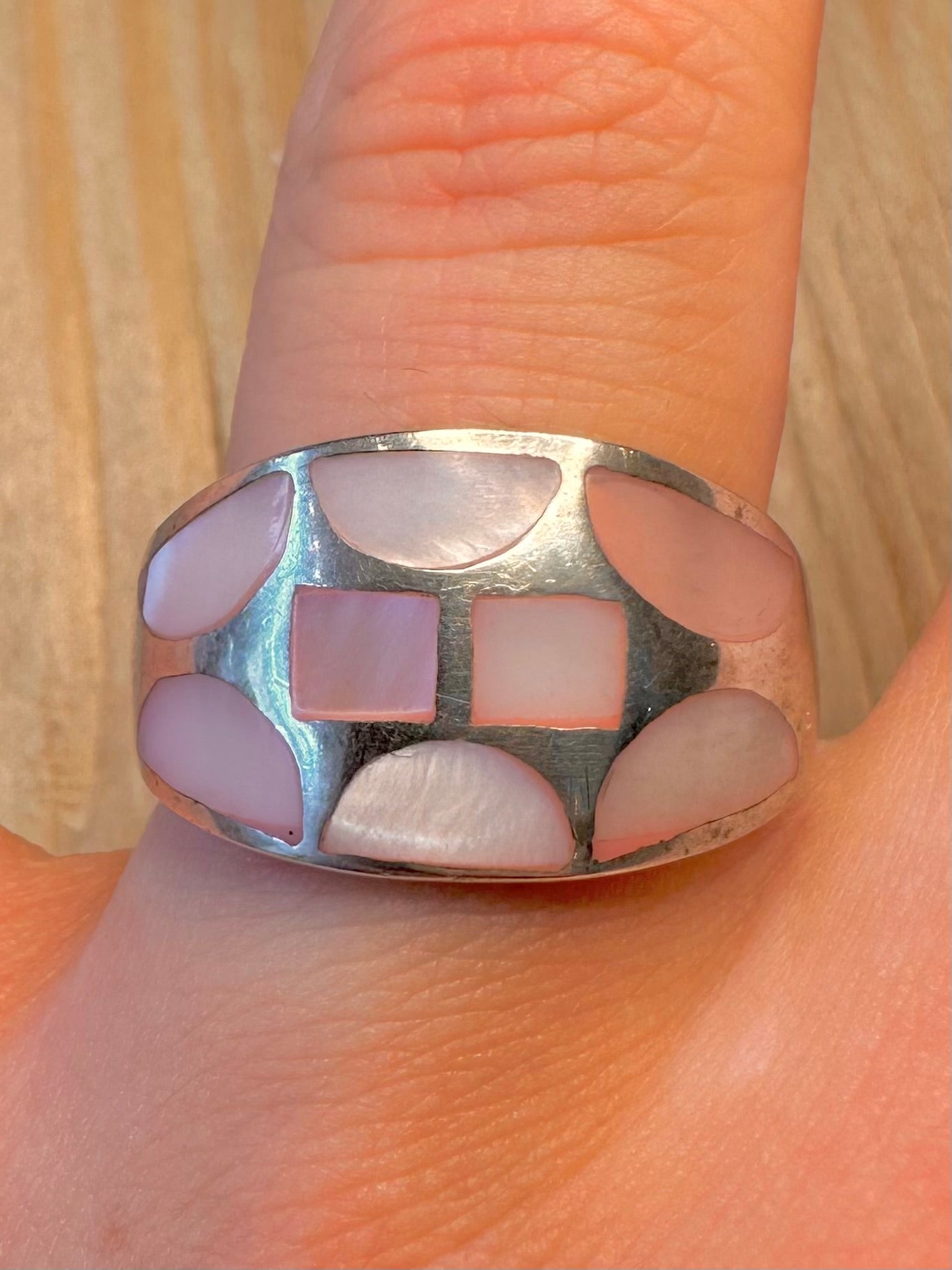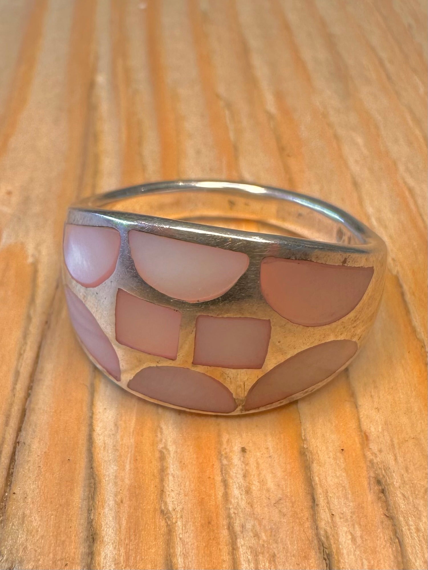 Modernist Pink Mother of Pearl Dome 925 Sterling Silver Size U Ring