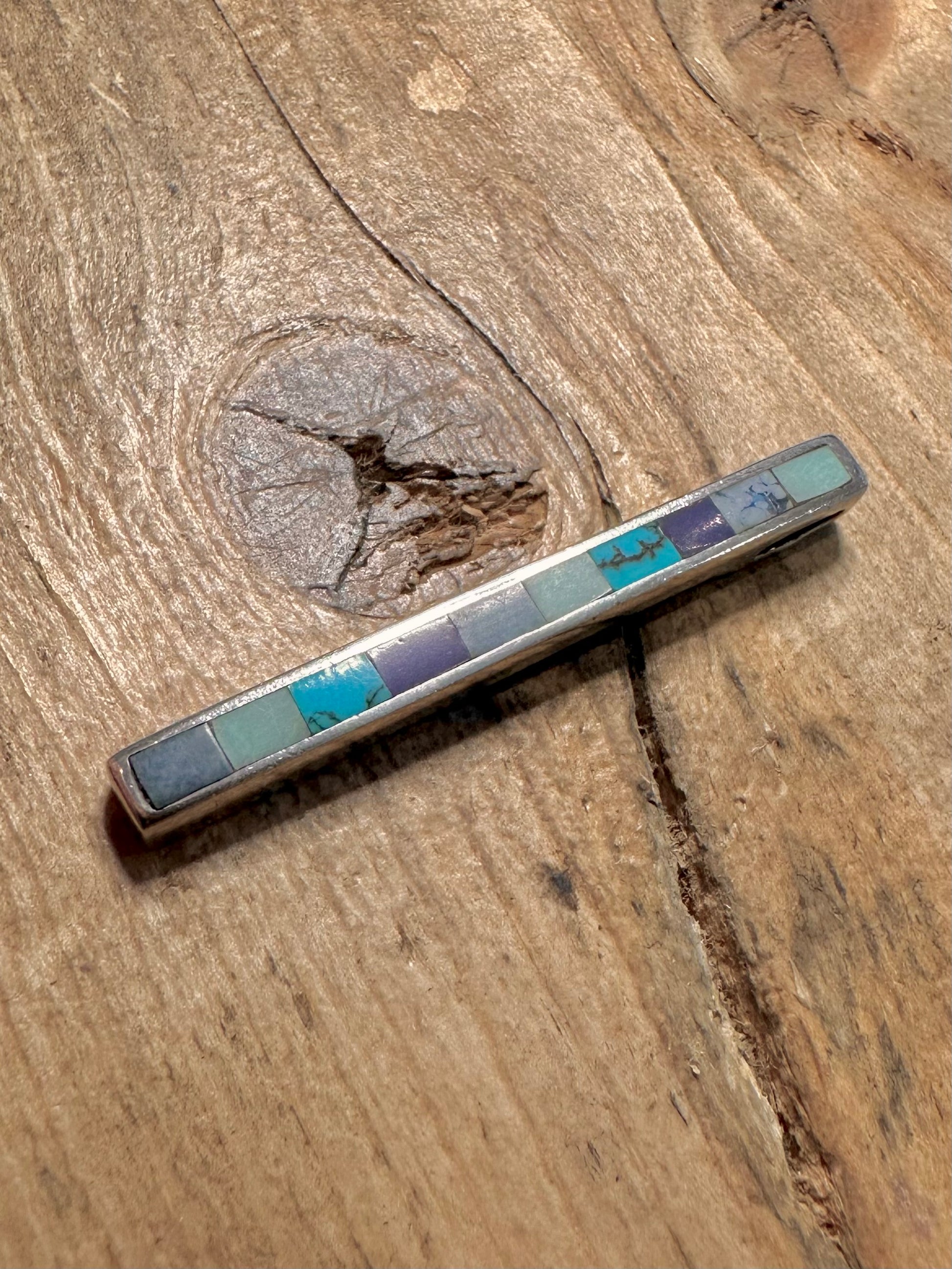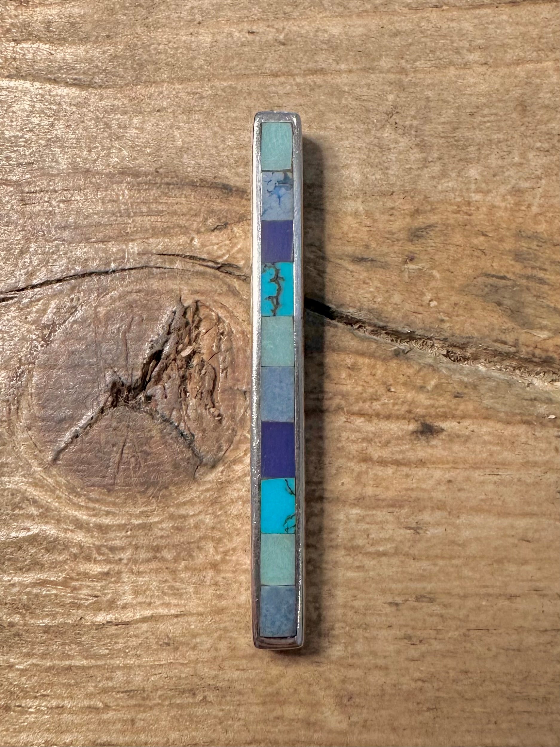 Modernist Turquoise Inlay Bar 925 Silver Pendant