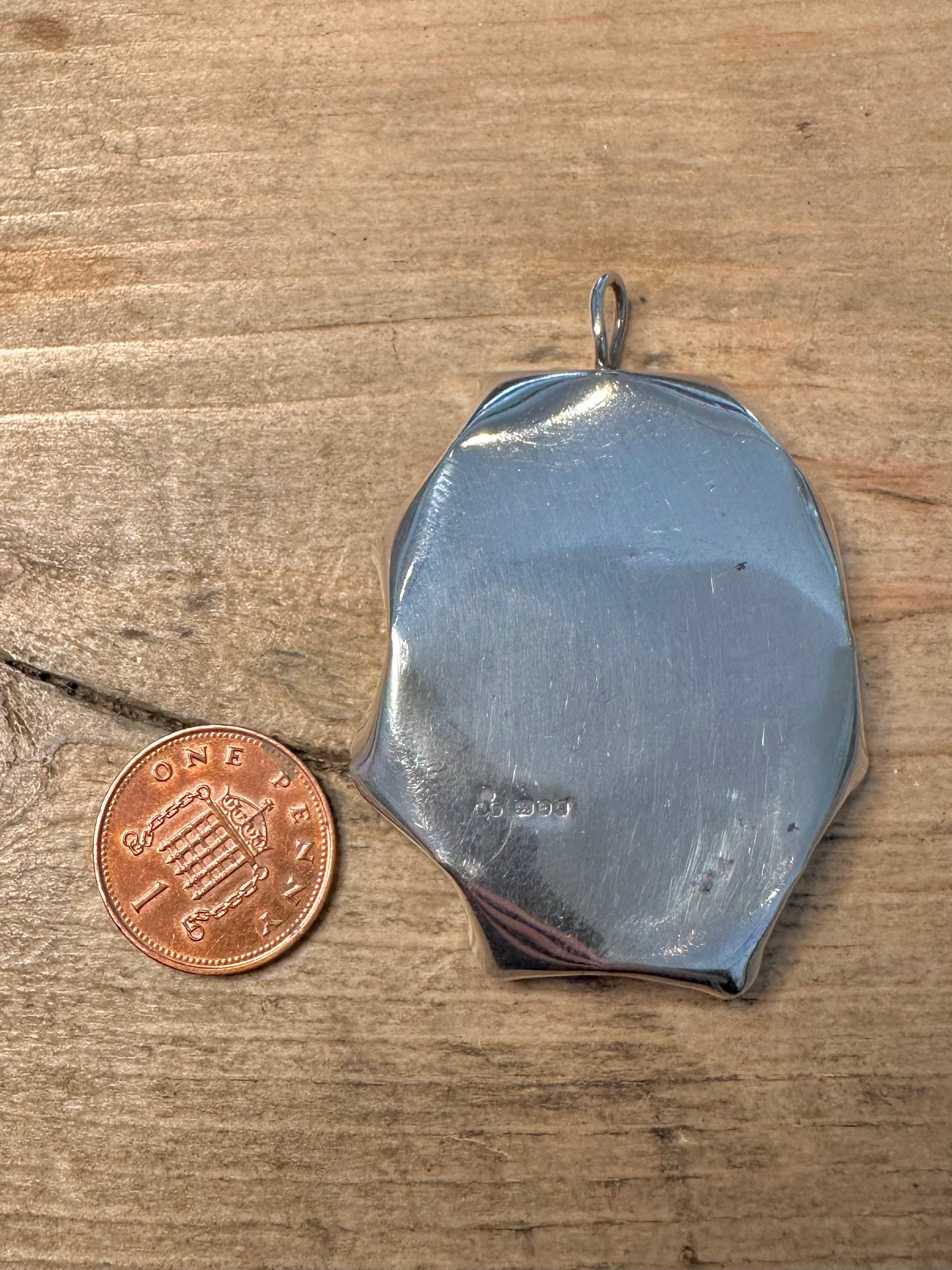 Vintage 1977 Large Oval Brown Jasper 925 Silver Pendant