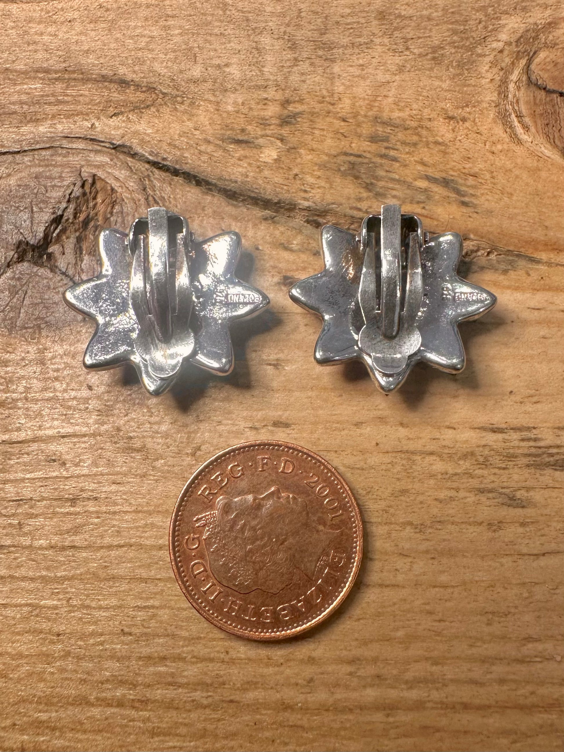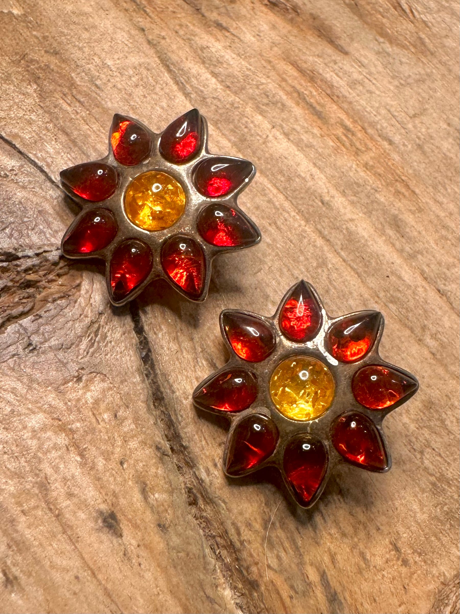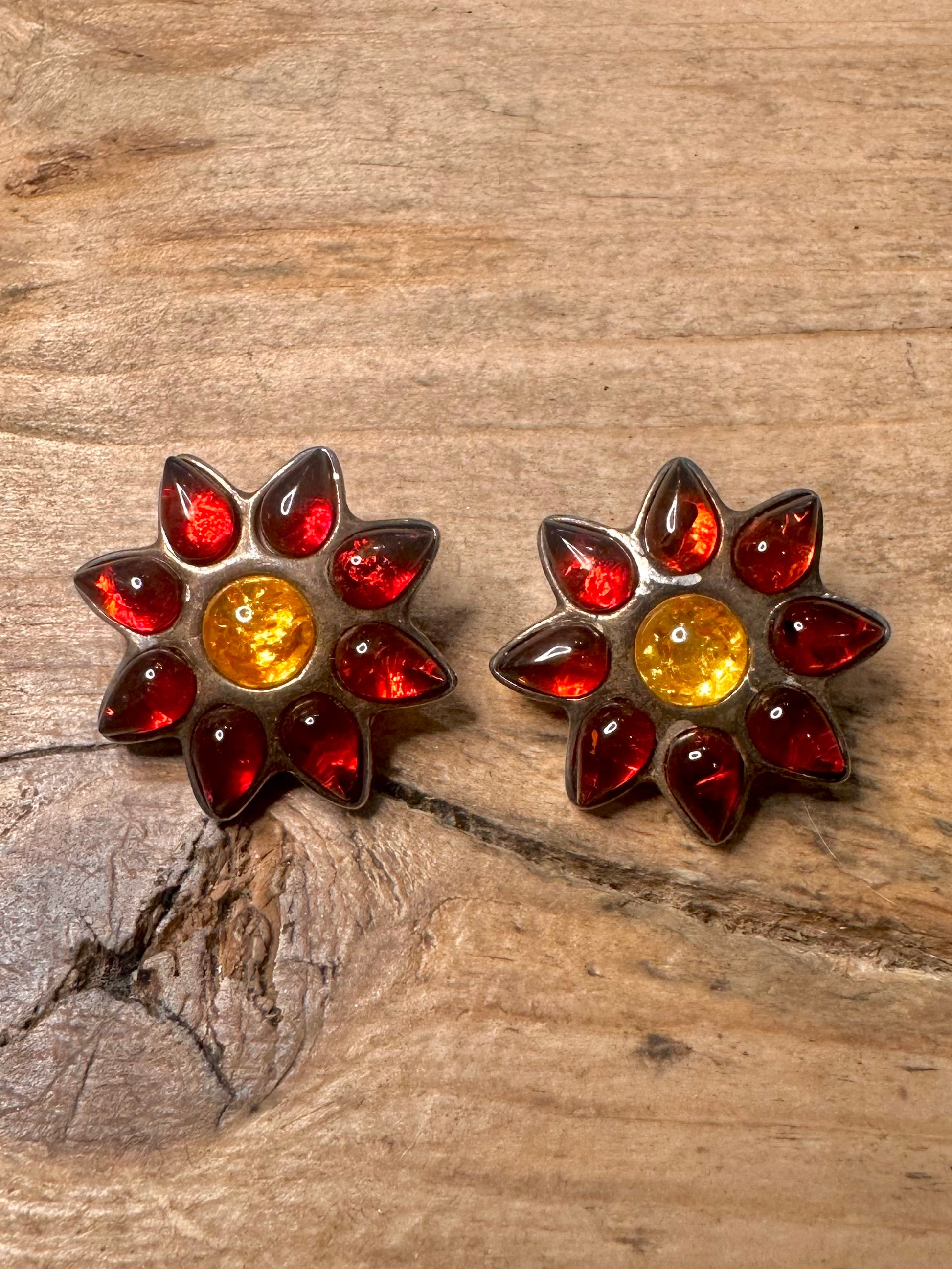 Vintage Amber Flower Poland 925 Silver Clip On Earrings