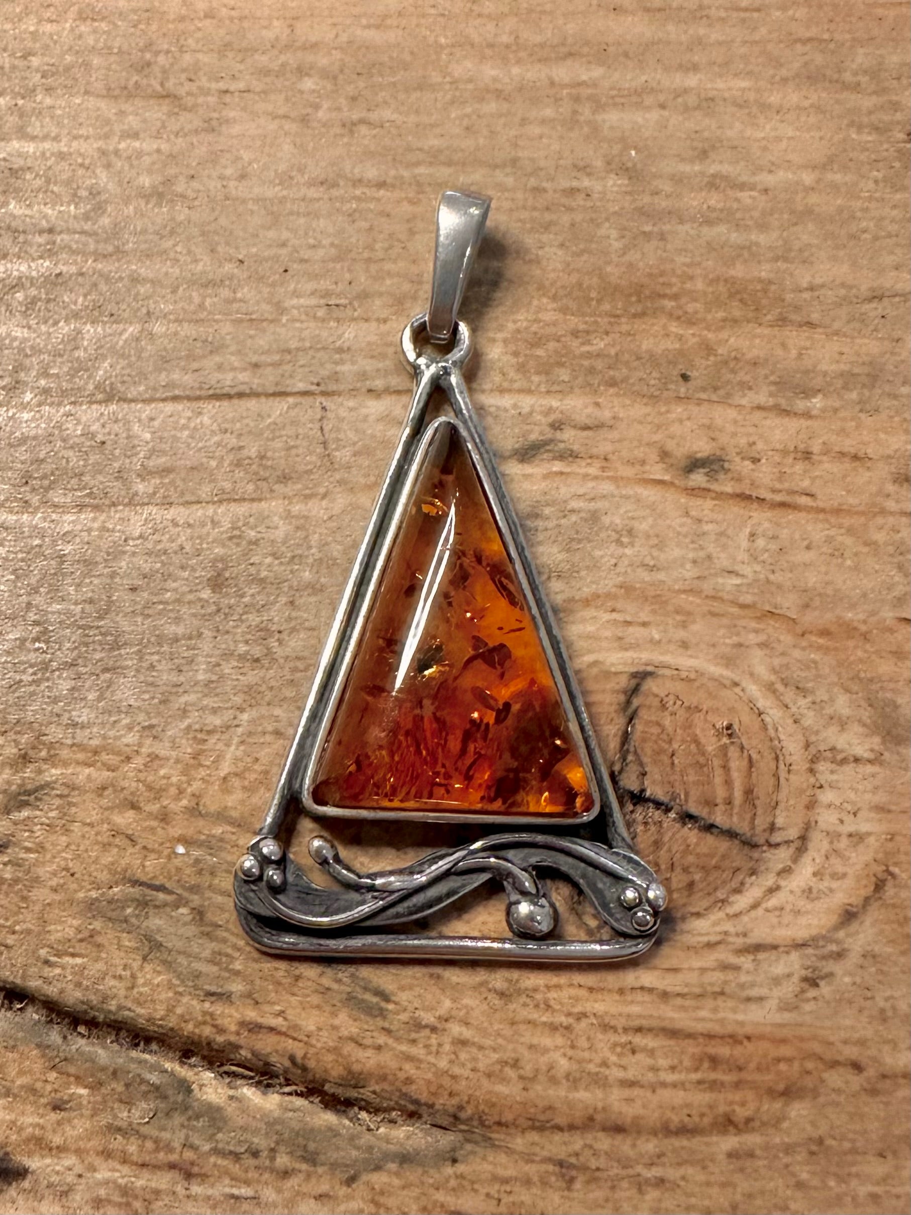 Vintage Amber Triangle 925 Silver Pendant