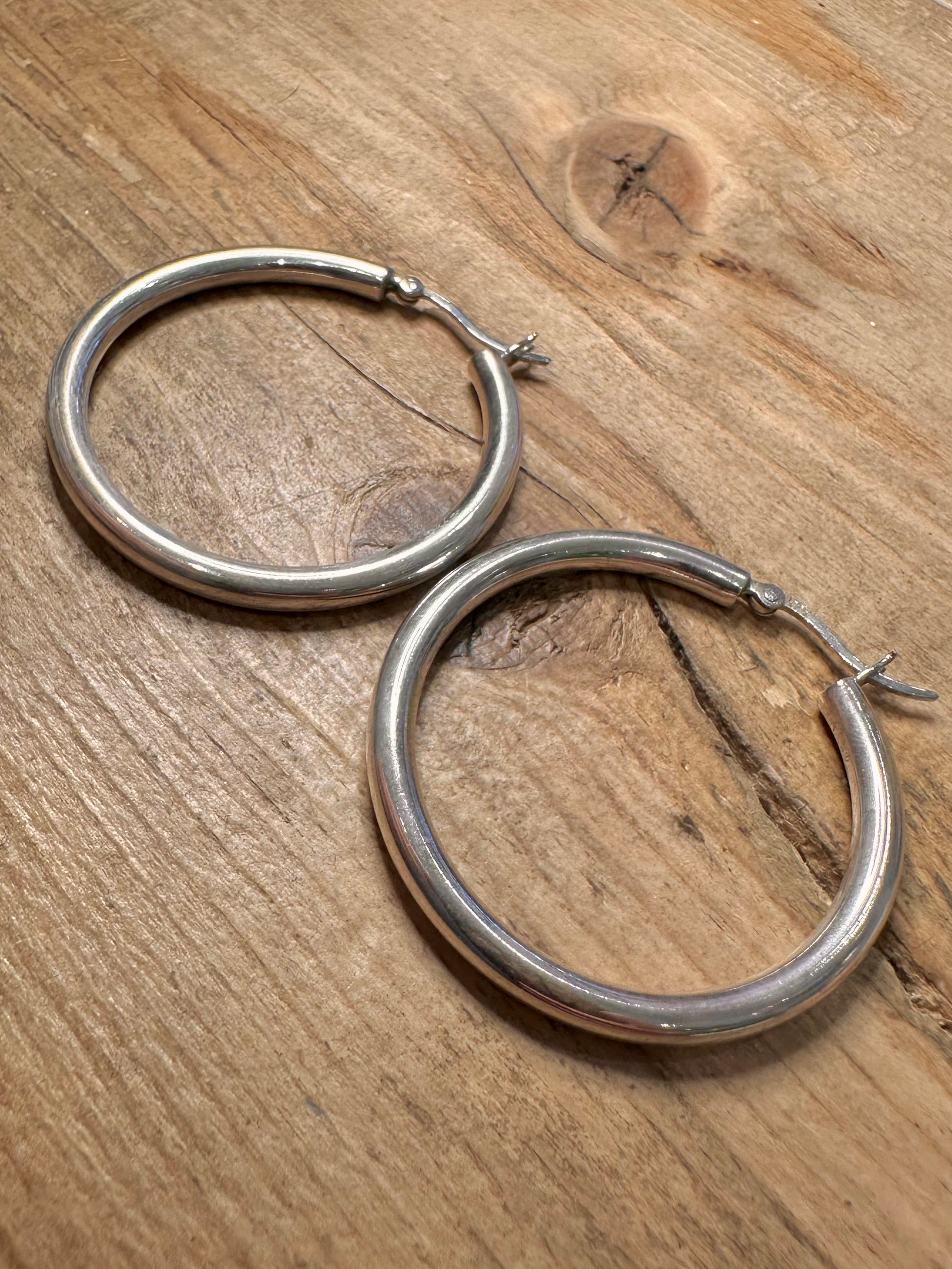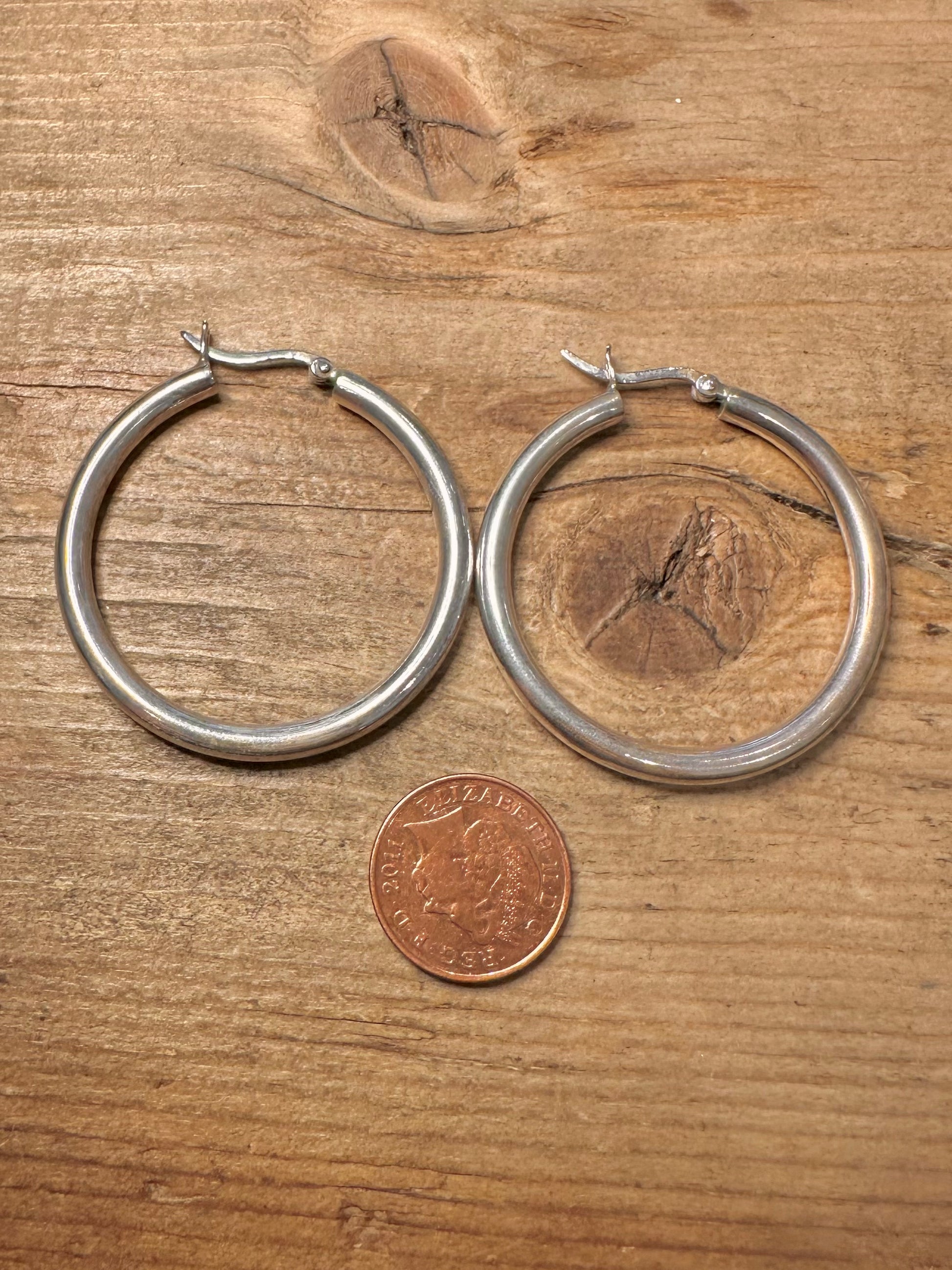 Vintage Chunky Rounded Hoops 925 Silver Earrings
