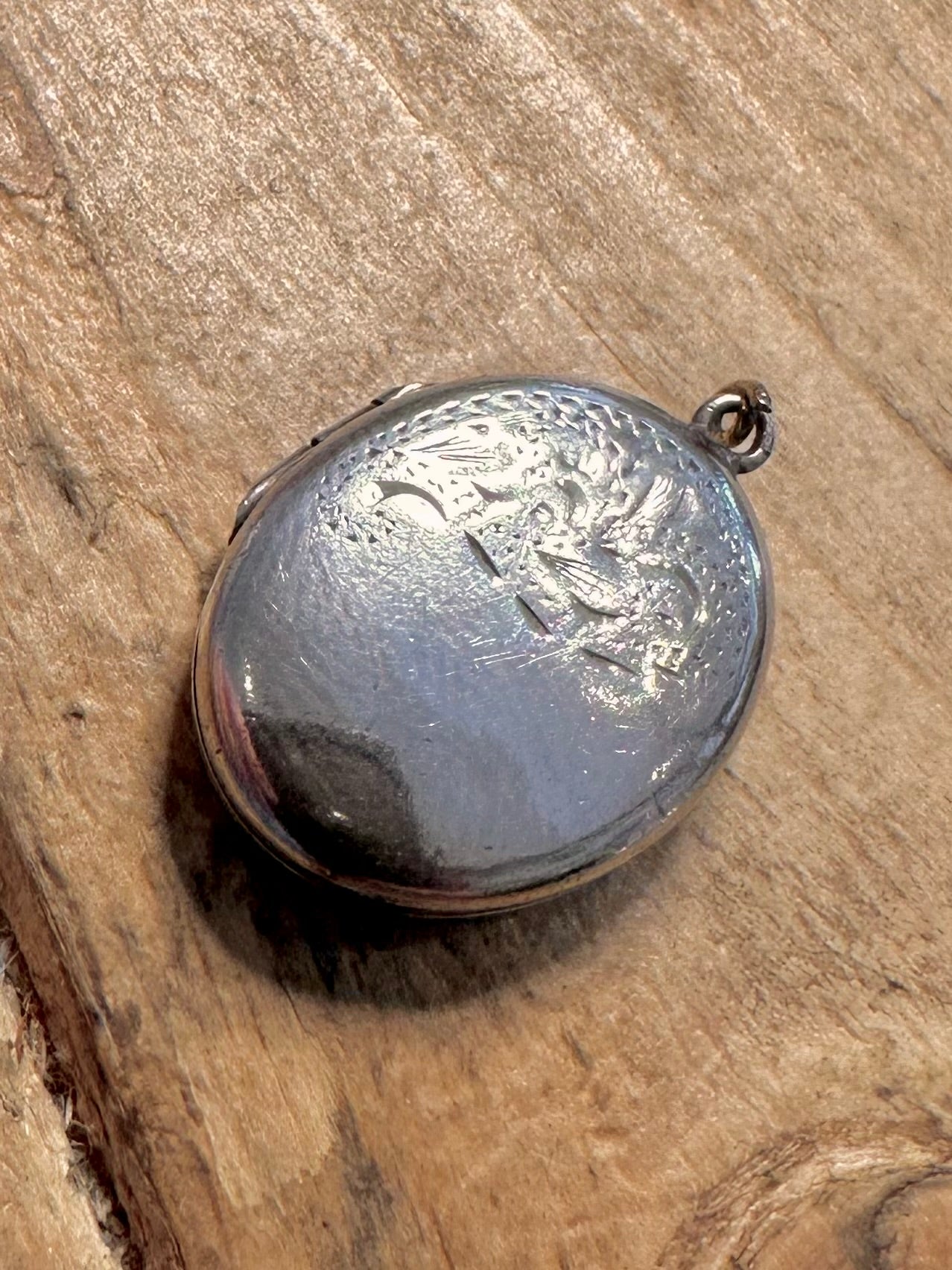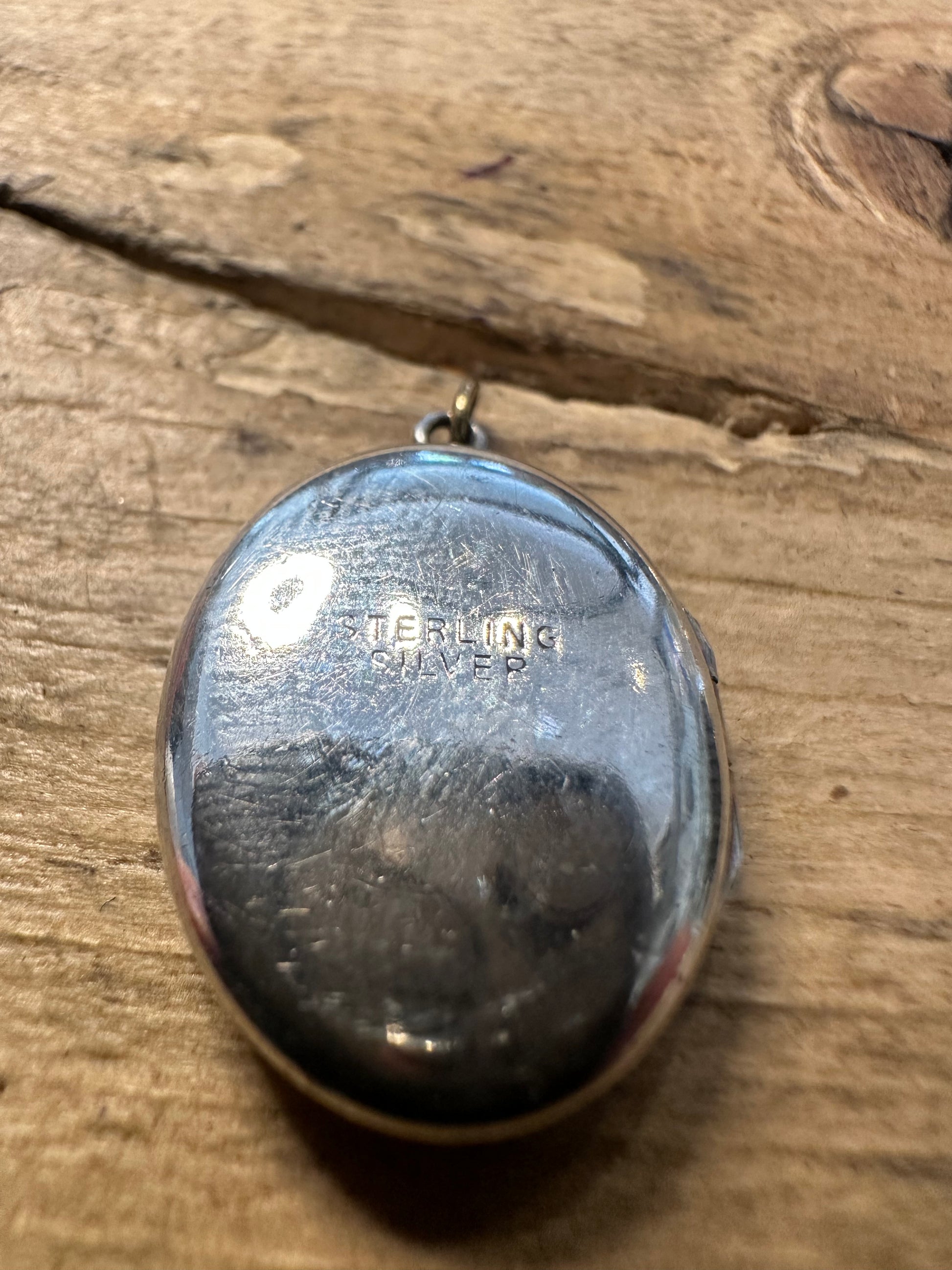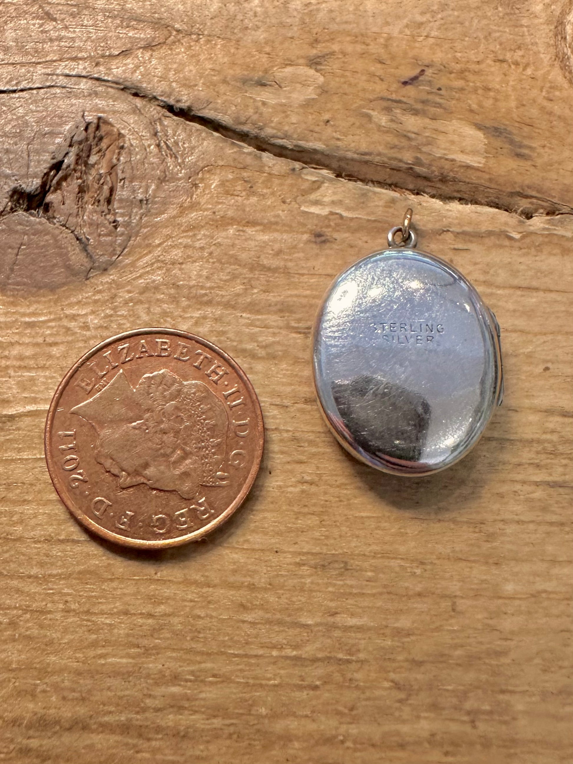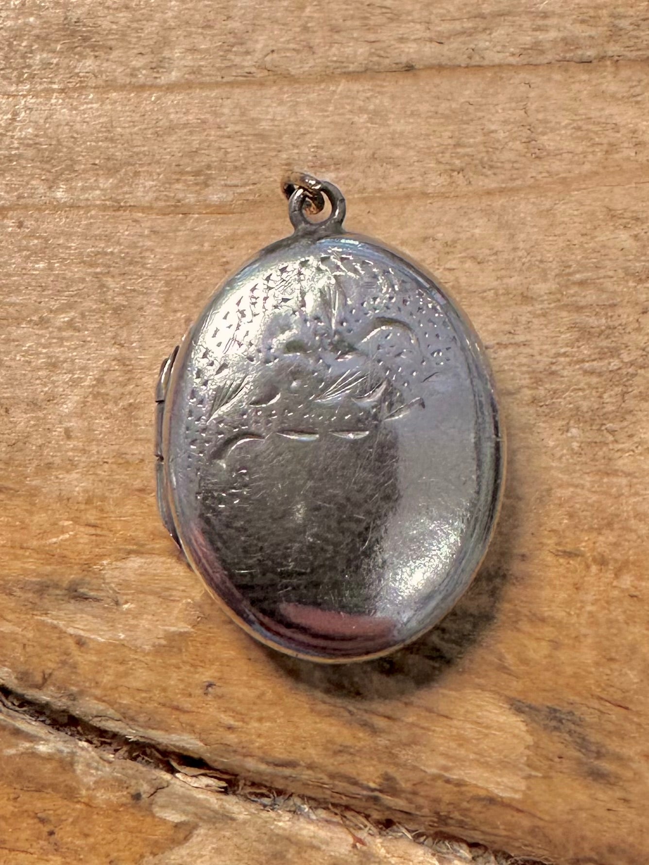 Vintage Engraved Oval 925 Silver Locket Pendant