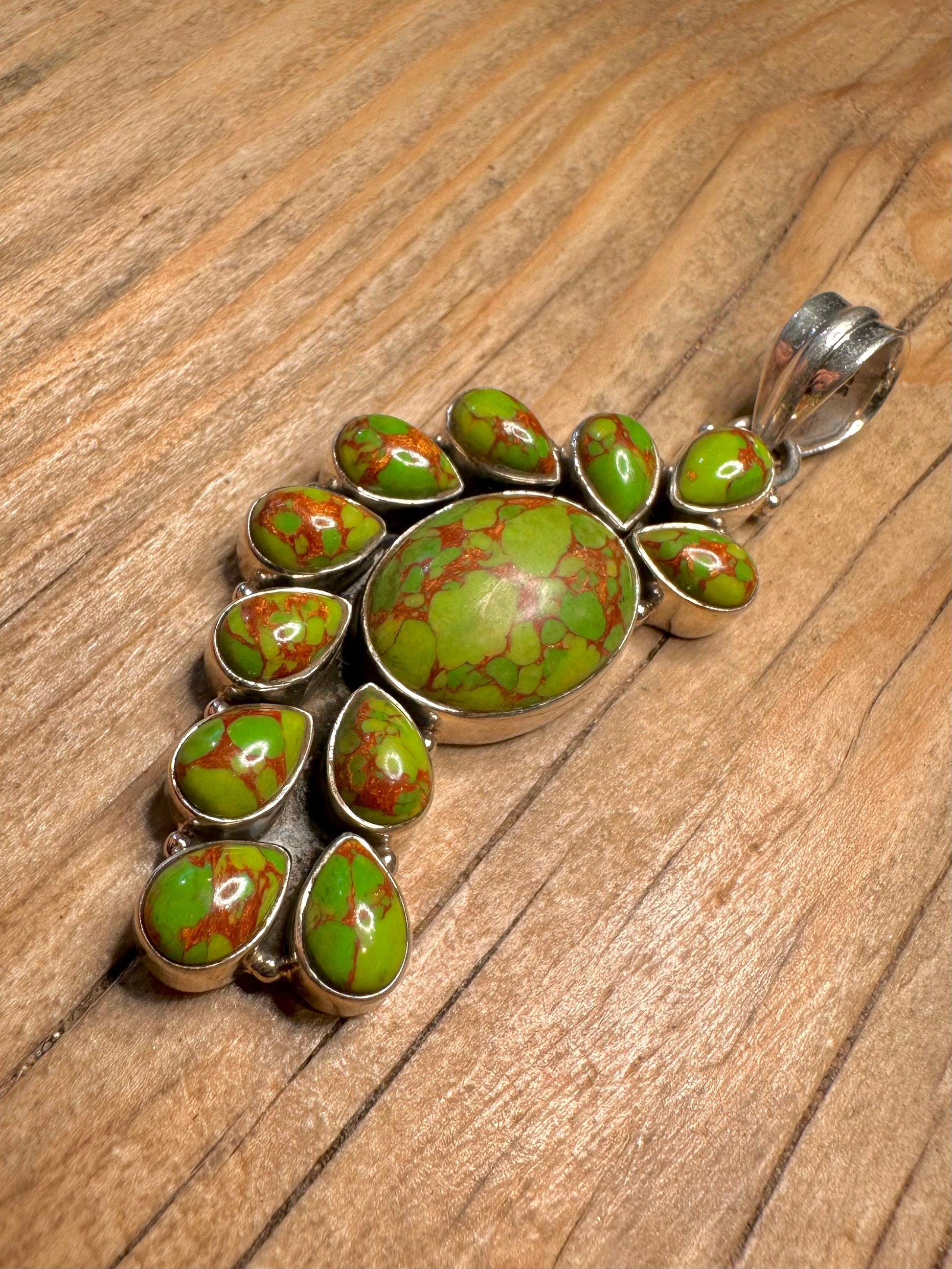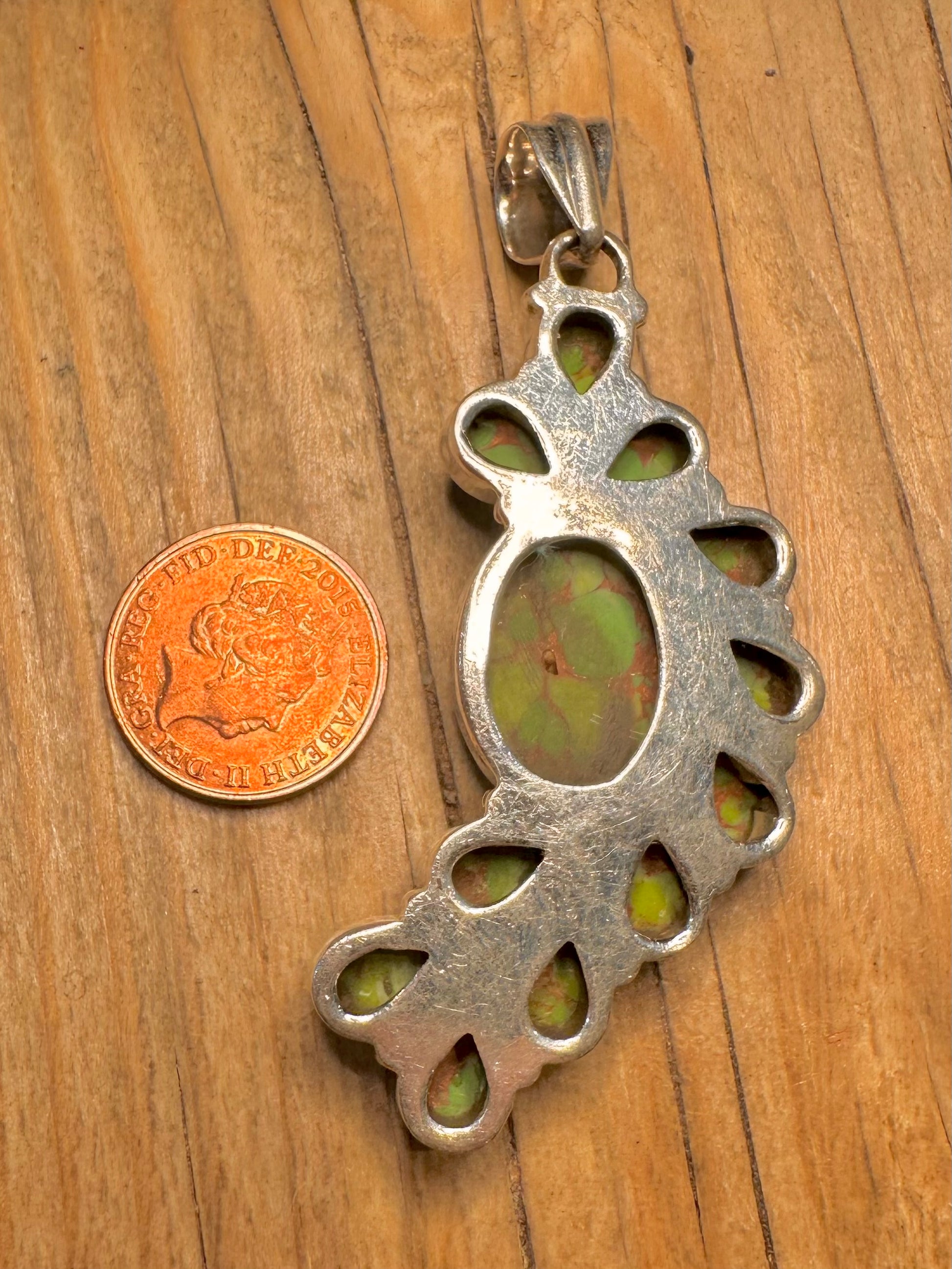 Vintage Green Copper Turquoise 925 Sterling Silver Pendant