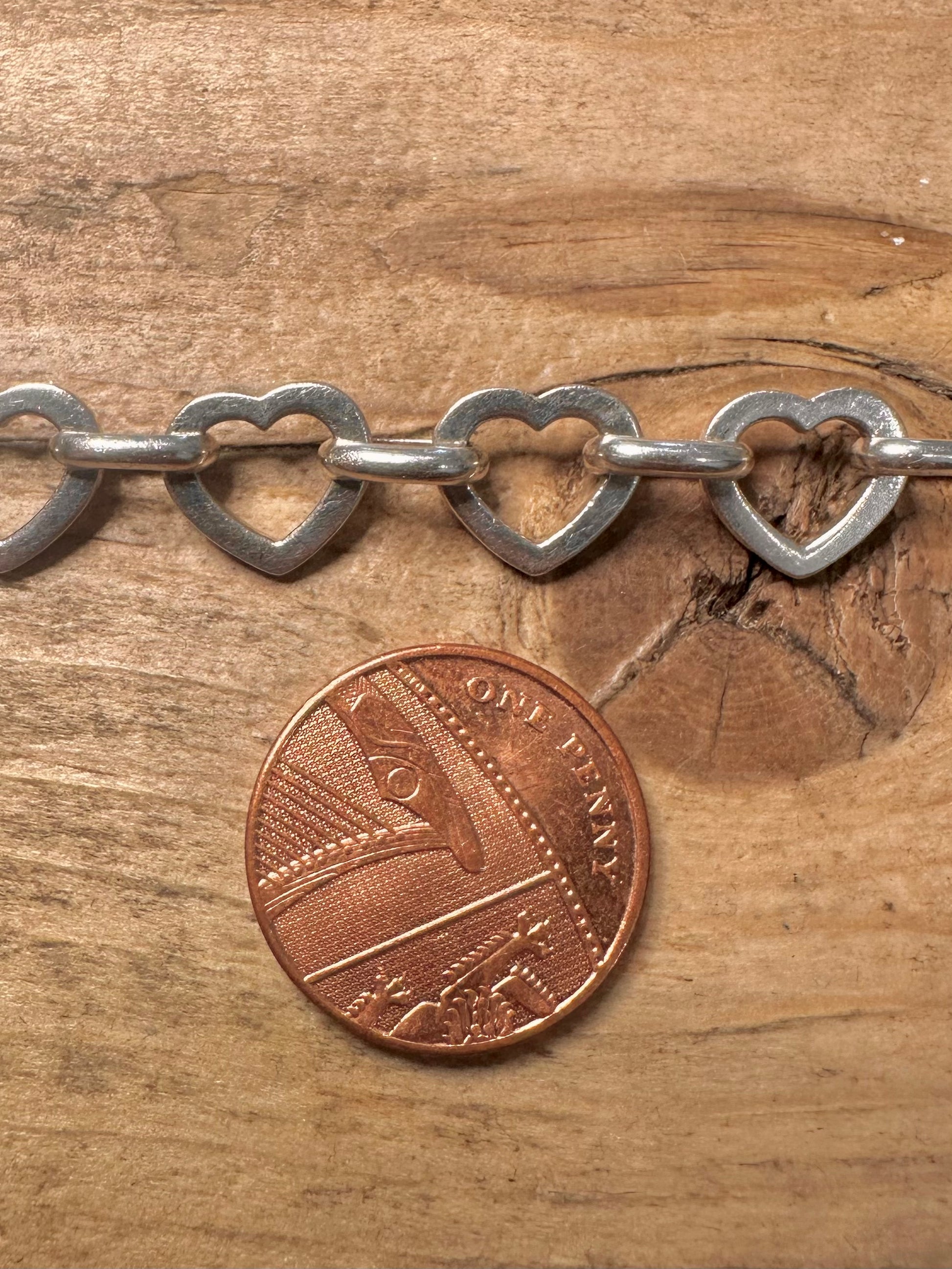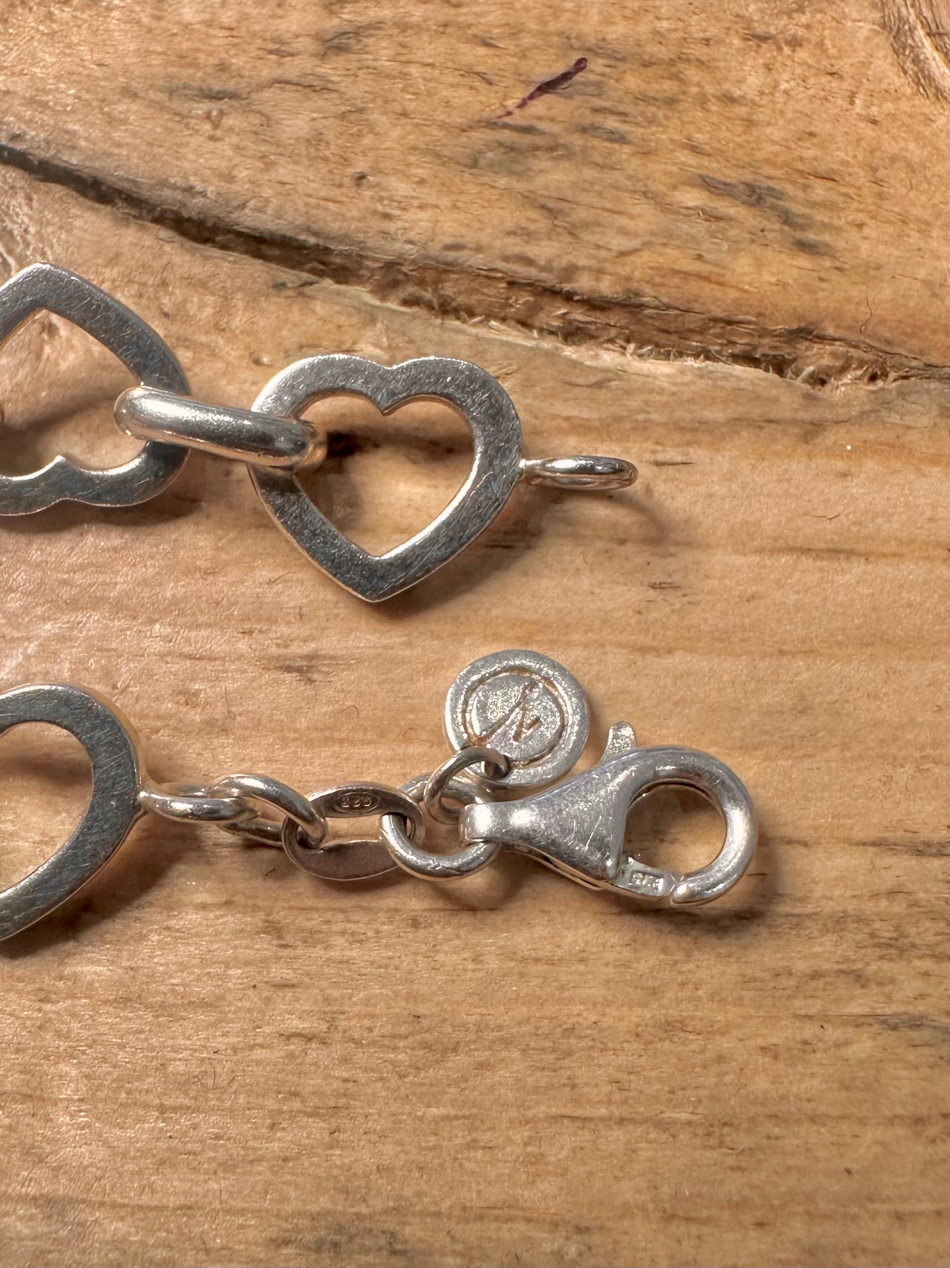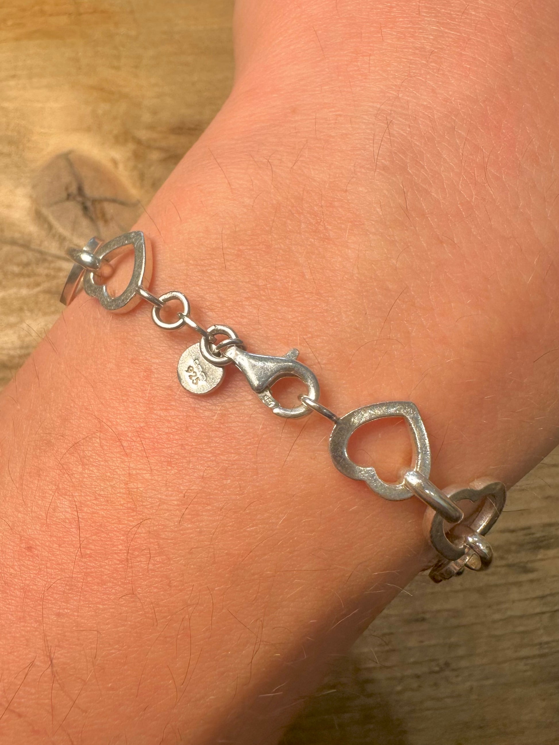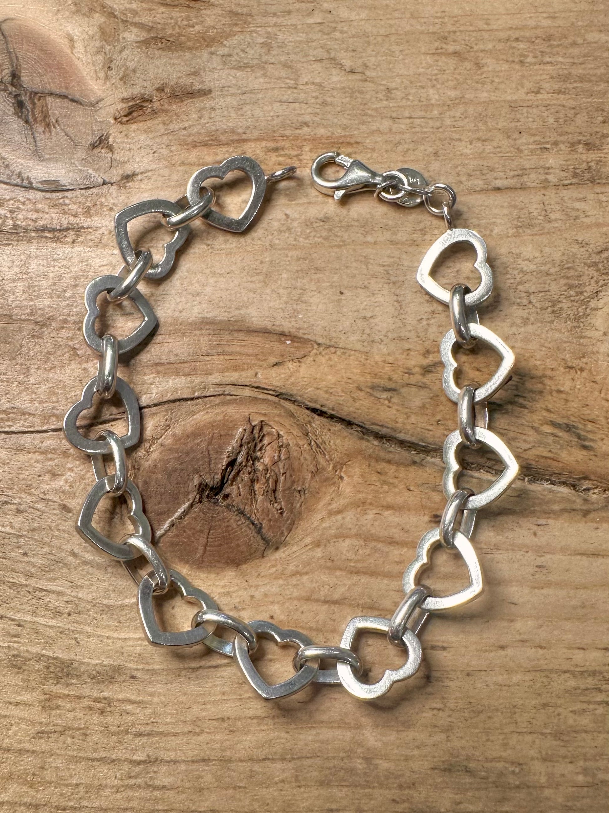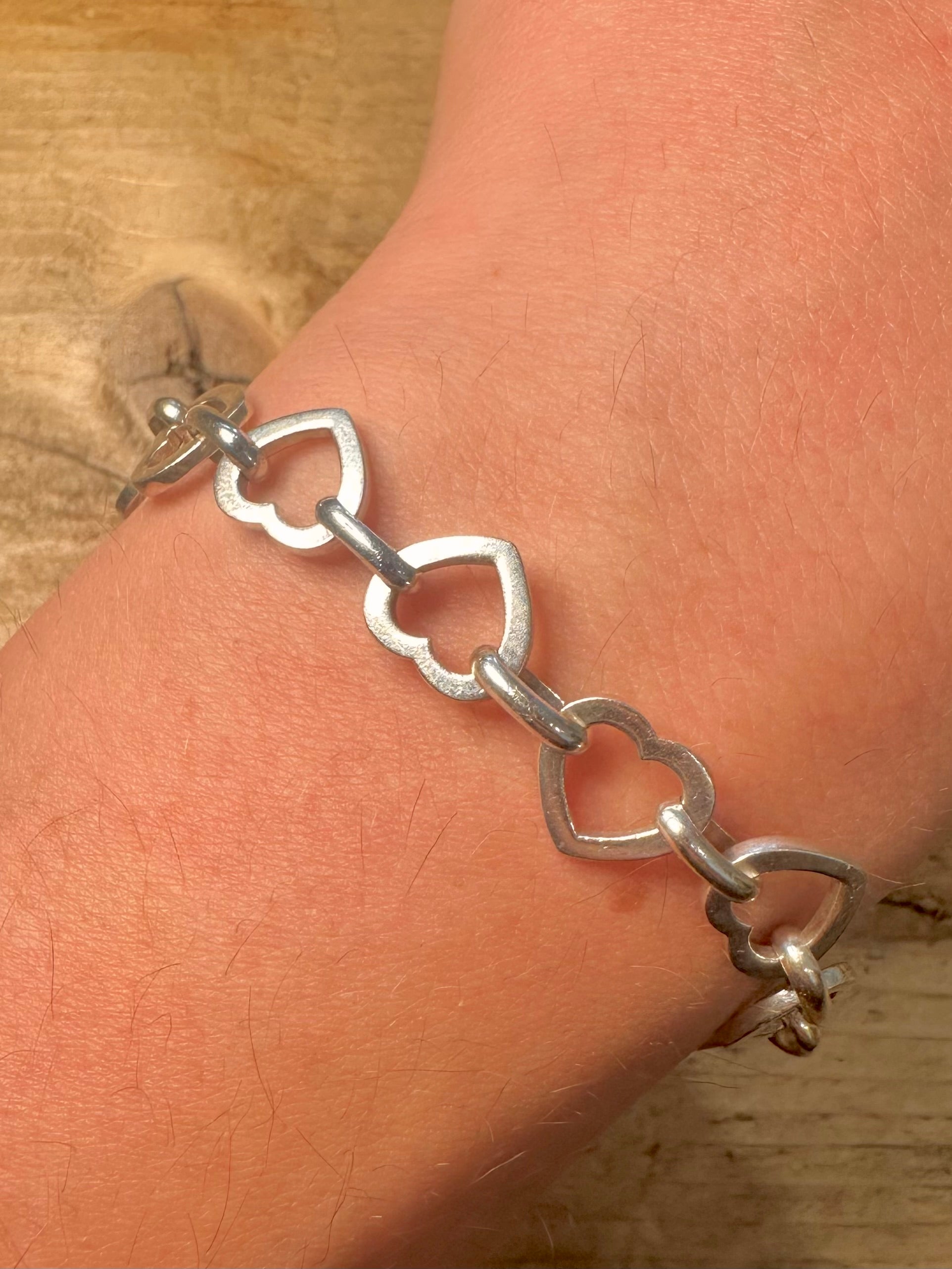 Vintage Heart Link 925 Silver 7.4 inch Bracelet