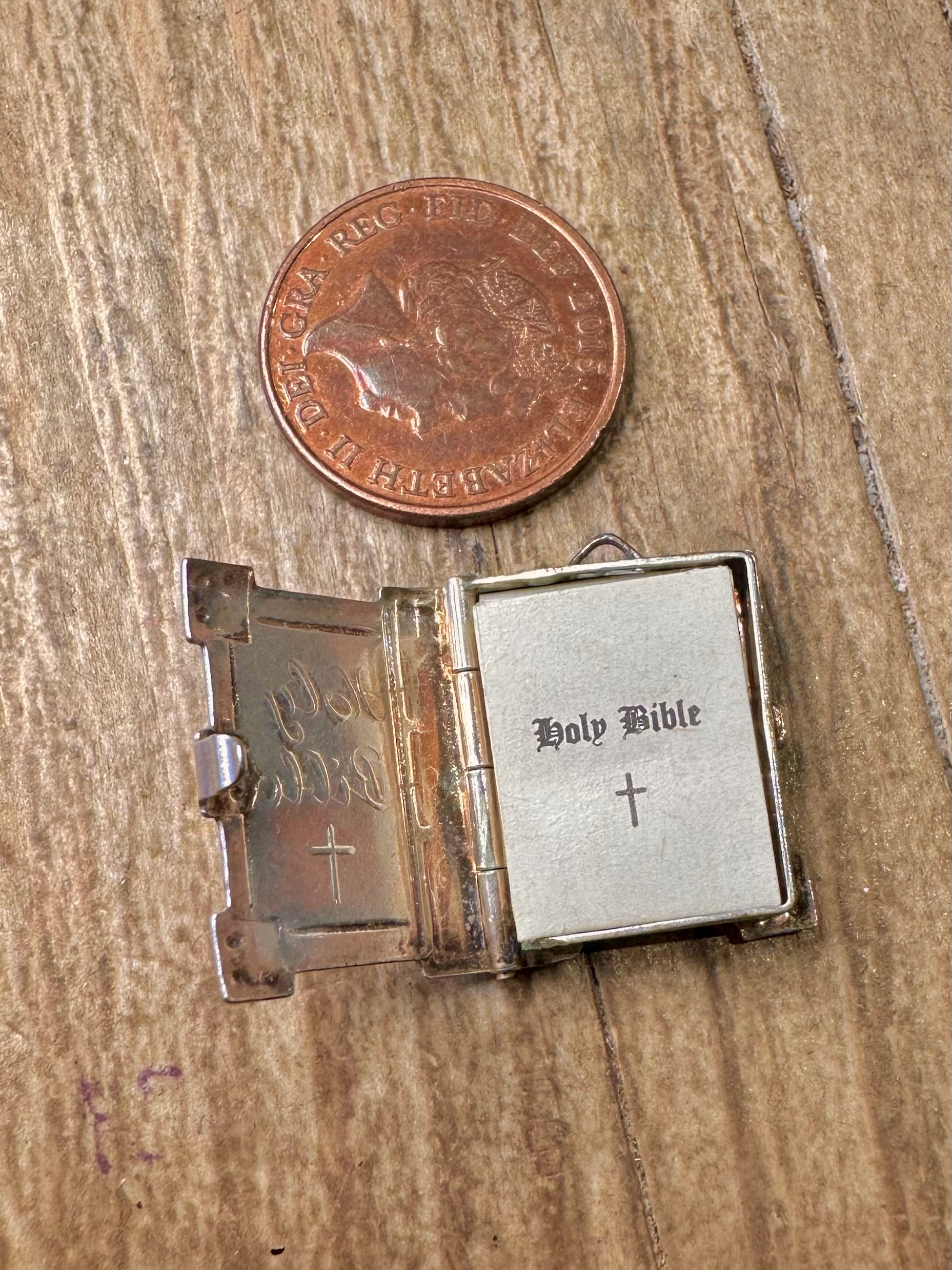 Vintage Holy Bible Book with Paper 925 Sterling Silver Charm Pendant