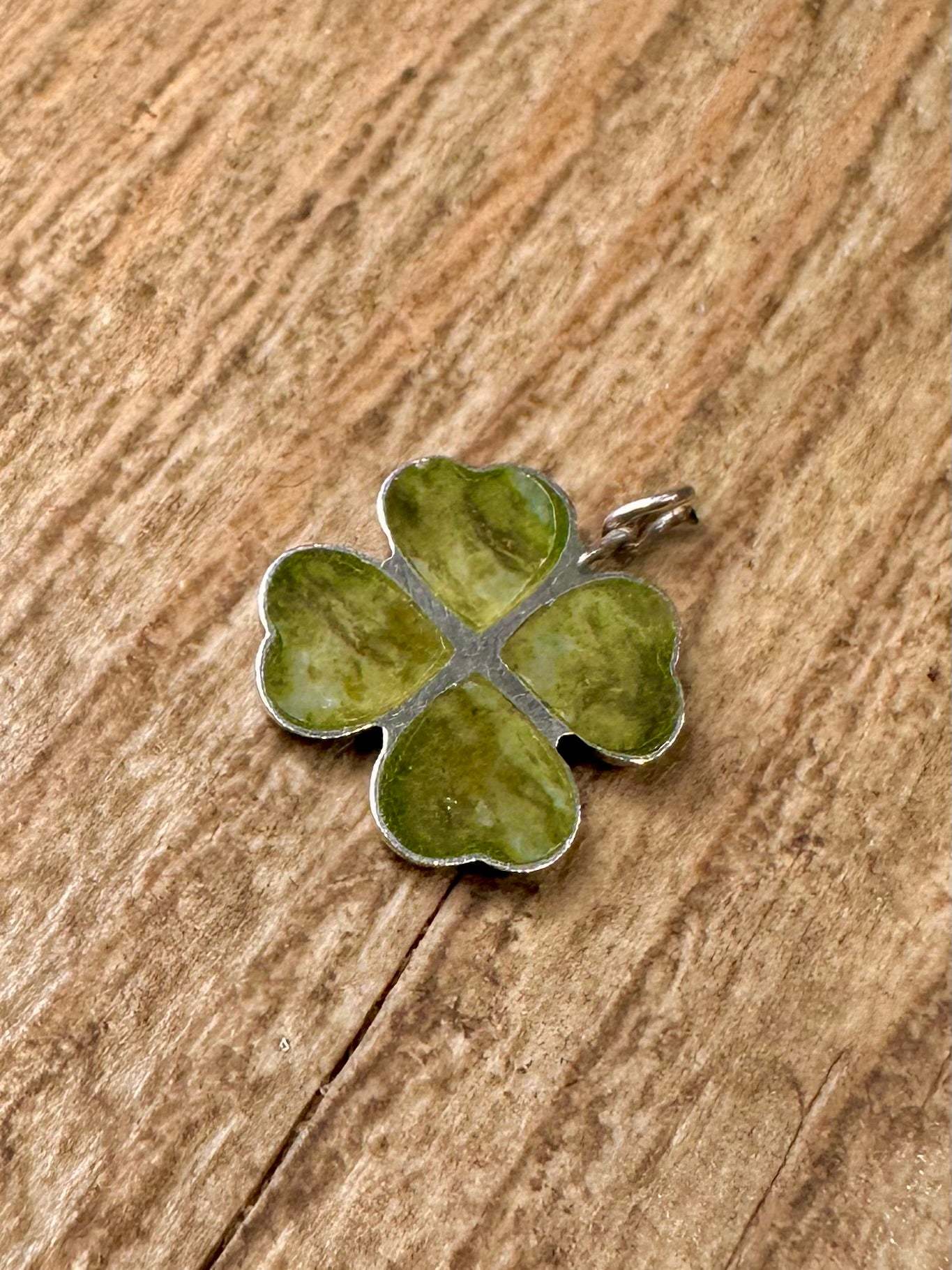 Vintage Irish Connemara Marble Four Leaf Clover 925 Sterling Silver Pendant