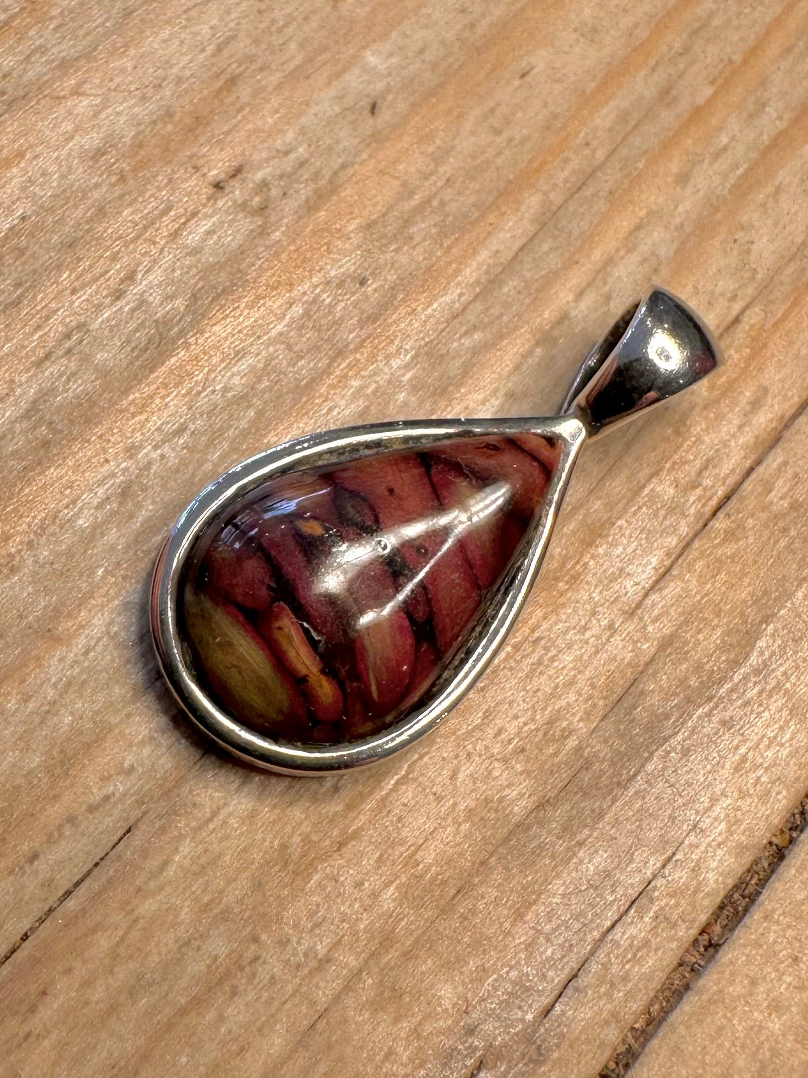 Vintage Jasper Teardrop 925 Sterling Silver Pendant