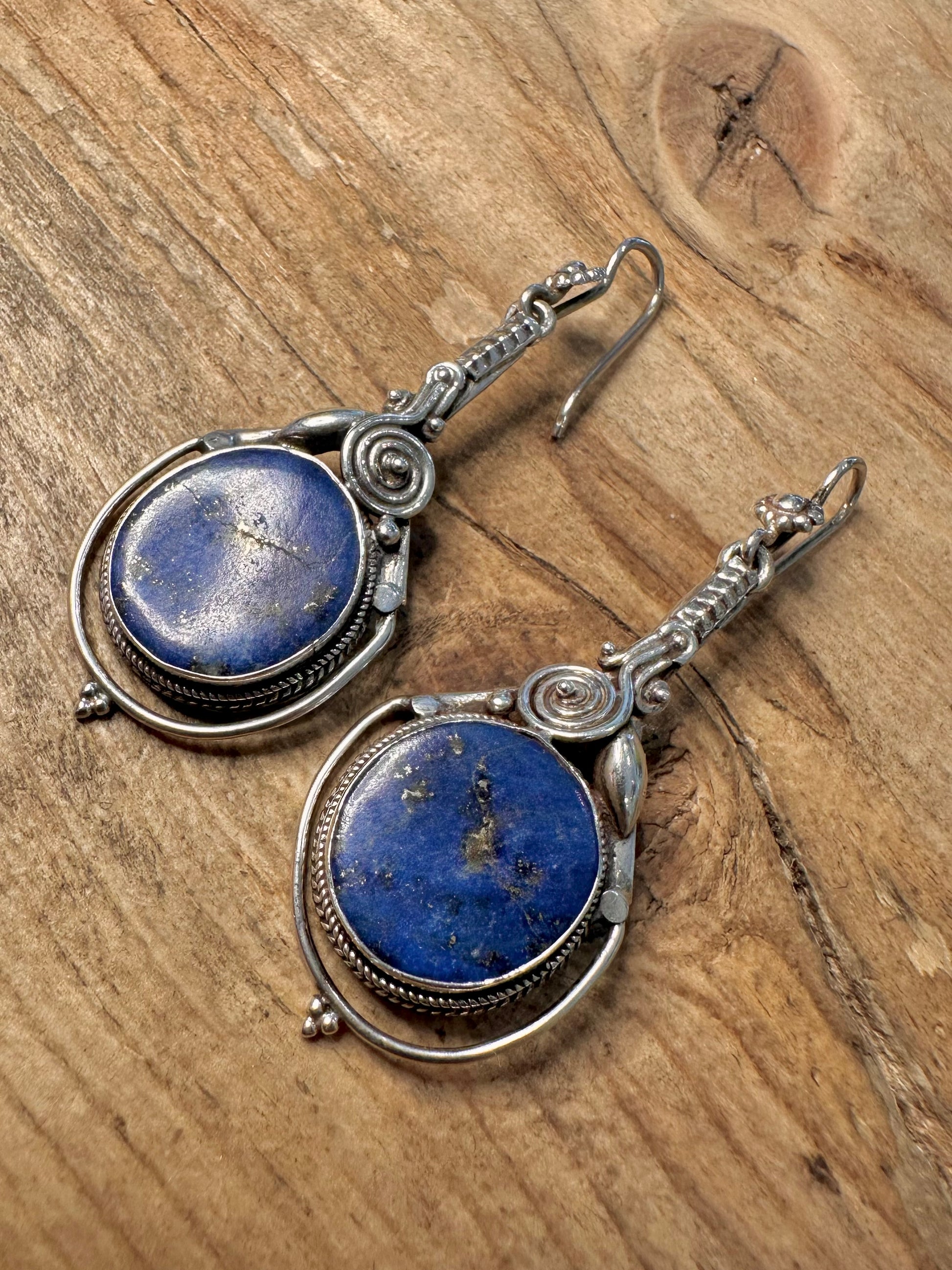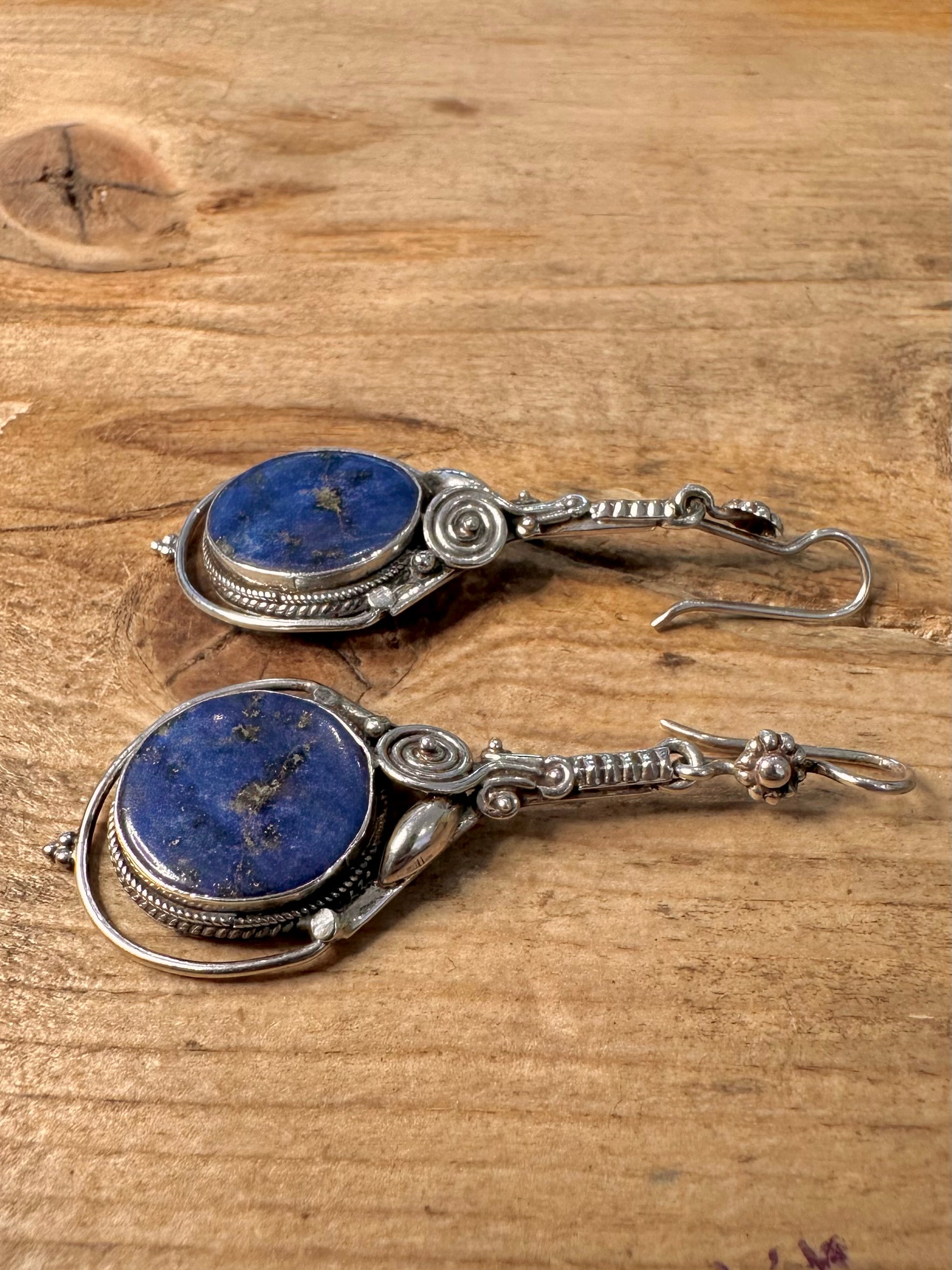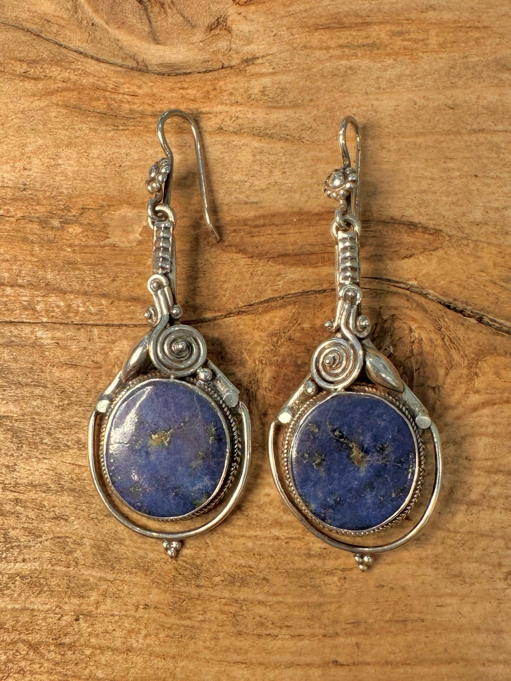 Vintage Lapis Tribal Dangle 925 Silver Earrings