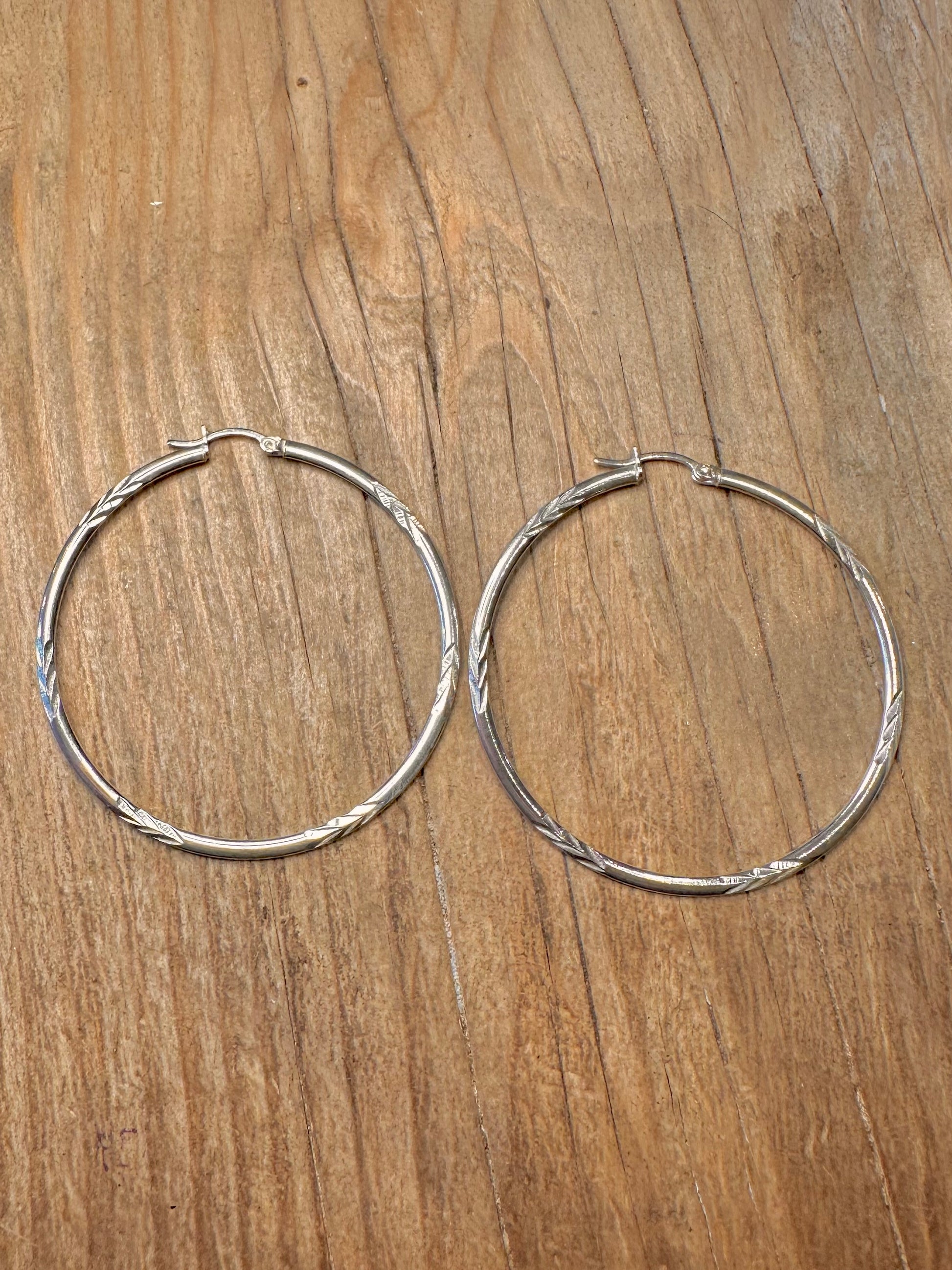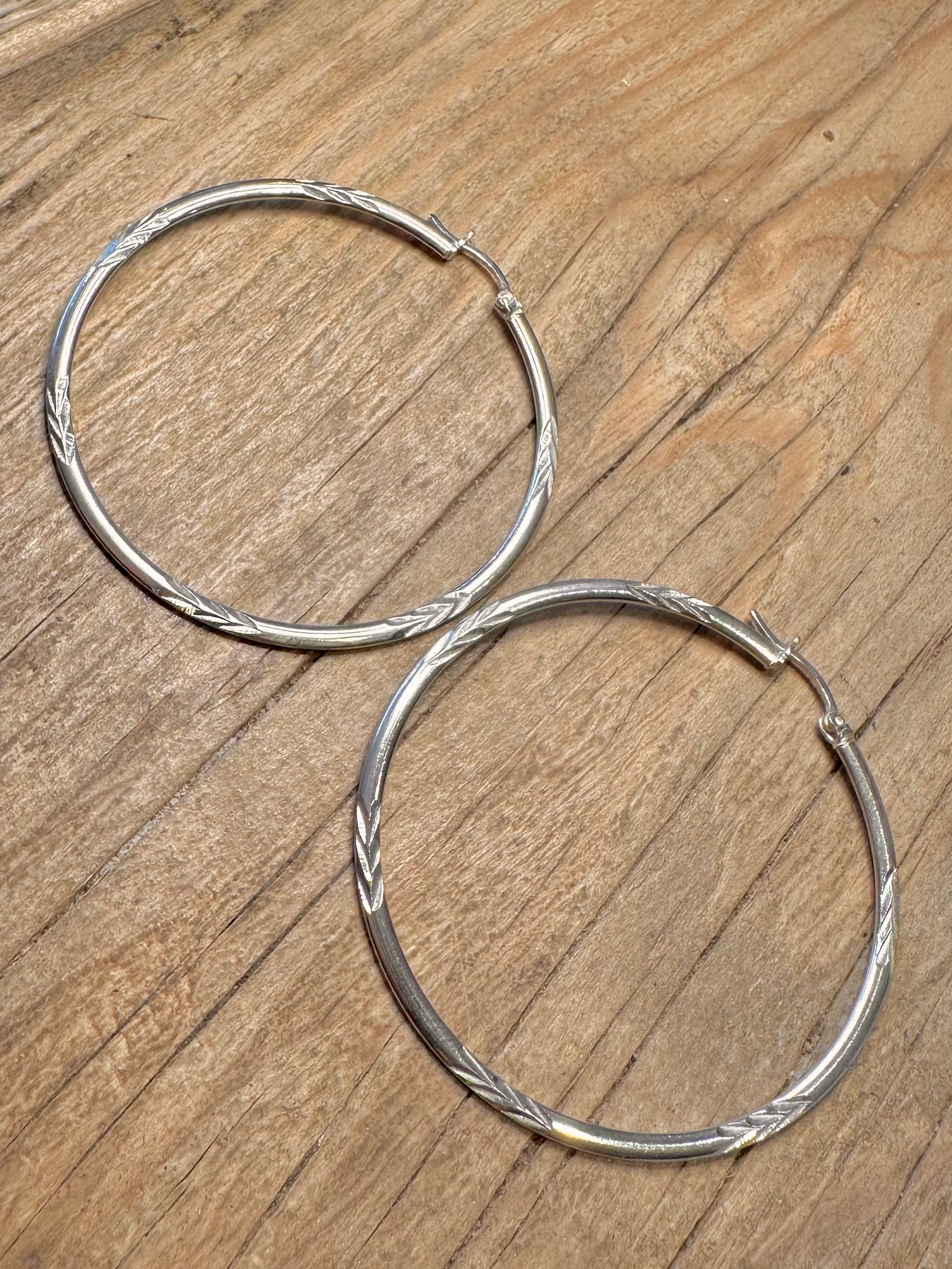 Vintage Large Textured Hoops 925 Sterling Silver Earrings