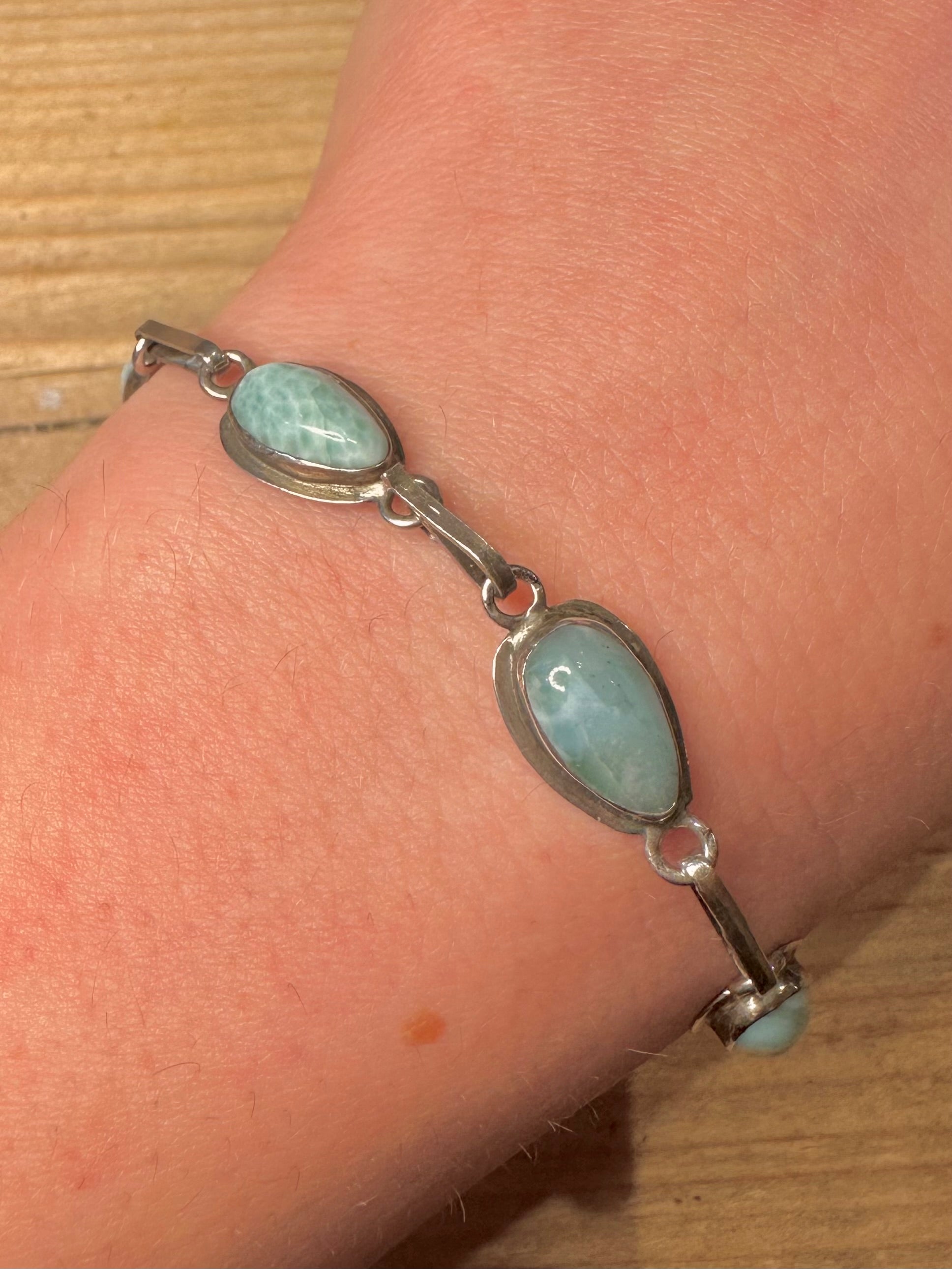 Vintage Larimar Tear Drop 925 Sterling Silver 8.3 inch Bracelet