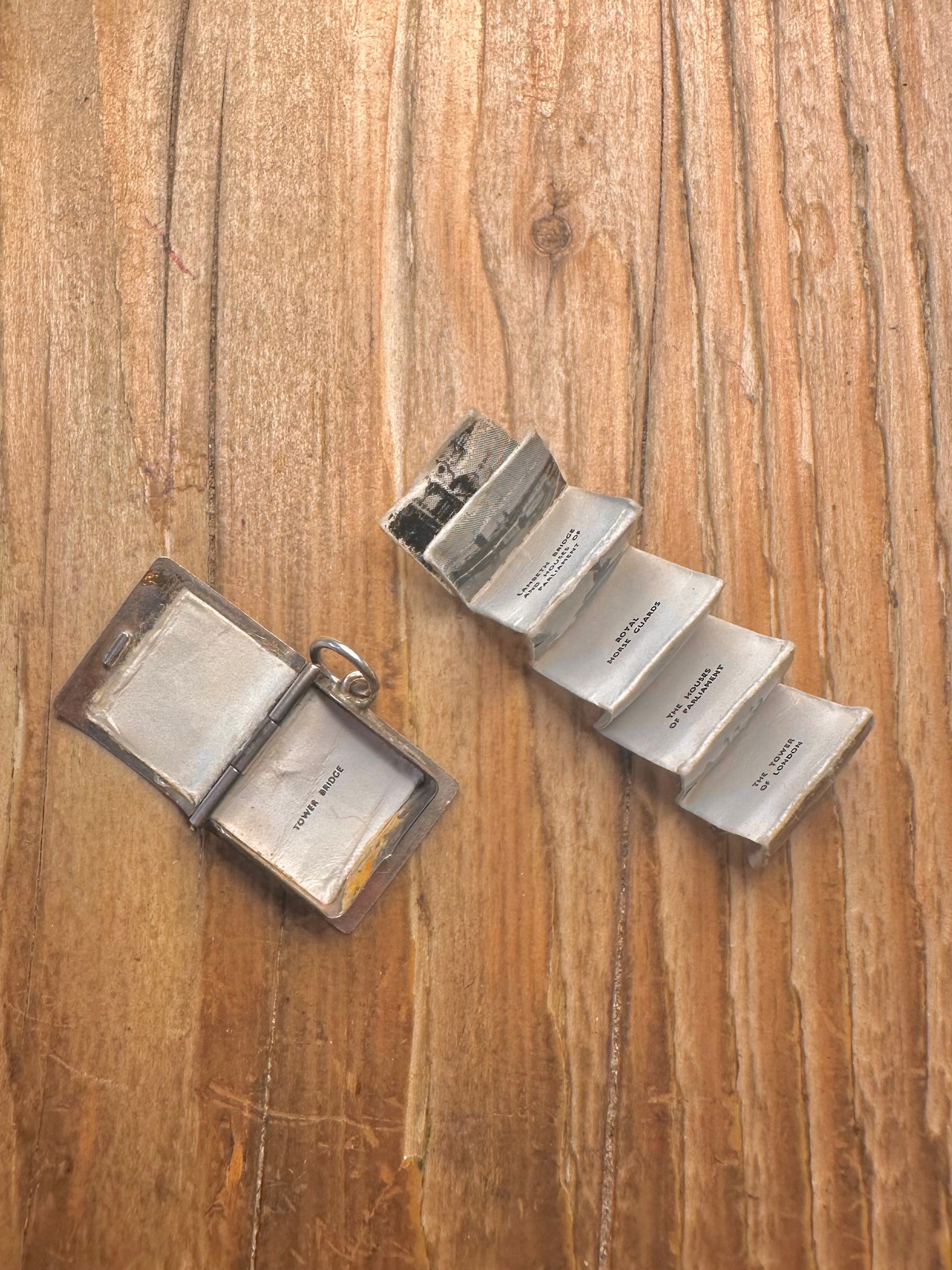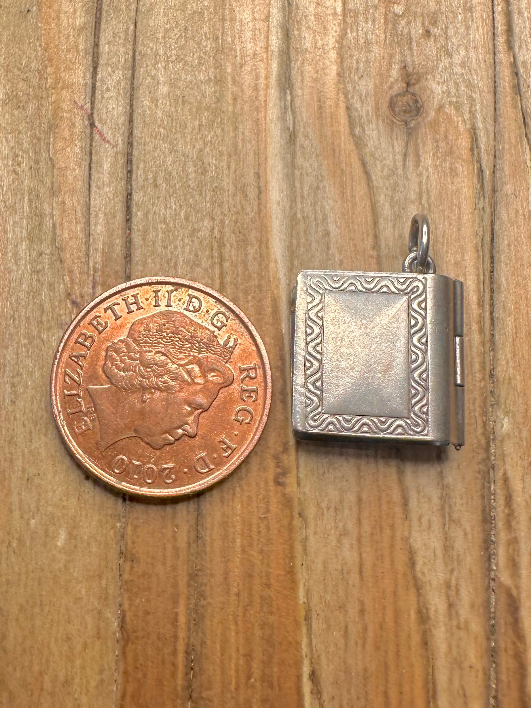 Vintage London Book Enamel with Paper Photos 925 Sterling Silver Charm Pendant