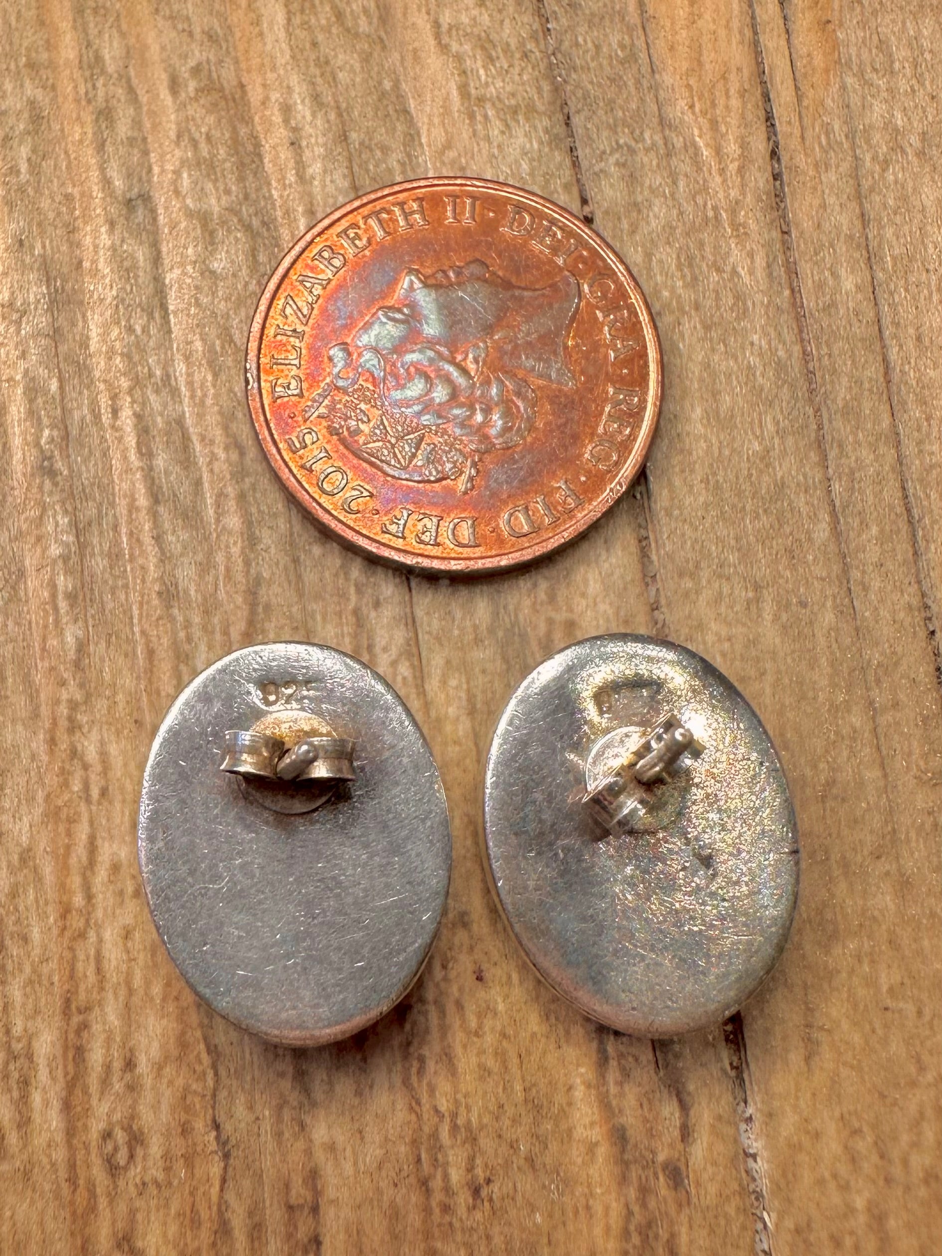 Vintage Malachite Oval Stud 925 Sterling Silver Earrings