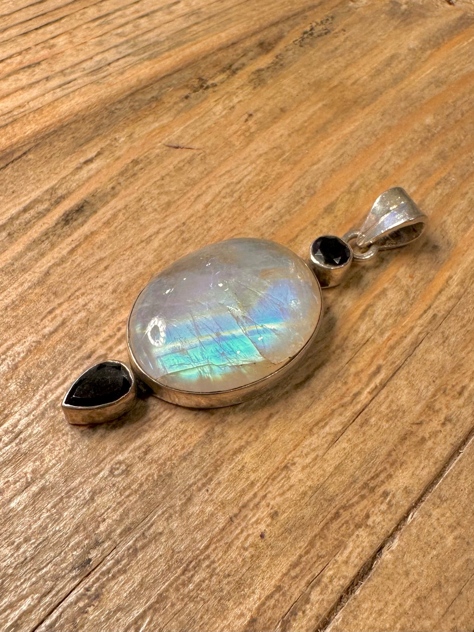 Vintage Moonstone and Dark Blue Stone 925 Sterling Silver Pendant