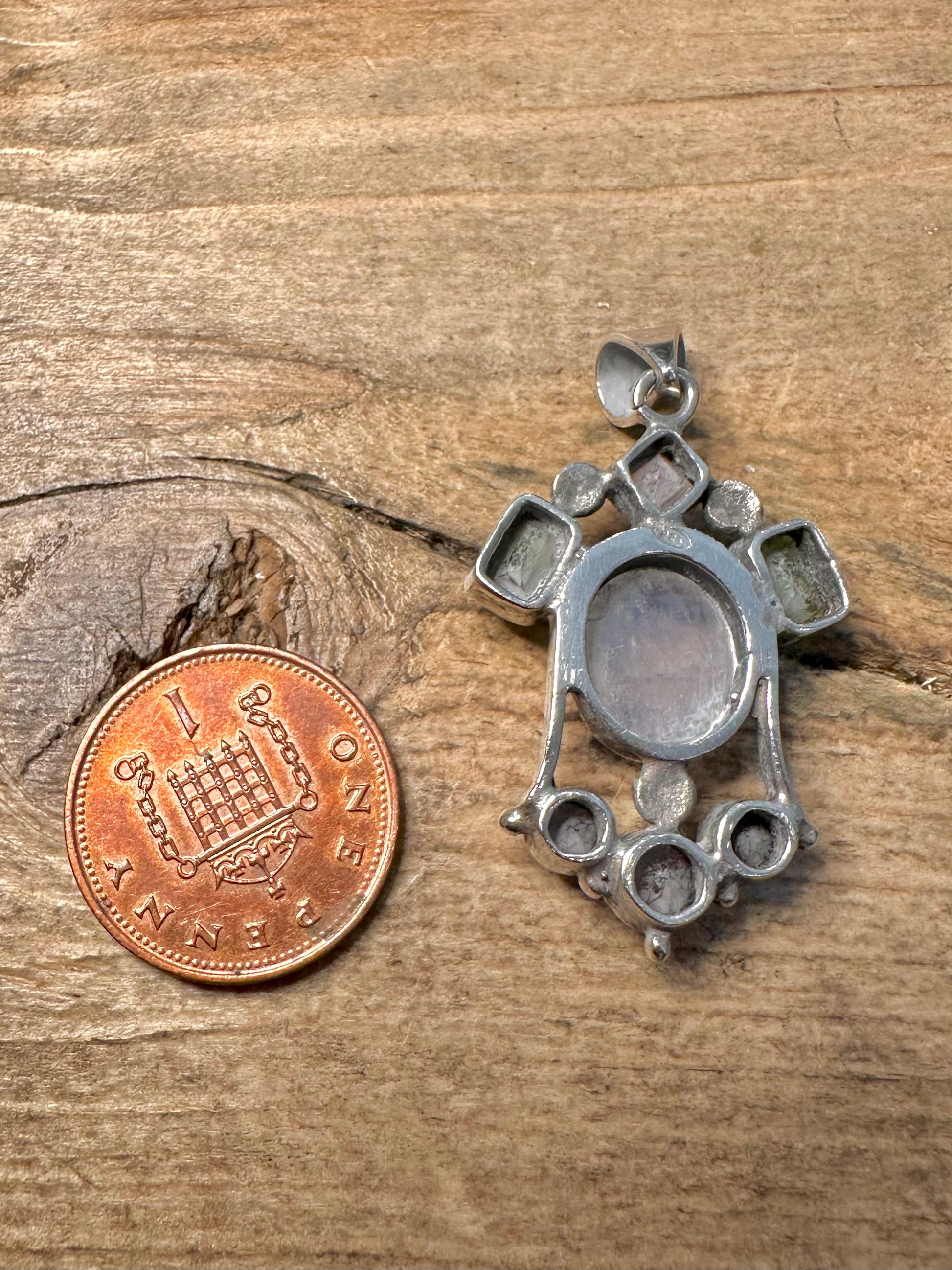 Vintage Moonstone Peridot Amethyst 925 Silver Pendant
