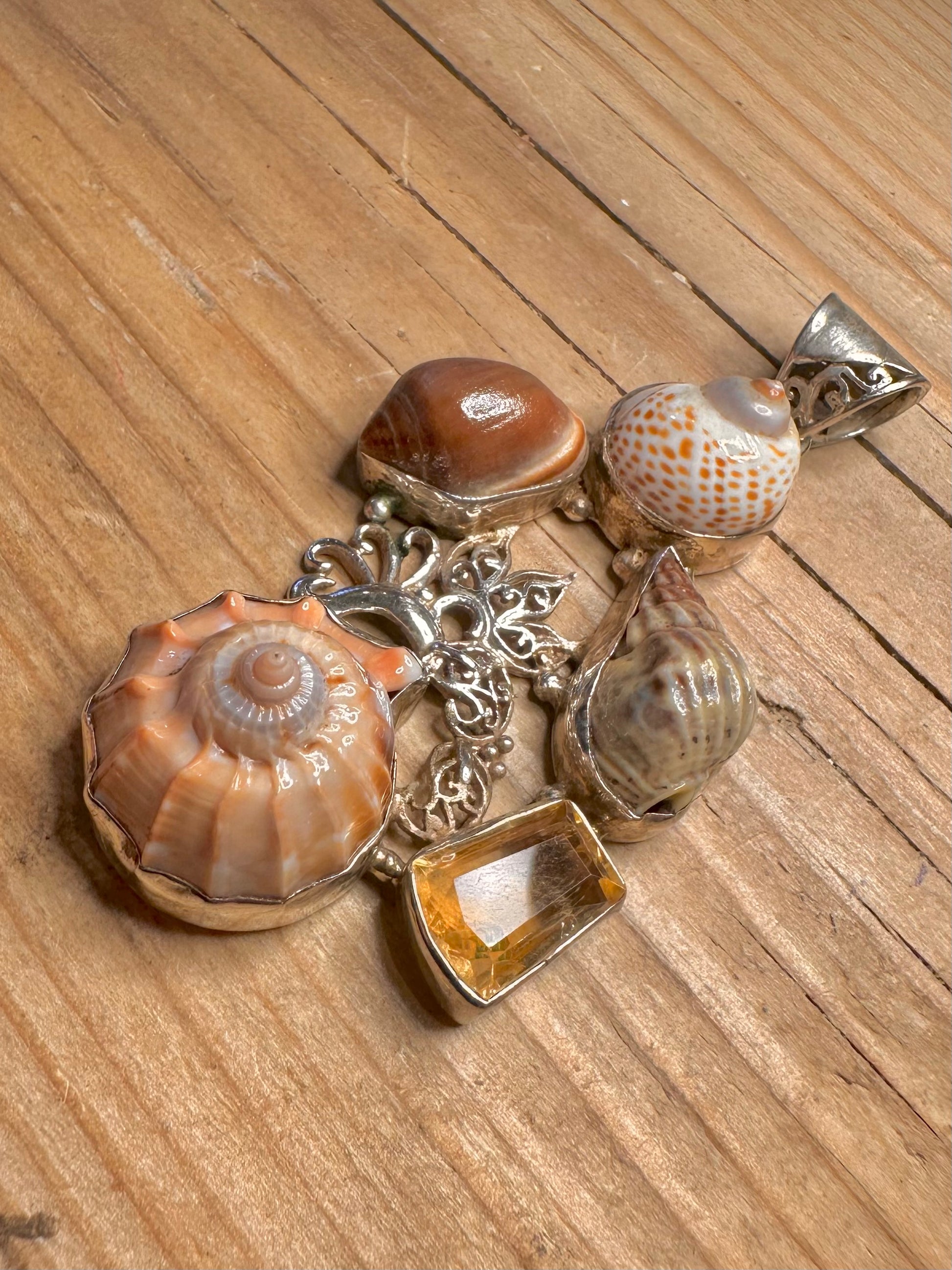 Vintage Multi Shell and Citrine 925 Sterling Silver Pendant