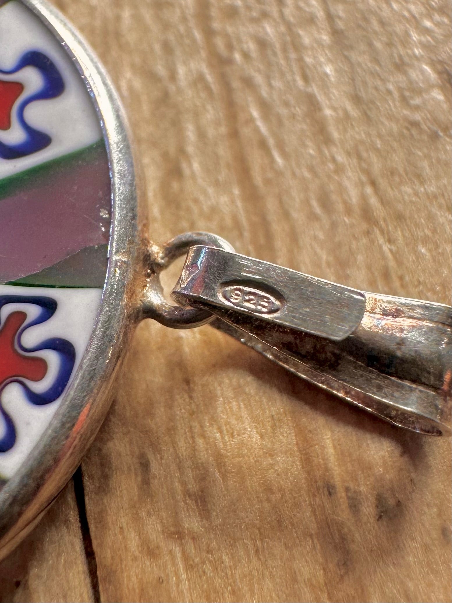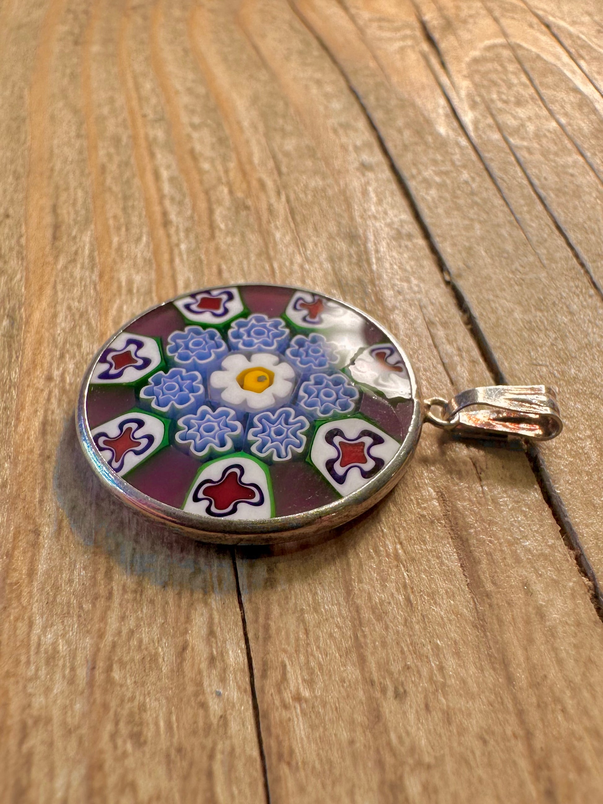 Vintage Murano Glass Millefiori 925 Sterling Silver Pendant