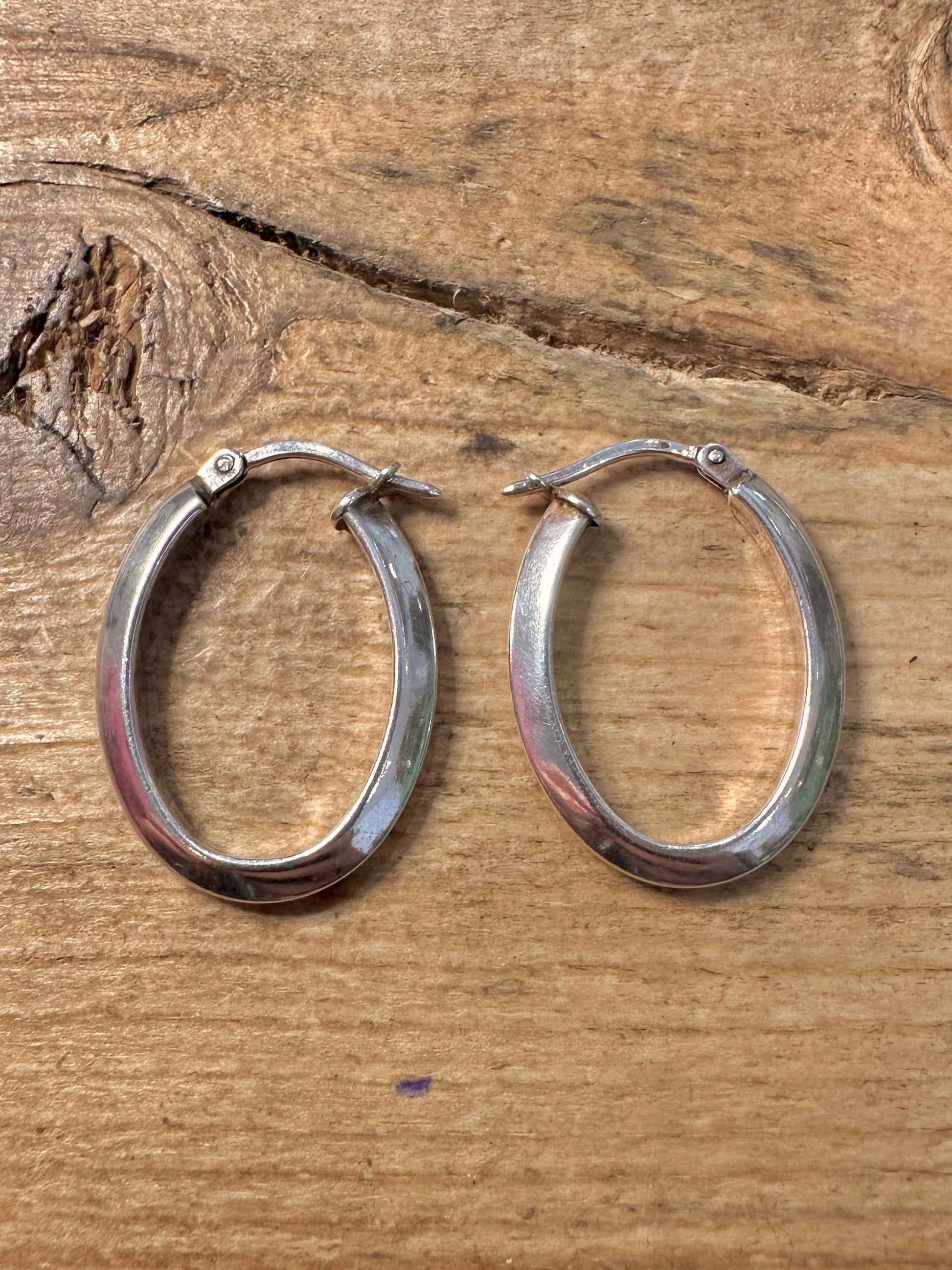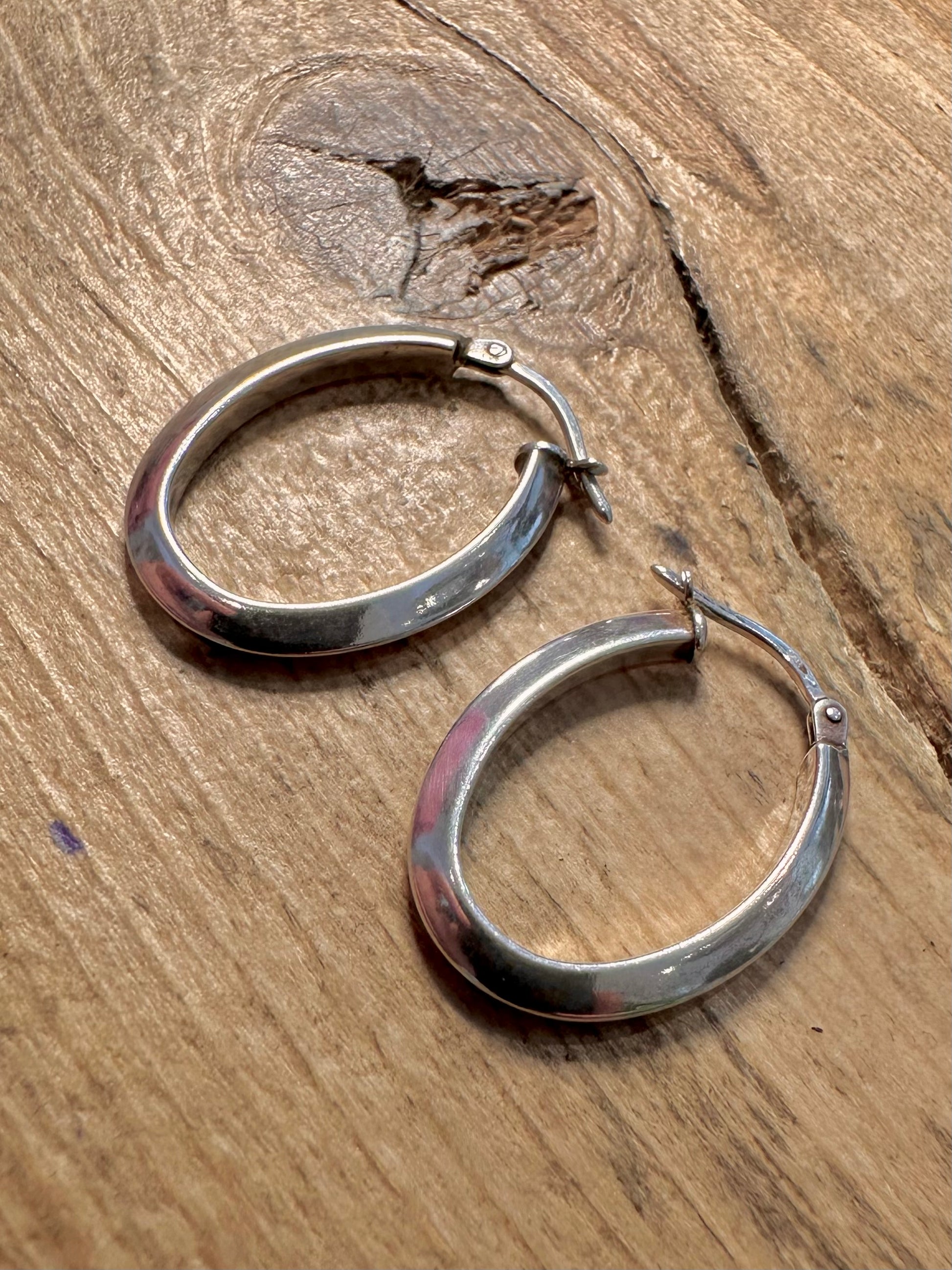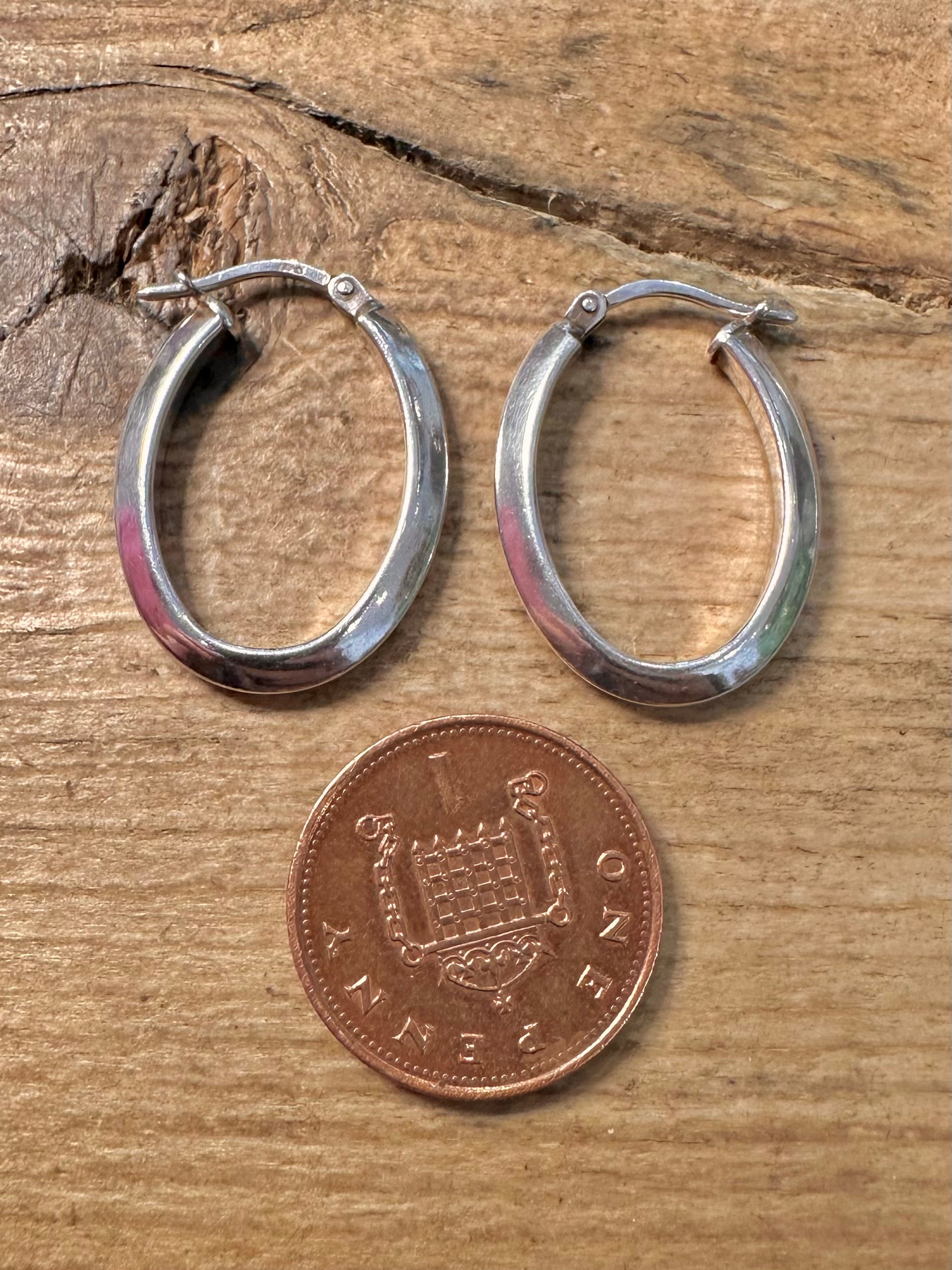 Vintage Oval Creole 925 Silver Hoops Earrings