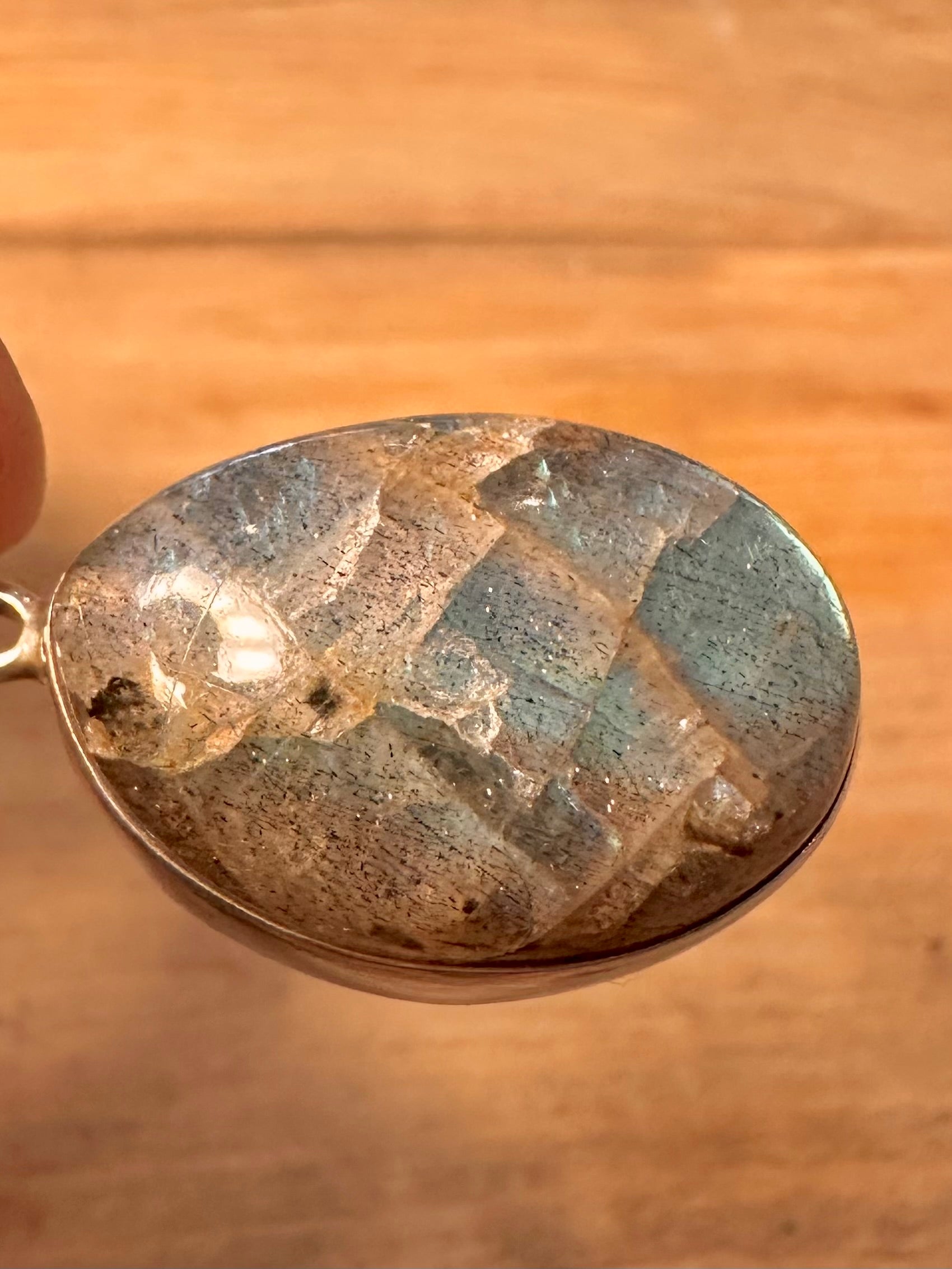 Vintage Oval Labradorite 925 Silver Pendant
