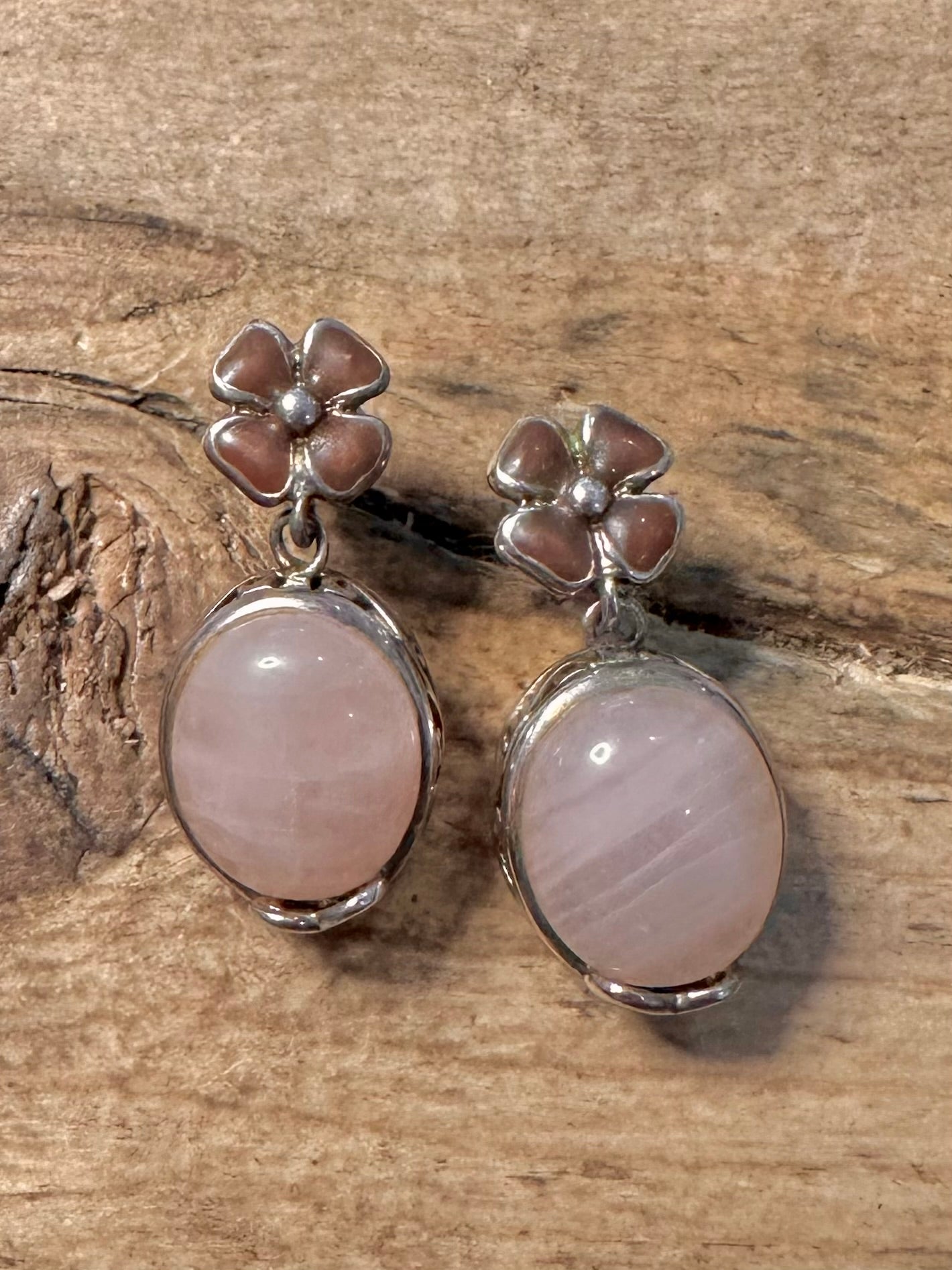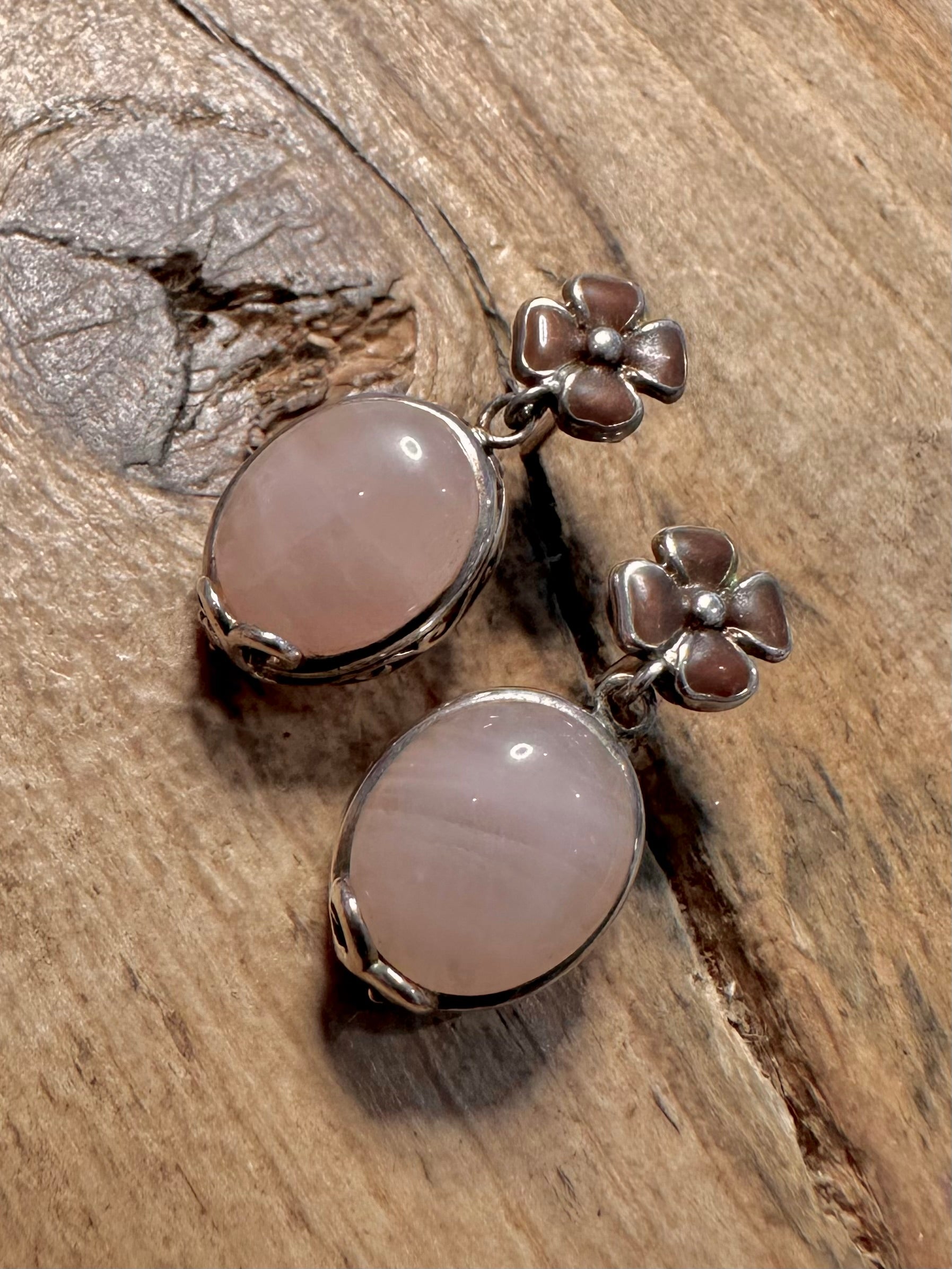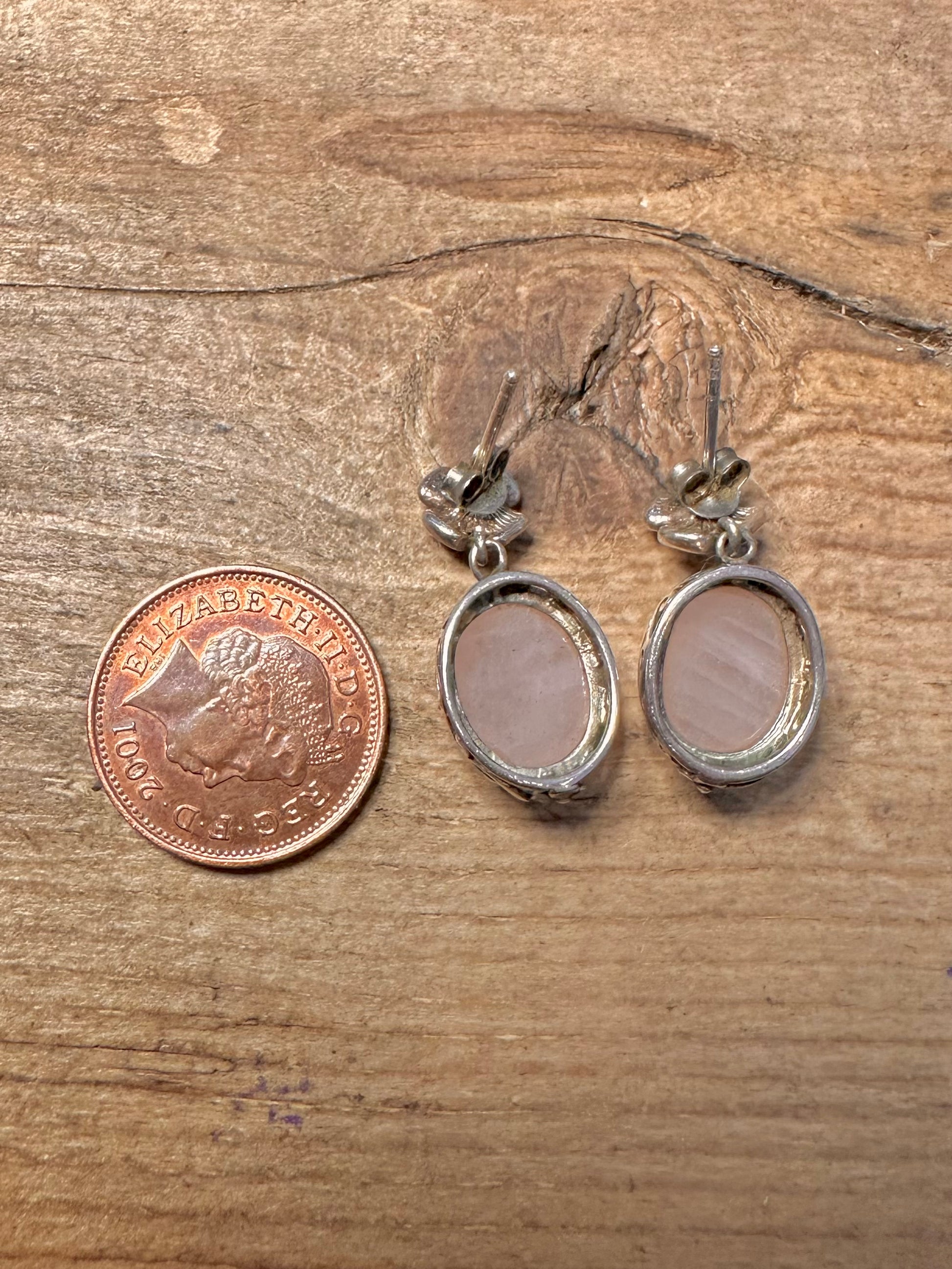 Vintage Rose Quarts Flower 925 Silver Earrings