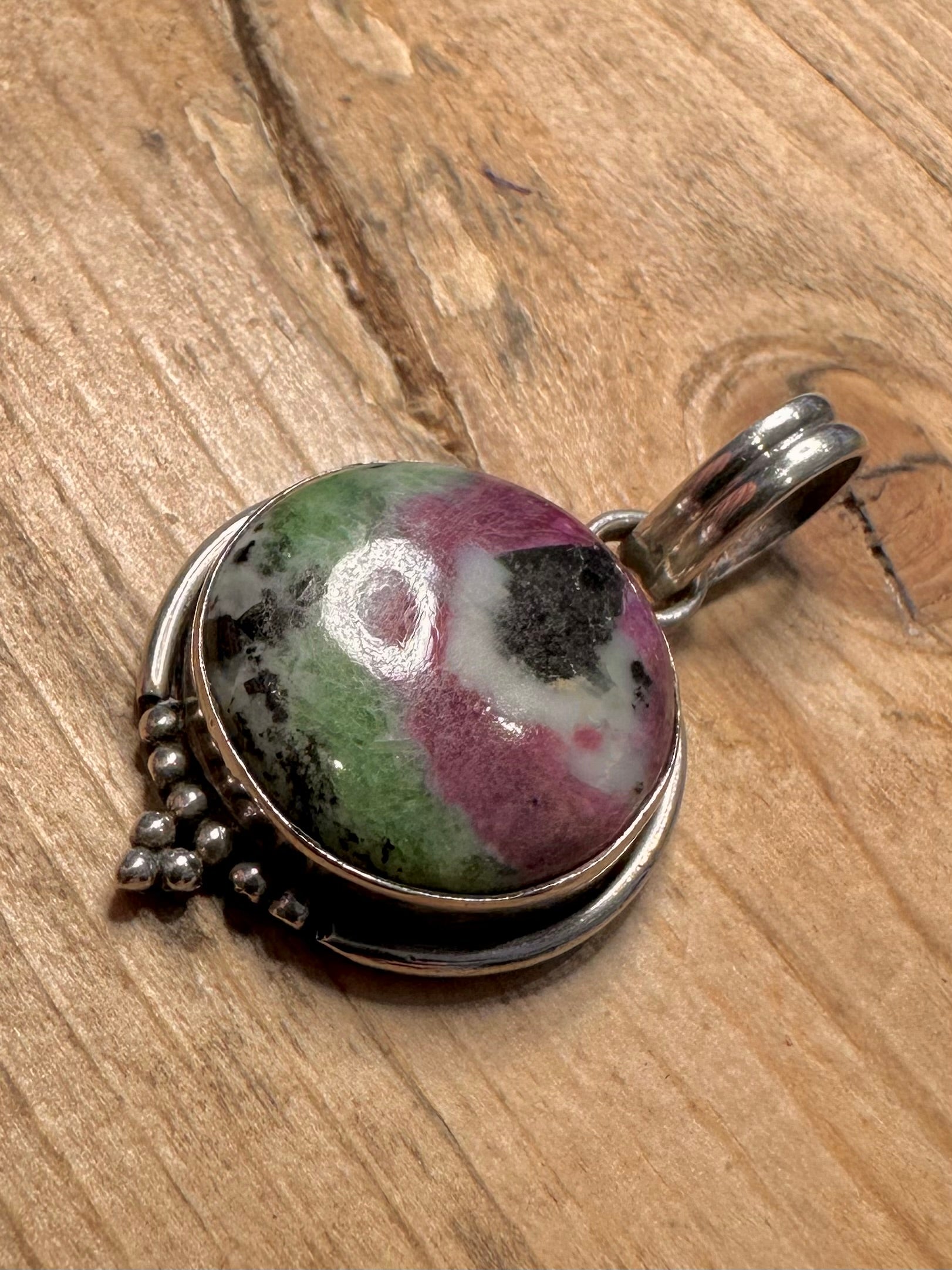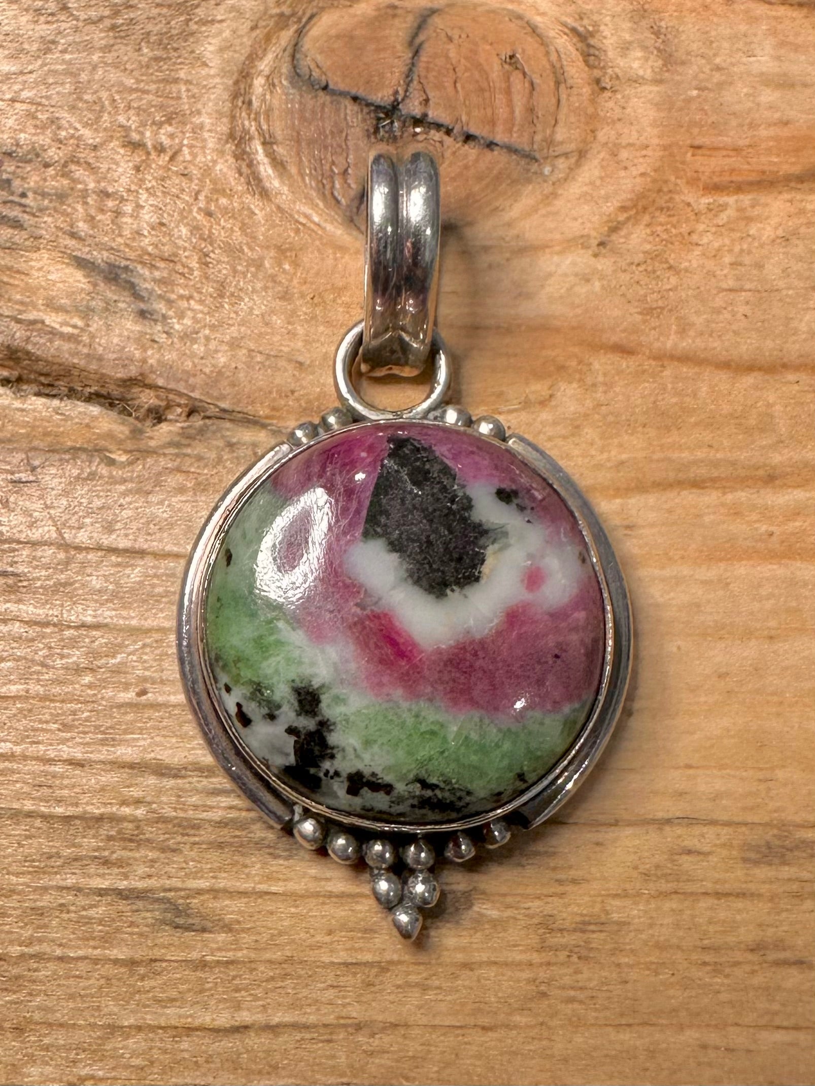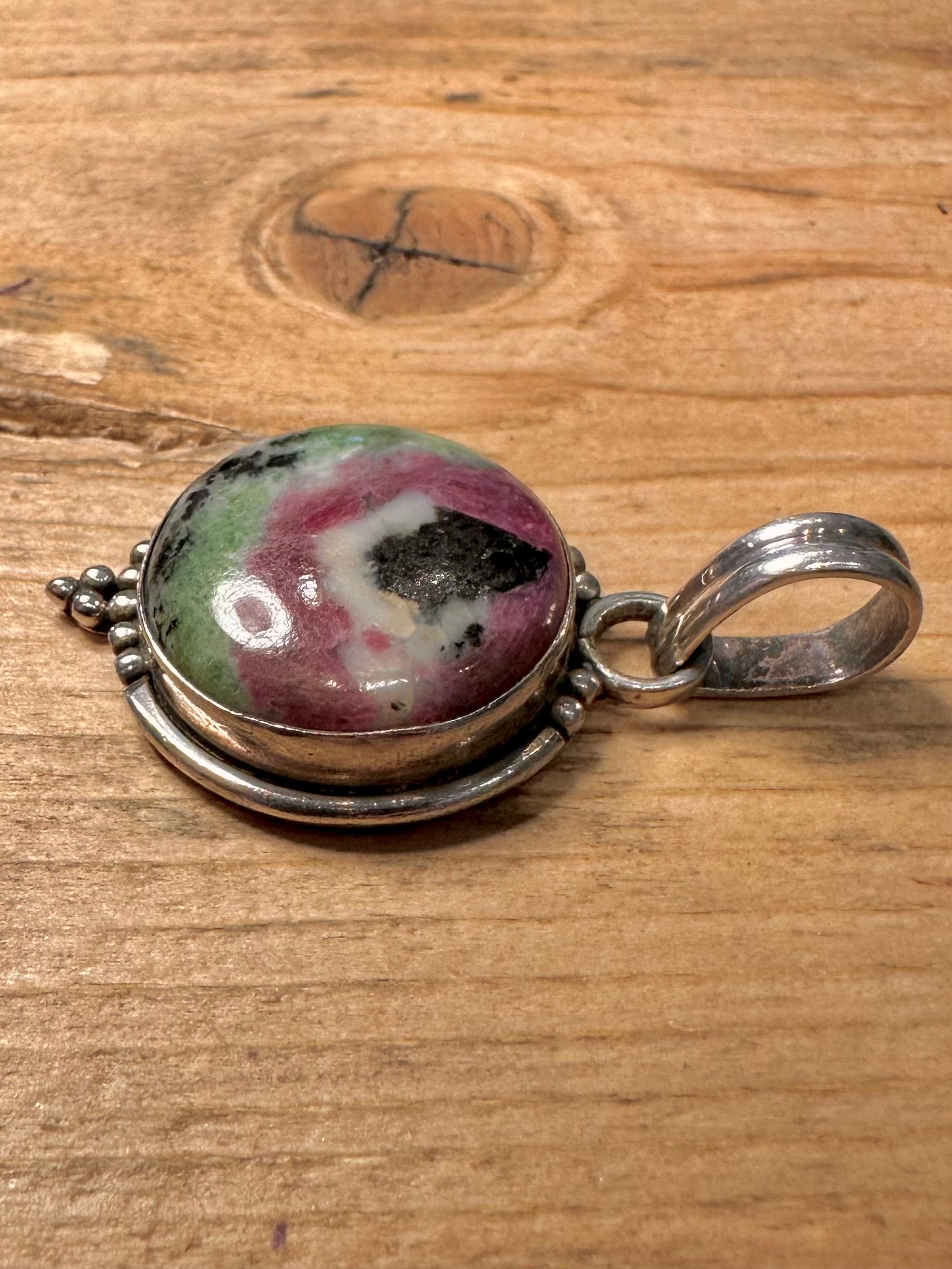 Vintage Ruby Zoisite Circle 925 Silver Pendant