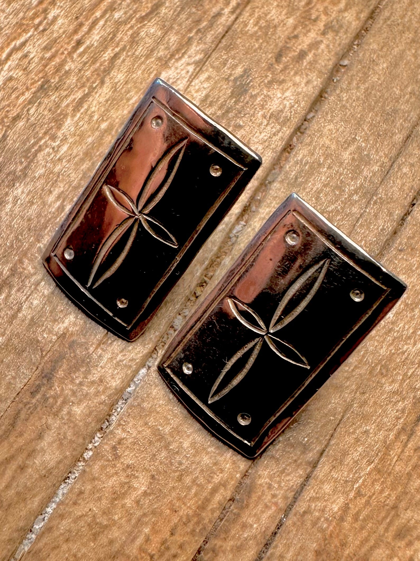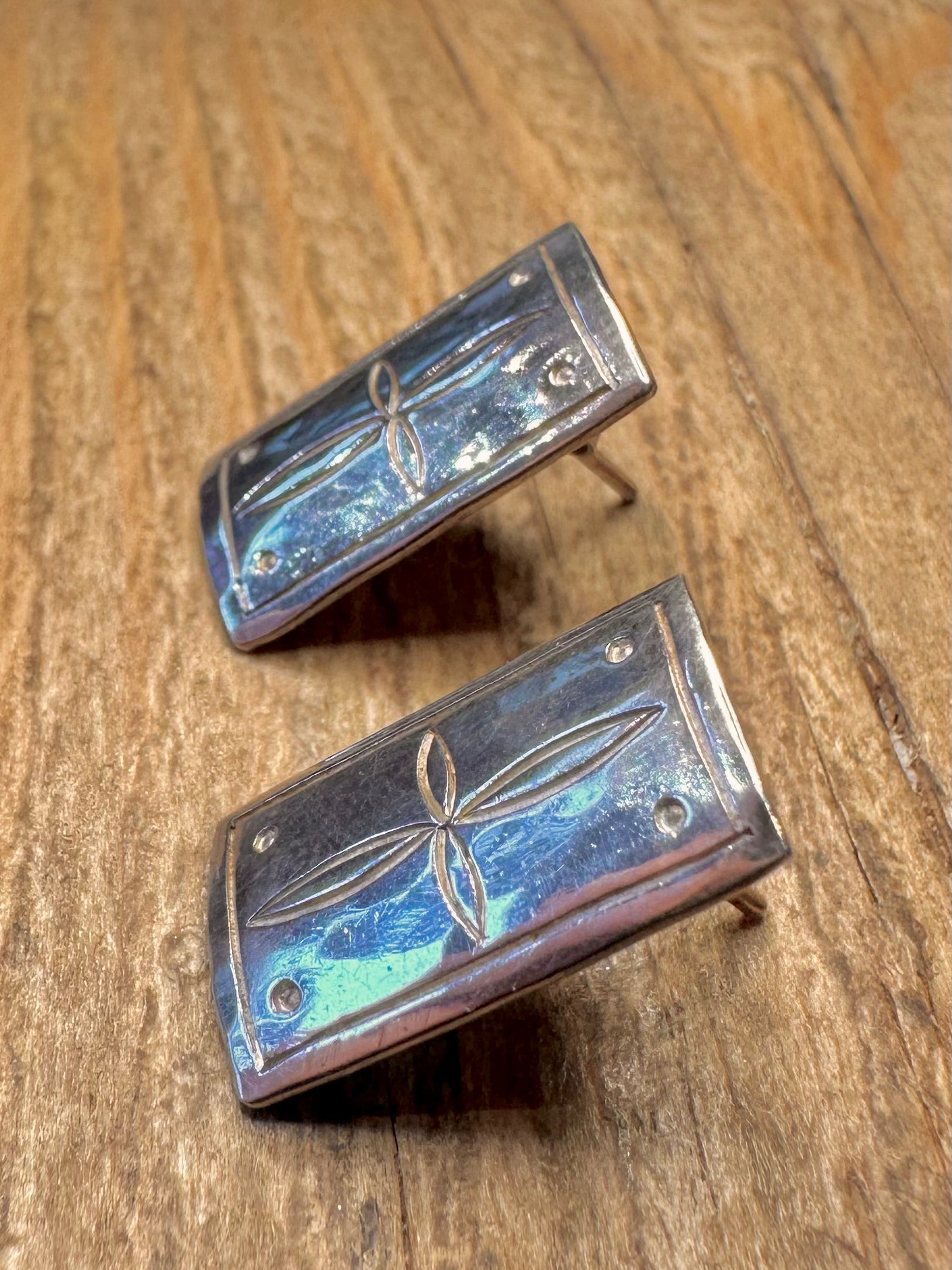 Vintage Star Rectangle Stud 925 Sterling Silver Earrings