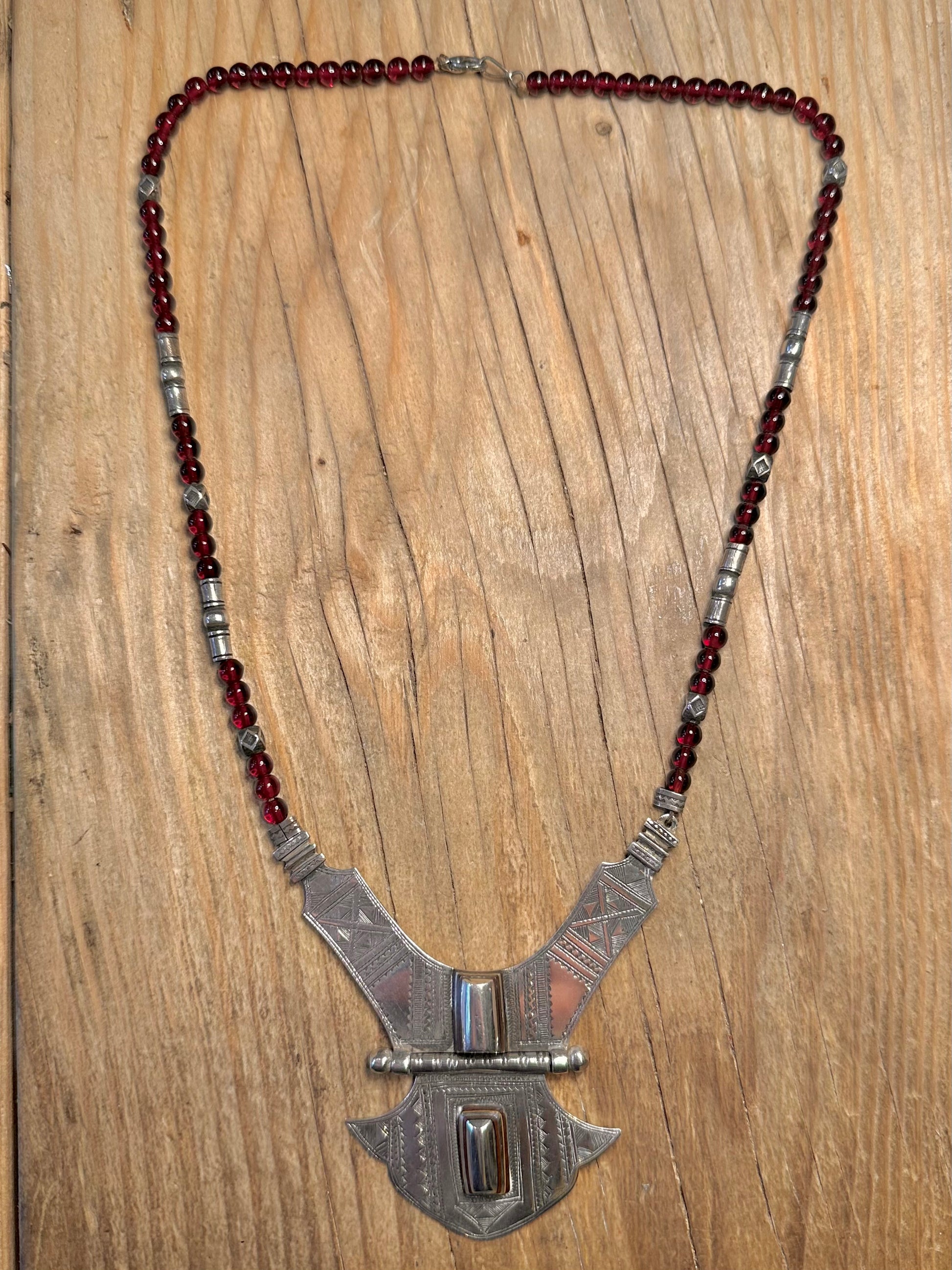 Vintage Stunning Tuareg Carnelian Bead Textured Silver 20 inch Necklace