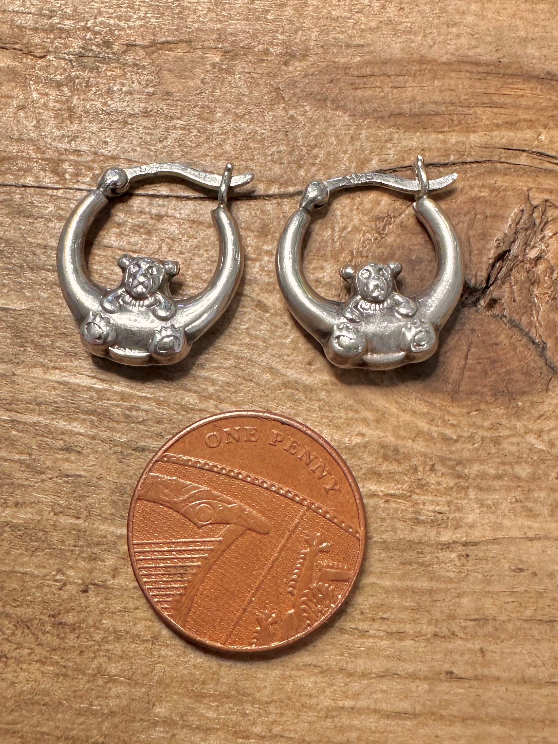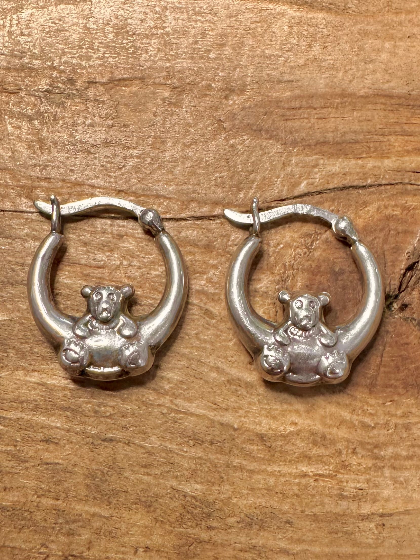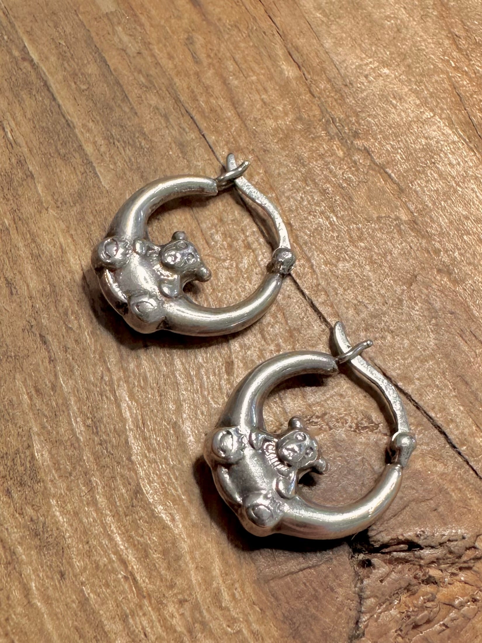 Vintage Teddy Bear Hoop 925 Silver Earrings