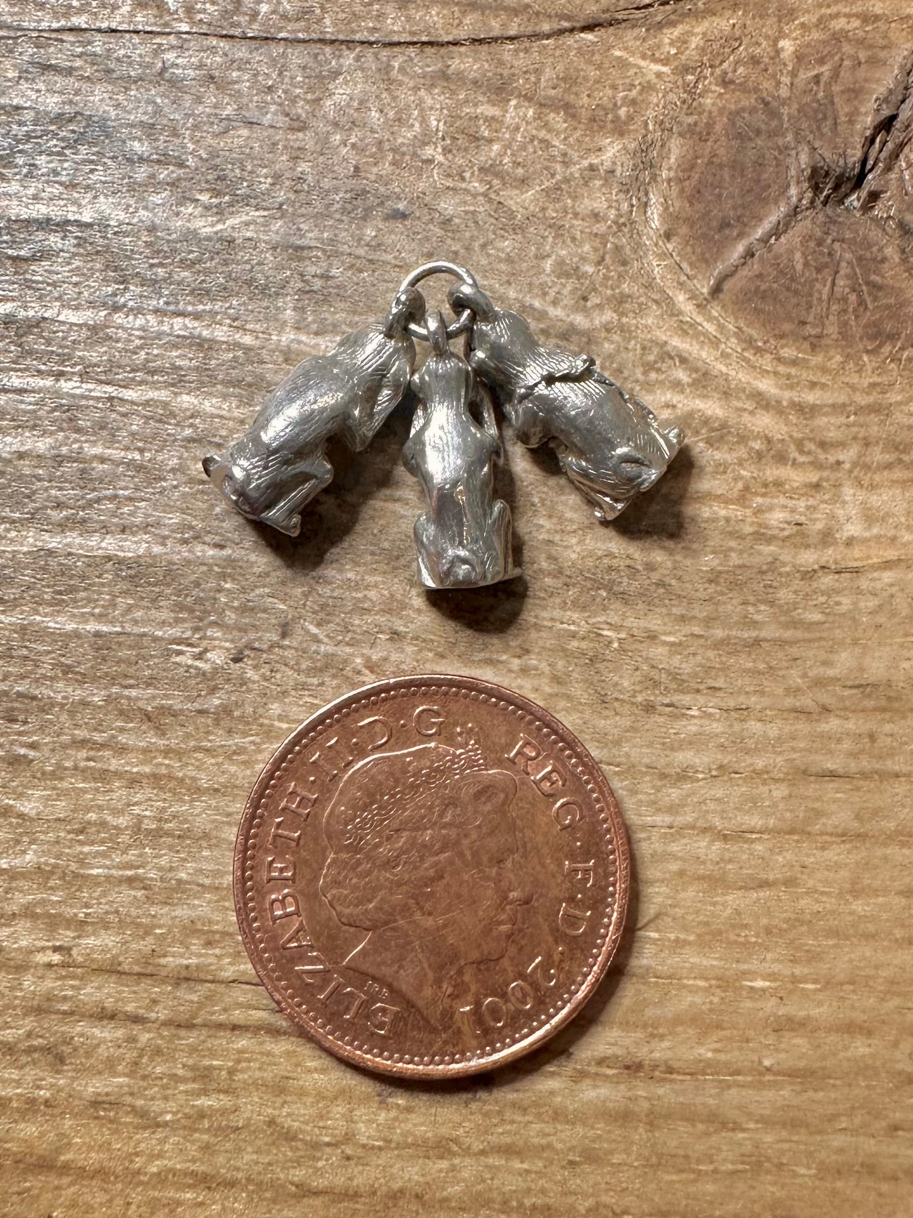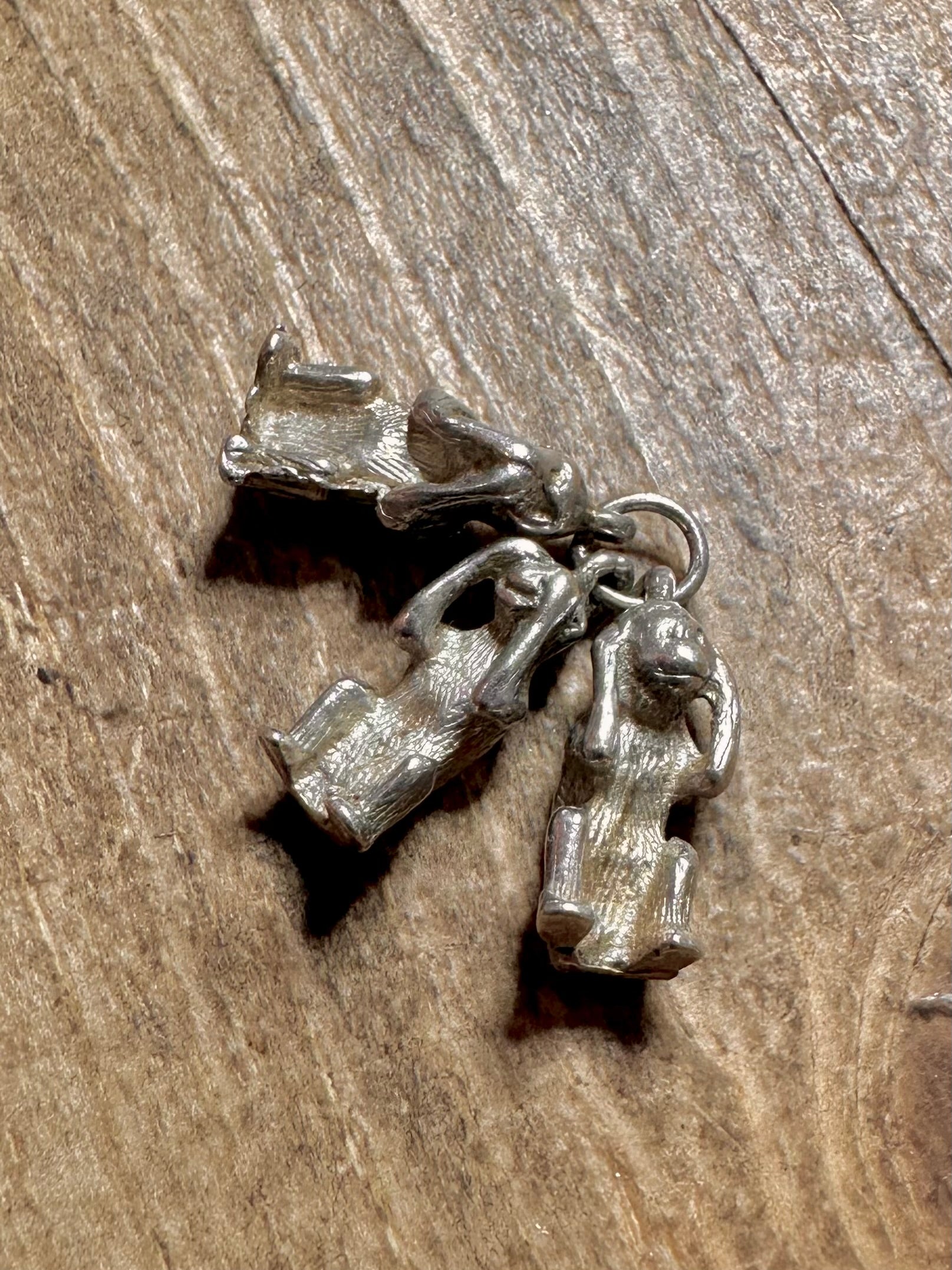 Vintage Three Wise Monkeys 925 Silver Charm Pendant