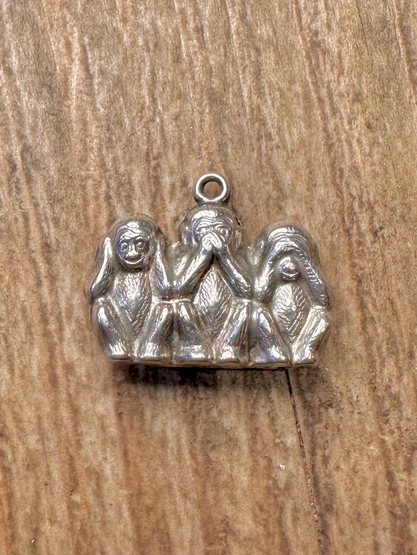 Vintage Three Wise Monkeys 925 Sterling Silver Pendant