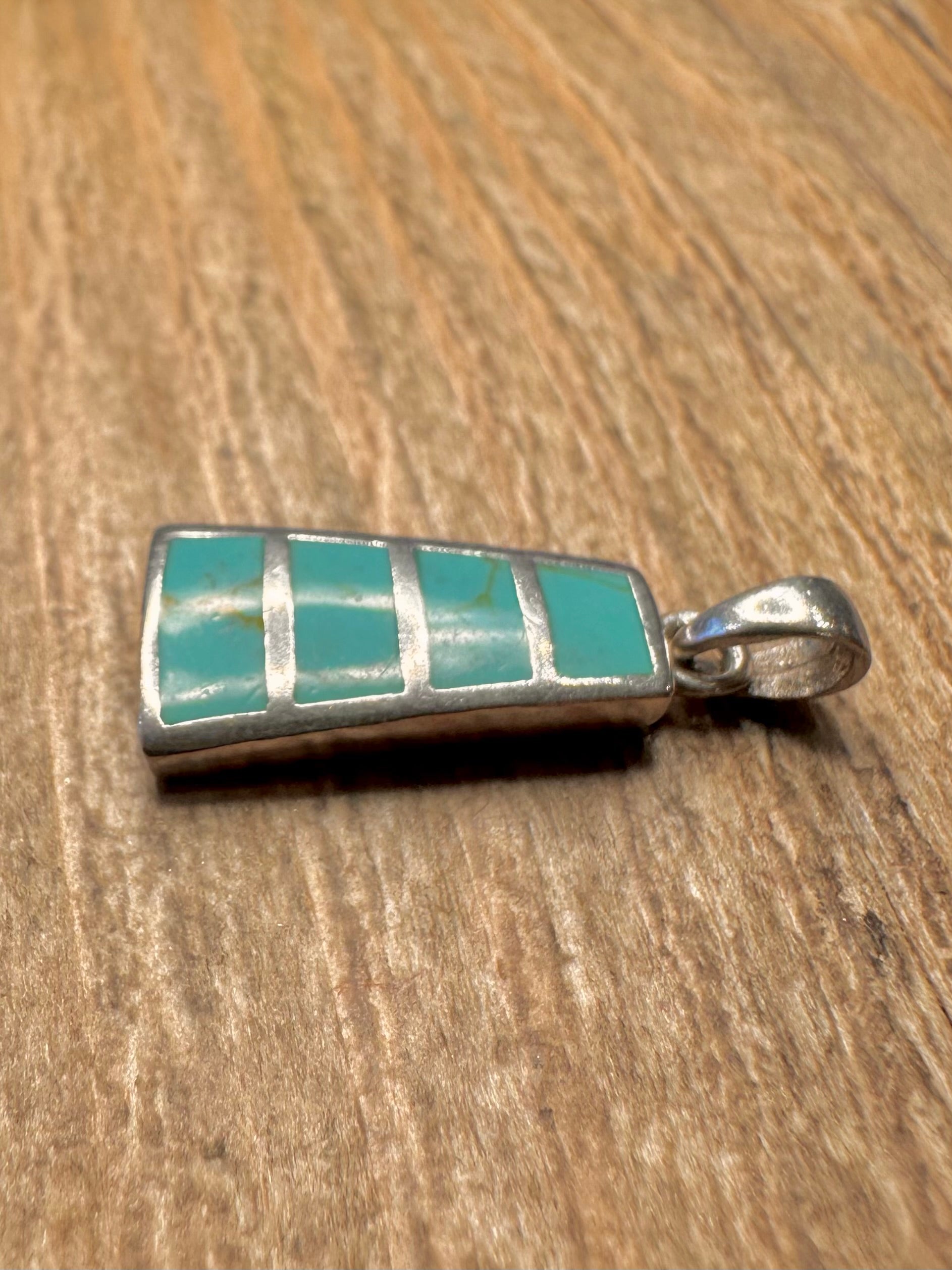 Vintage Turquoise Rectangle 925 Sterling Silver Pendant