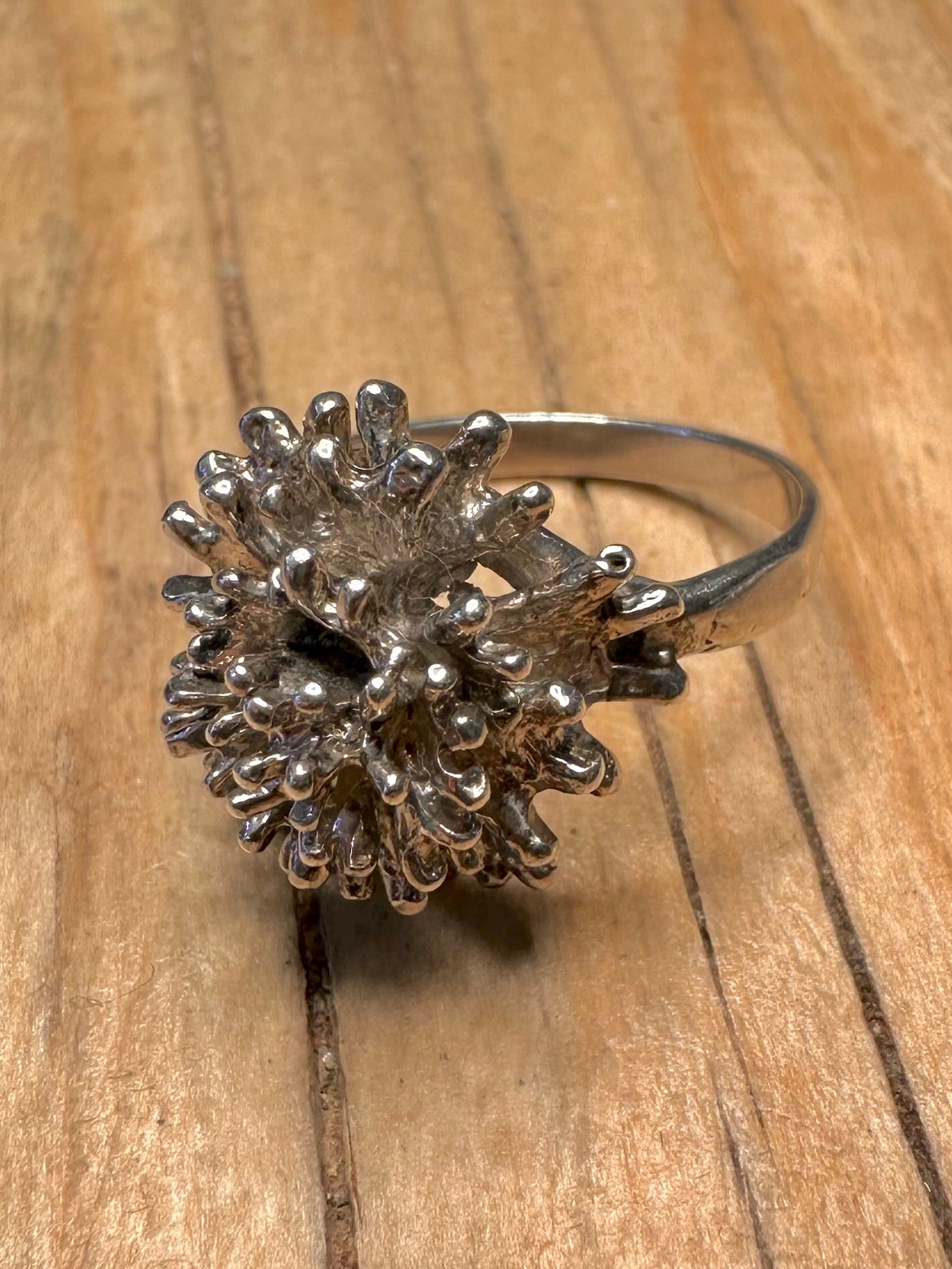 Abstract 1970 Brutalist Coral 925 Sterling Silver Size N Ring