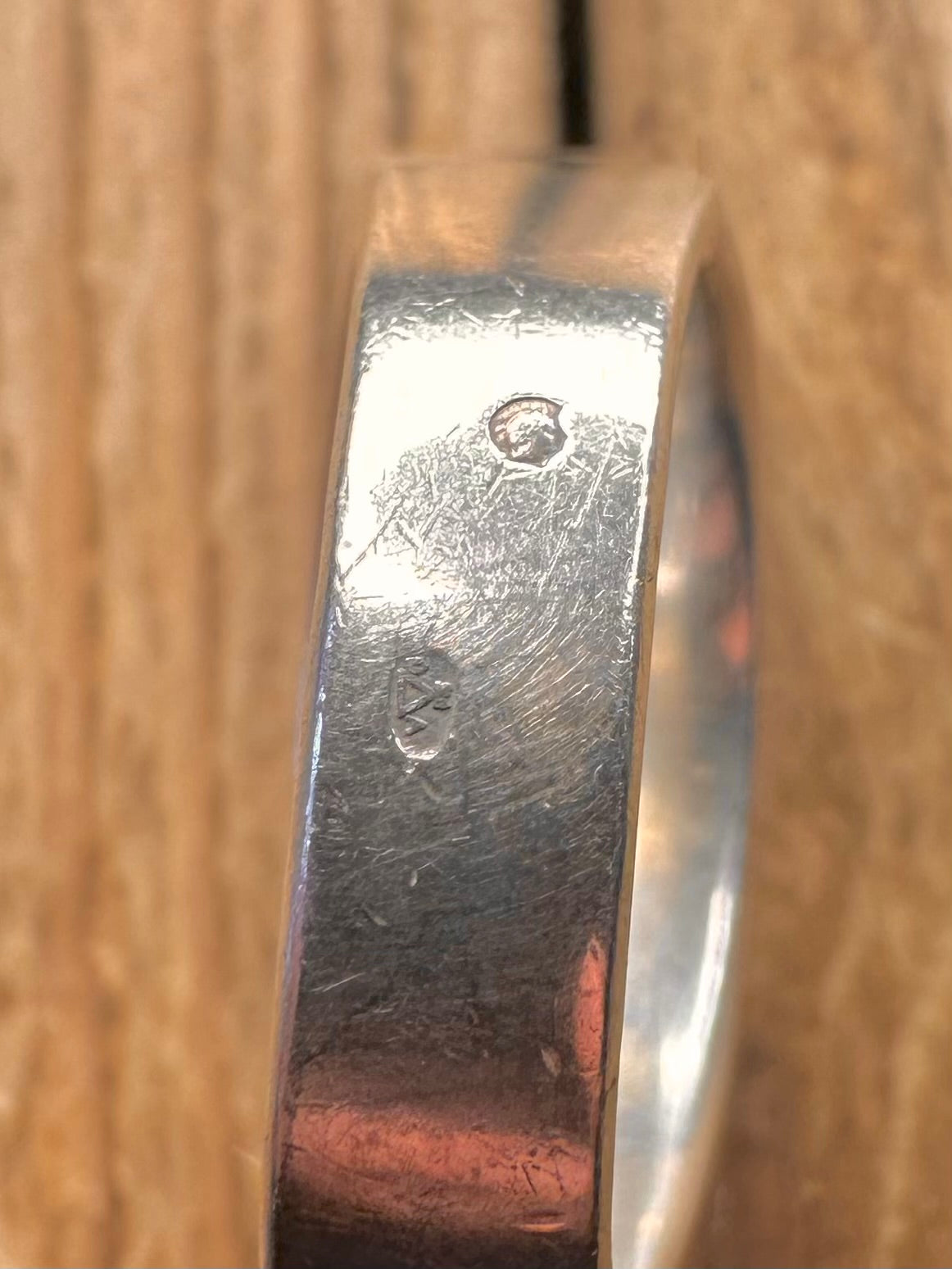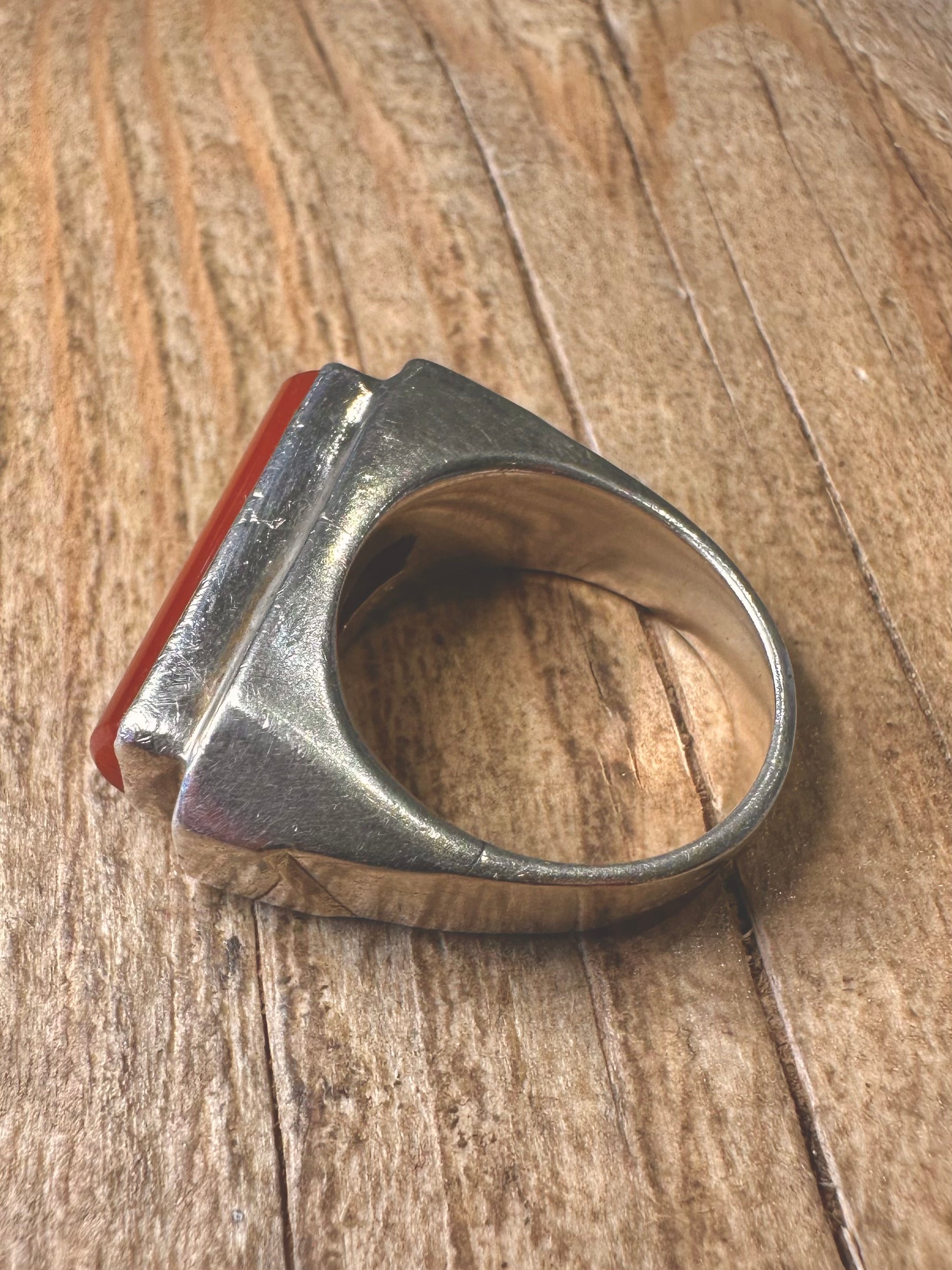Abstract Carnelian Rectangle Chunky Europe Hallmarked 925 Sterling Silver Size S Ring