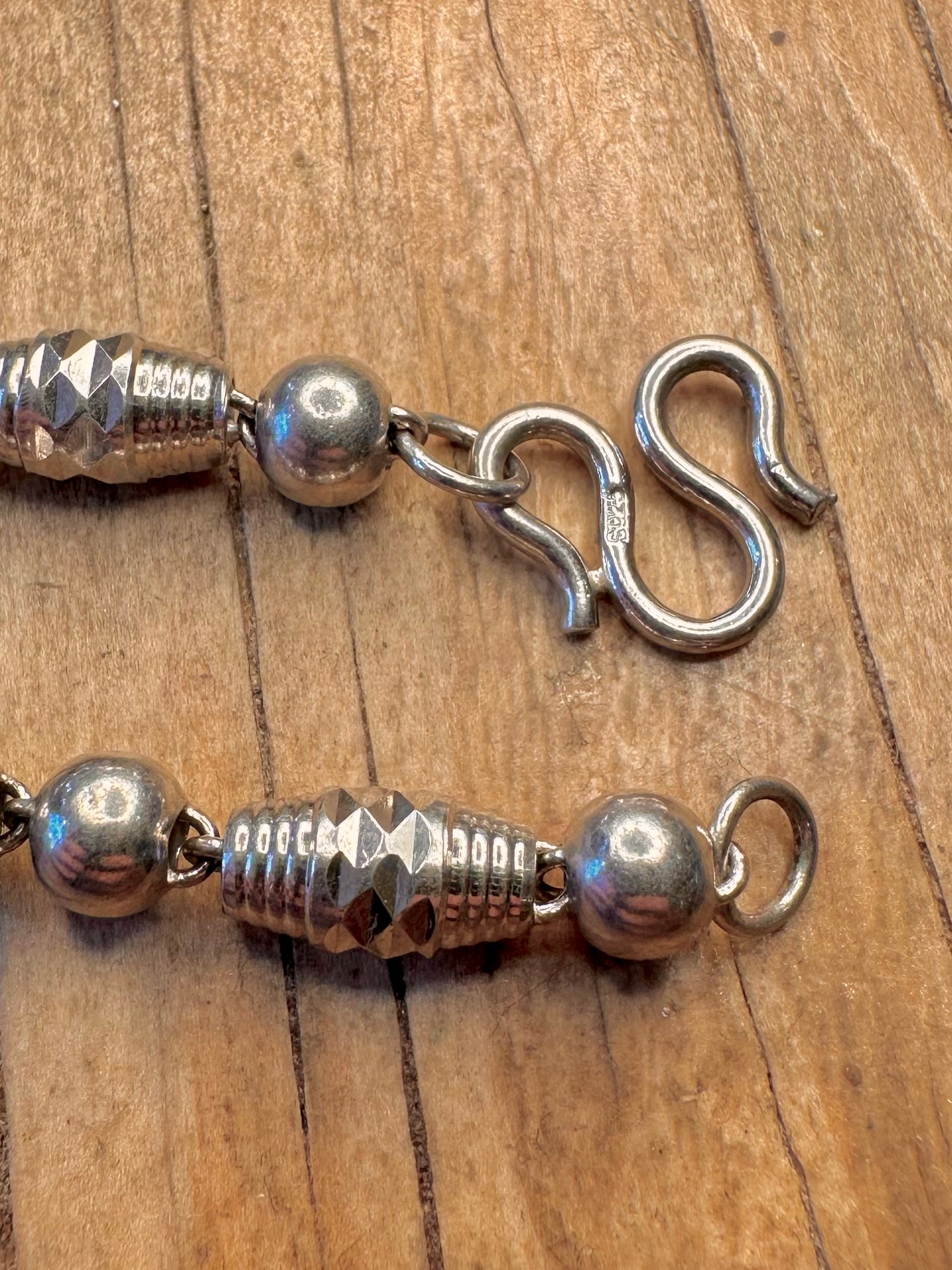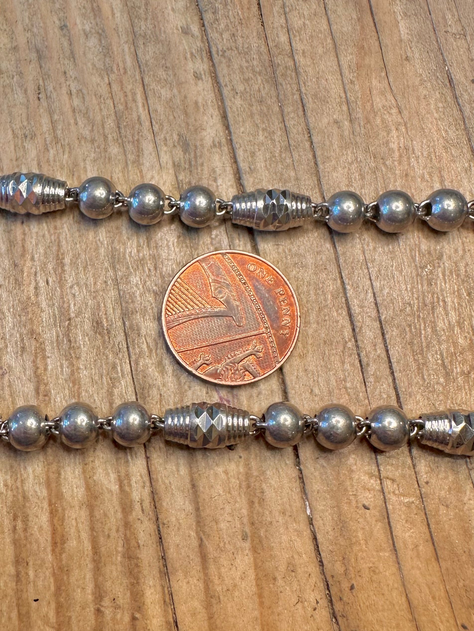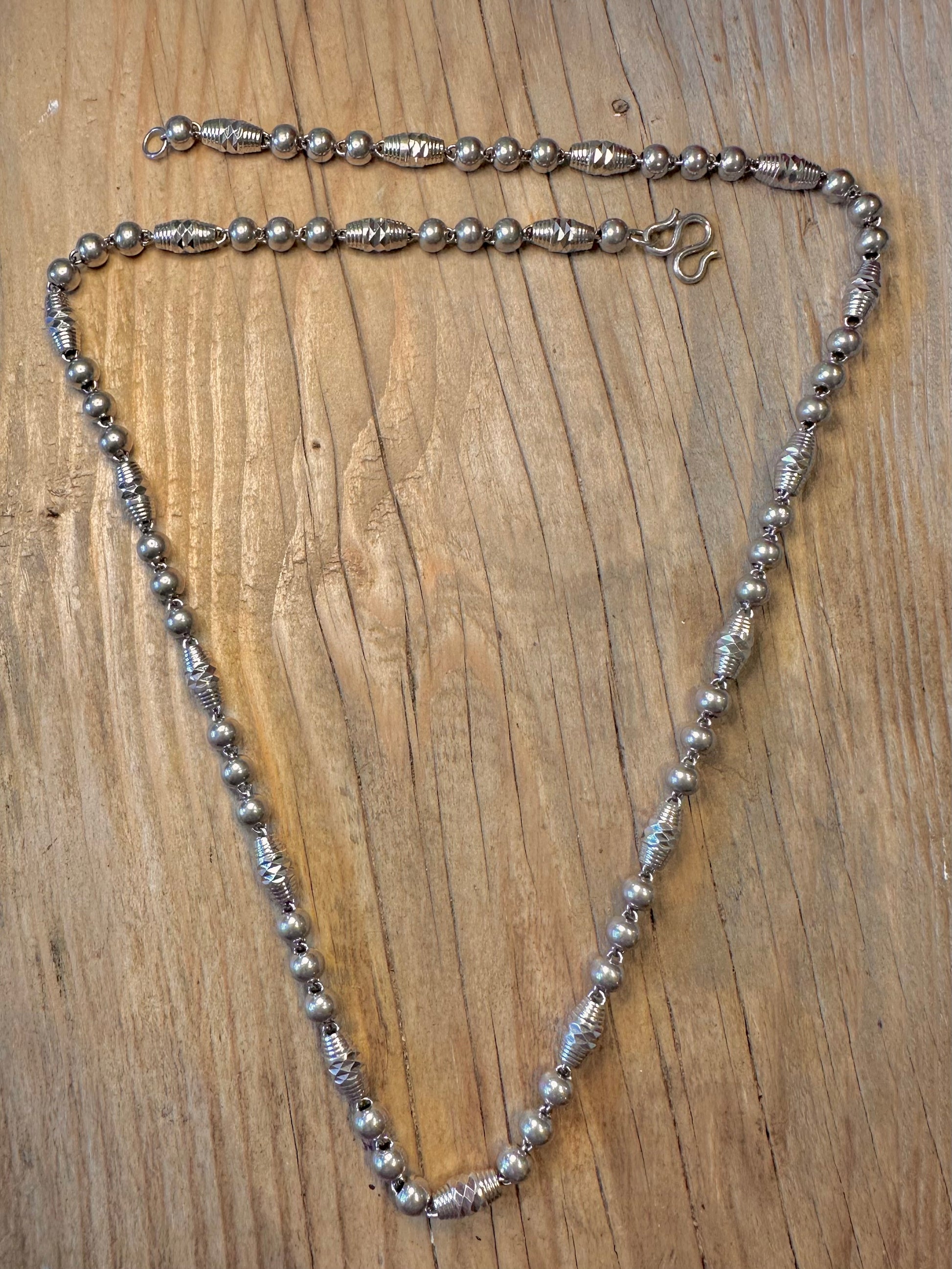 Abstract Engraved Ball and Barn Link 925 Sterling Silver 25.8 inch Necklace