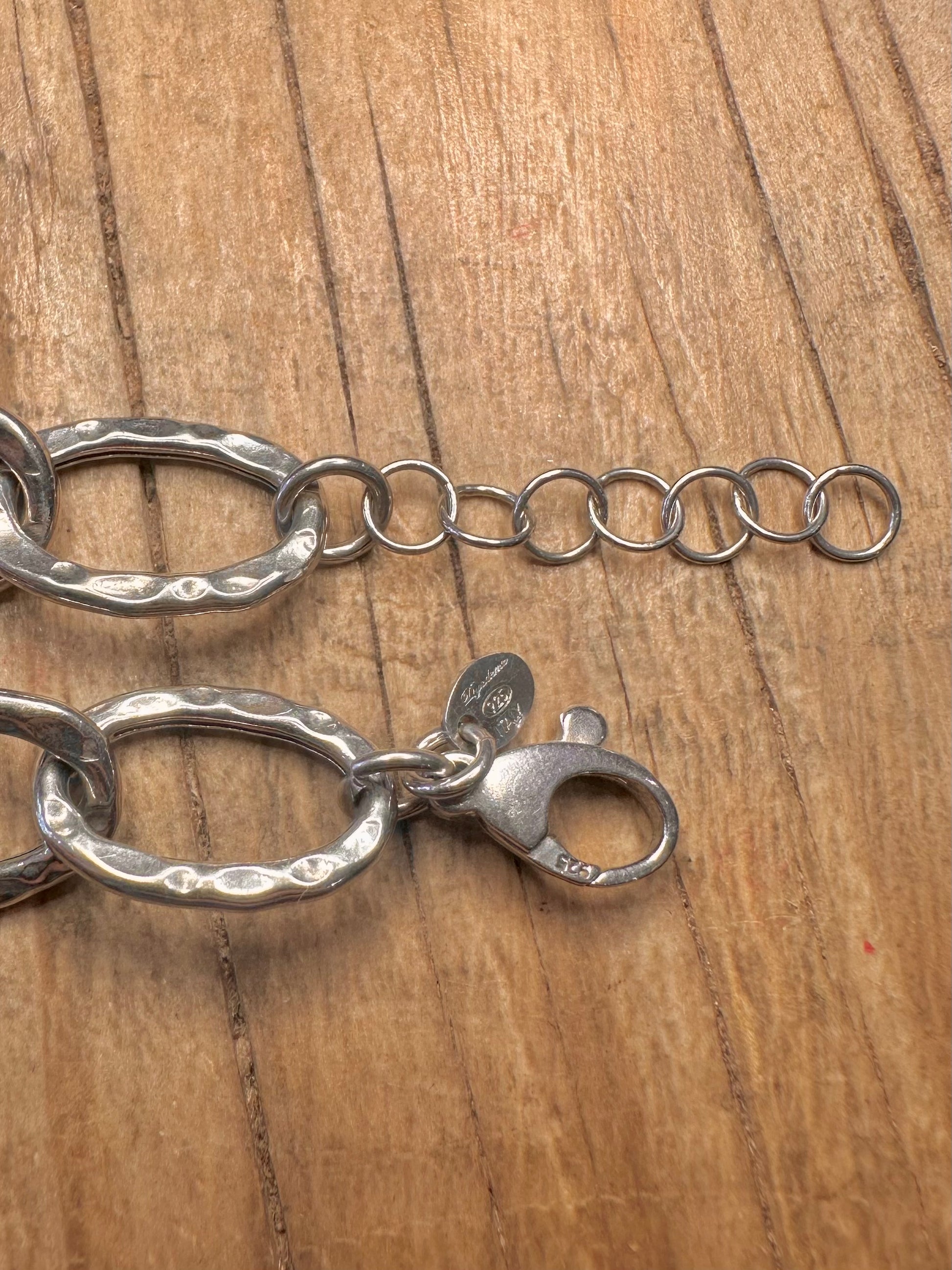 Abstract Hammered Oval Link Dyadema Italy 925 Sterling Silver 7 to 8 inch Bracelet