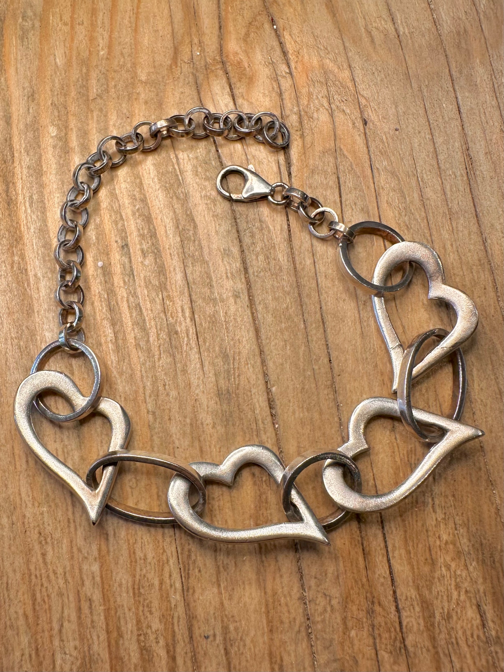 Abstract Heart Link 925 Sterling Silver 6.7 to 9.5 inch Bracelet