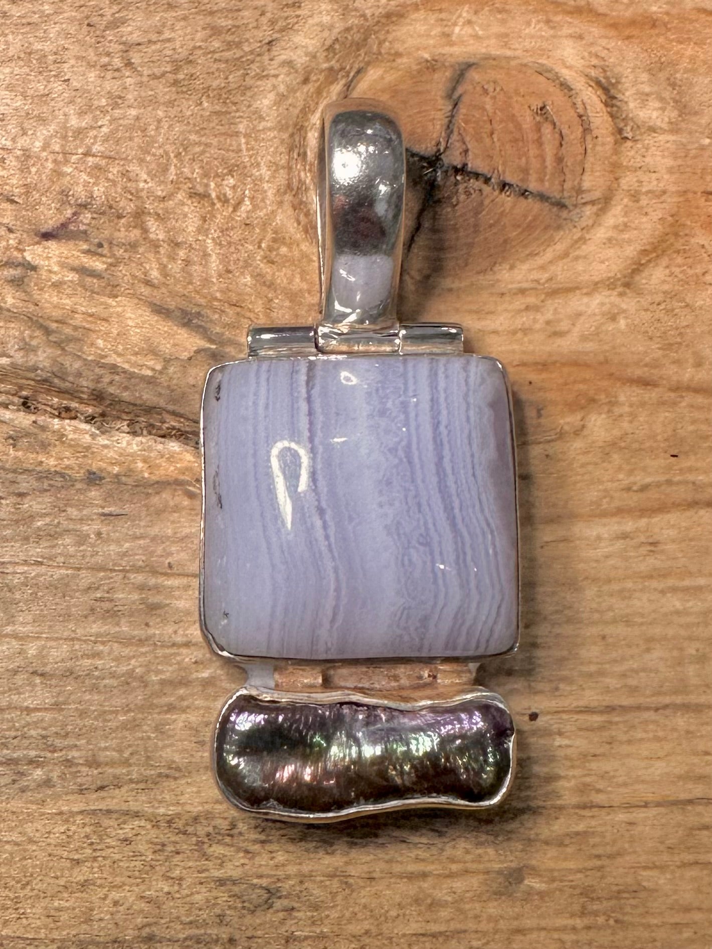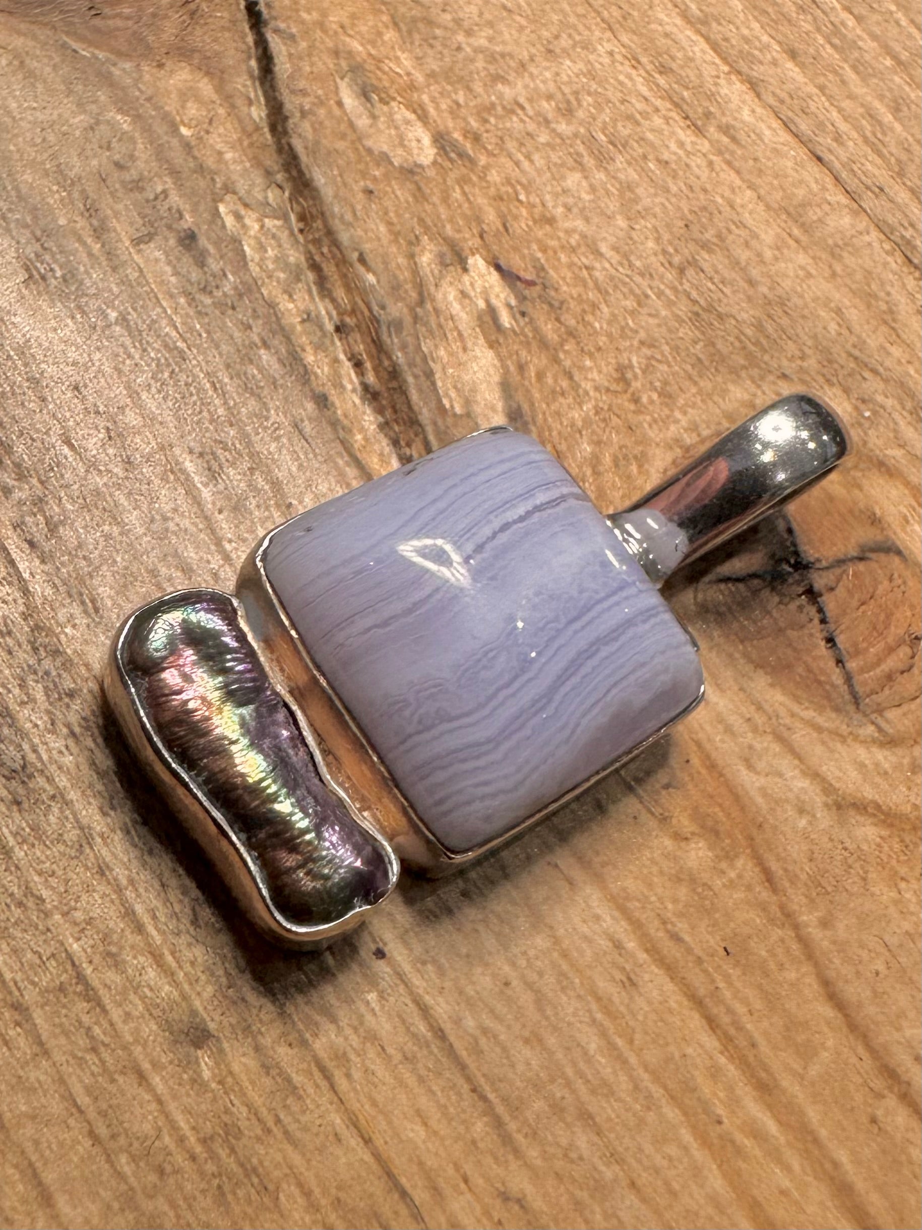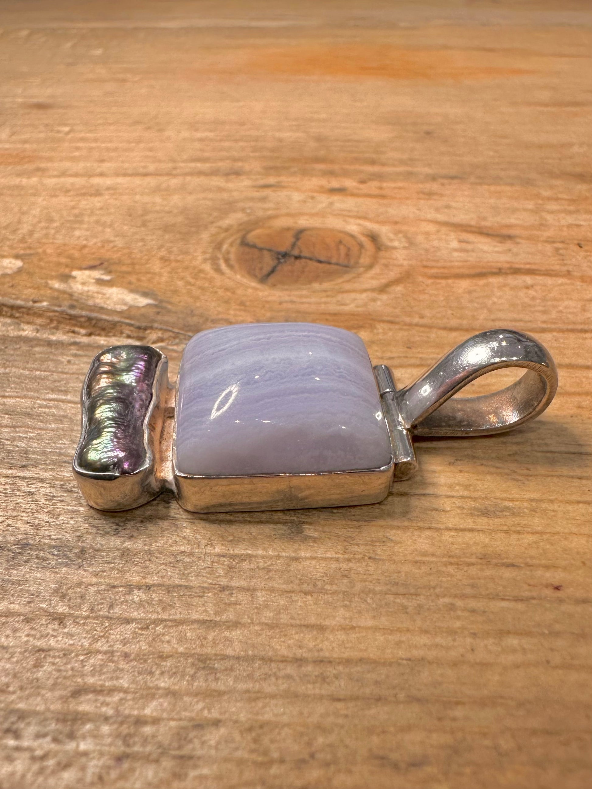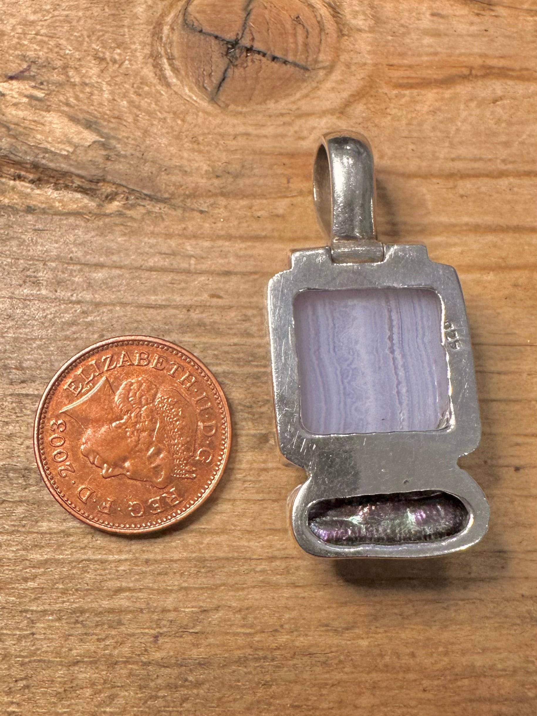 Abstract Lace Agate and Abalone 925 Silver Pendant