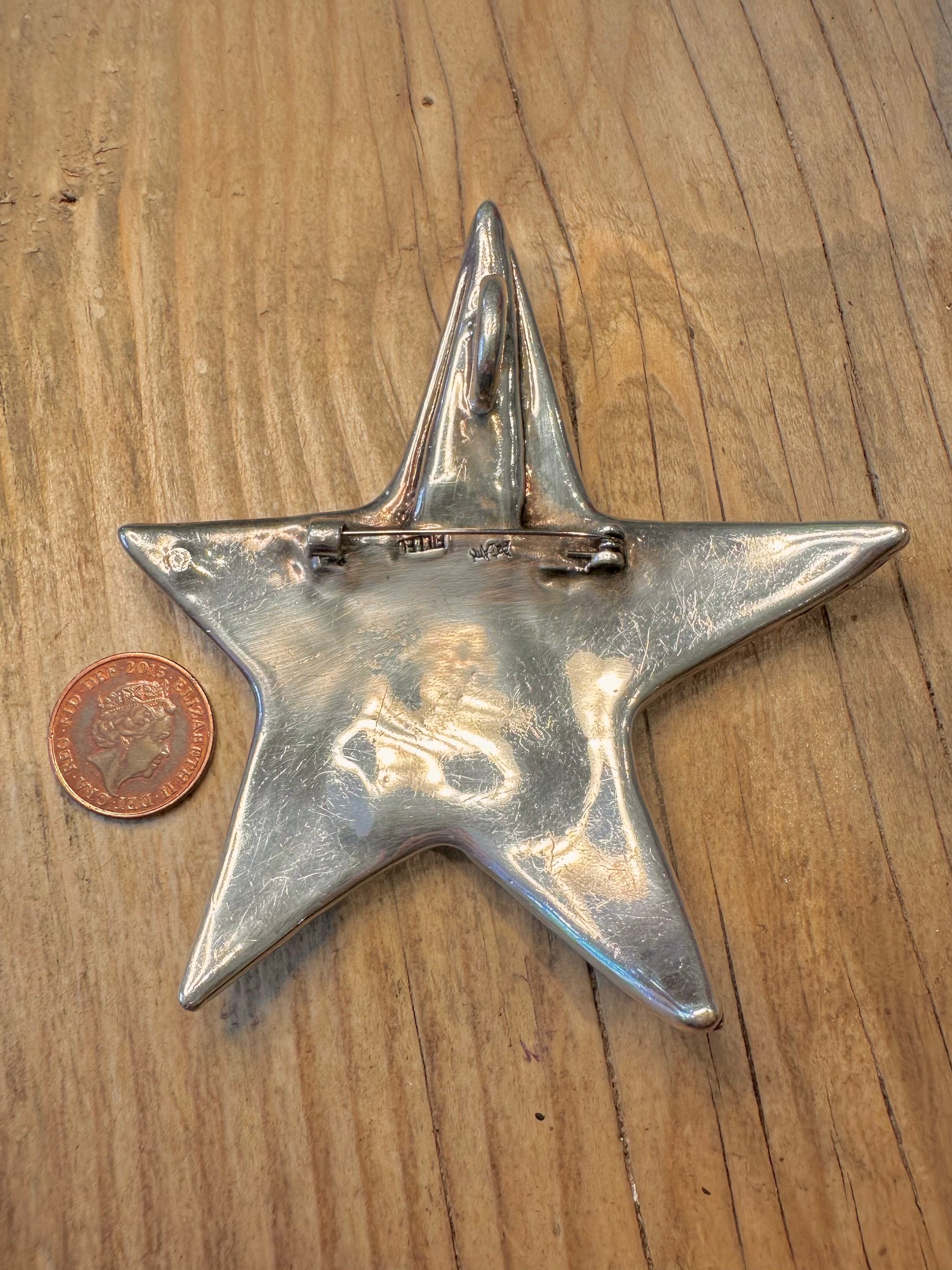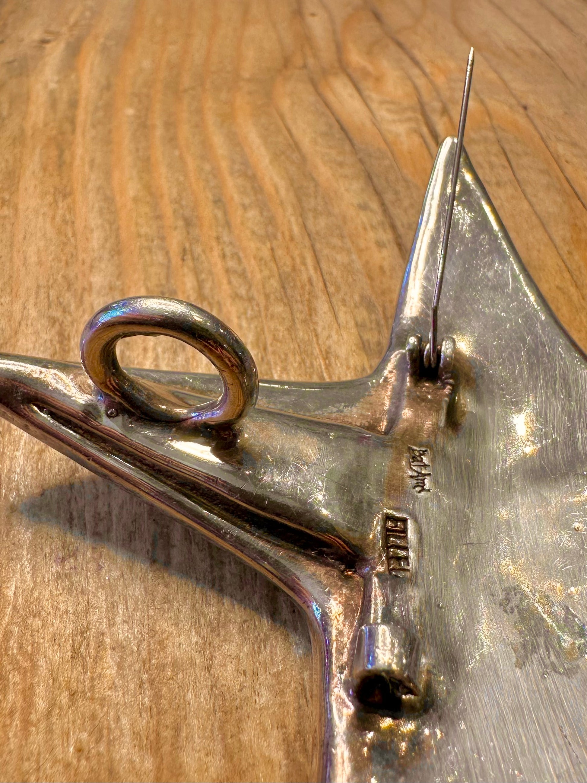 Abstract Large Chunky Star Maker Bat Art 925 Sterling Silver Brooch Pendant