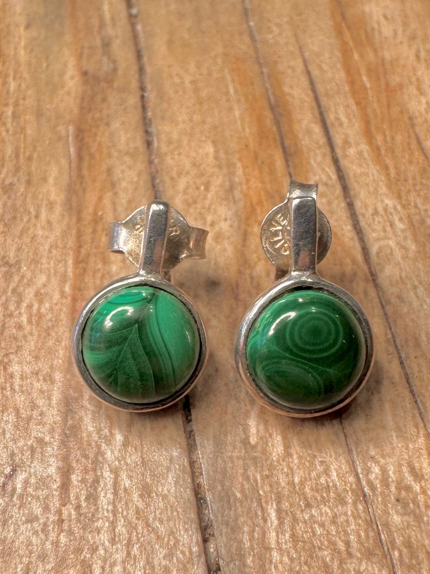 Abstract Malachite Stud 925 Sterling Silver Earrings