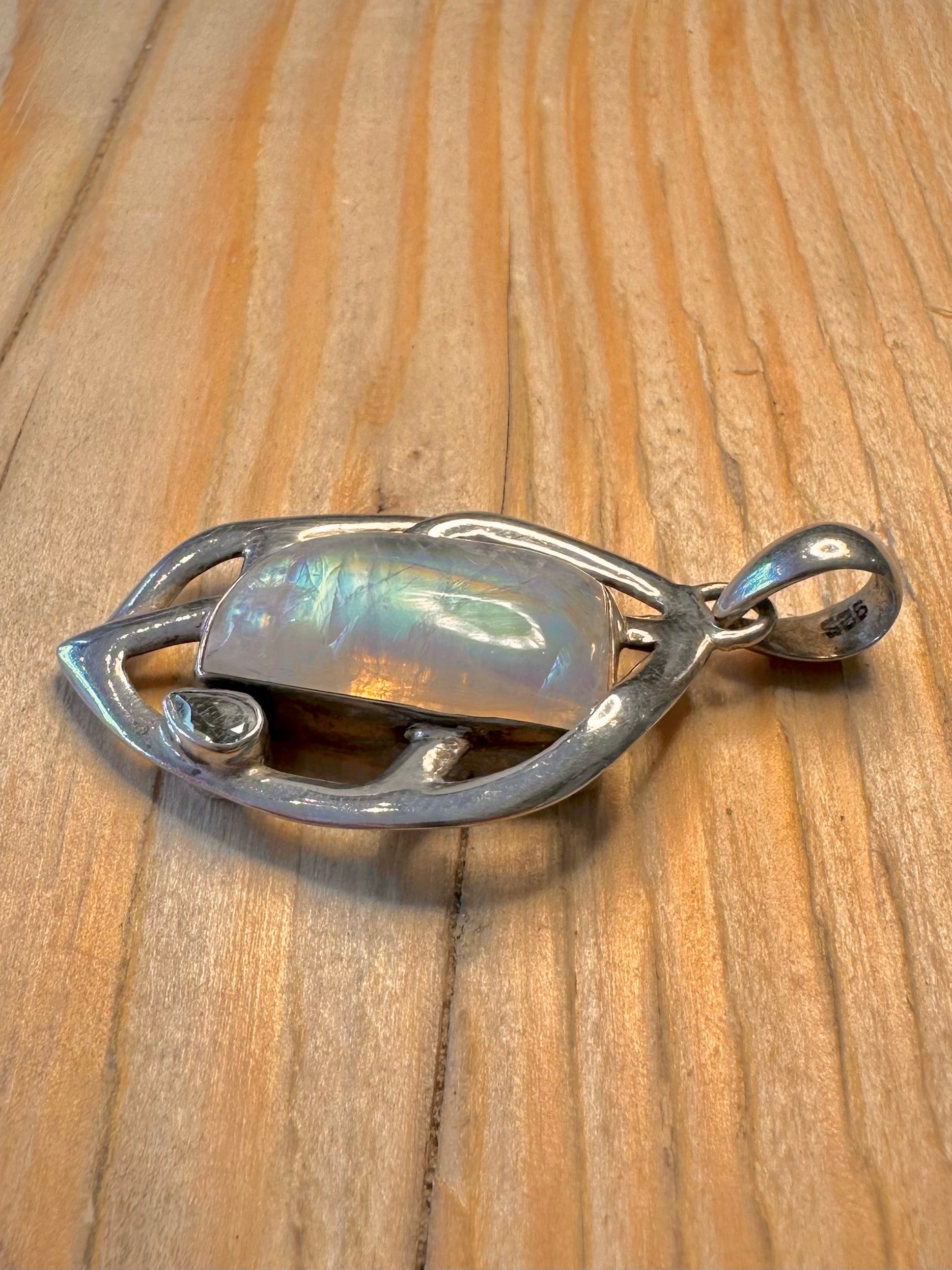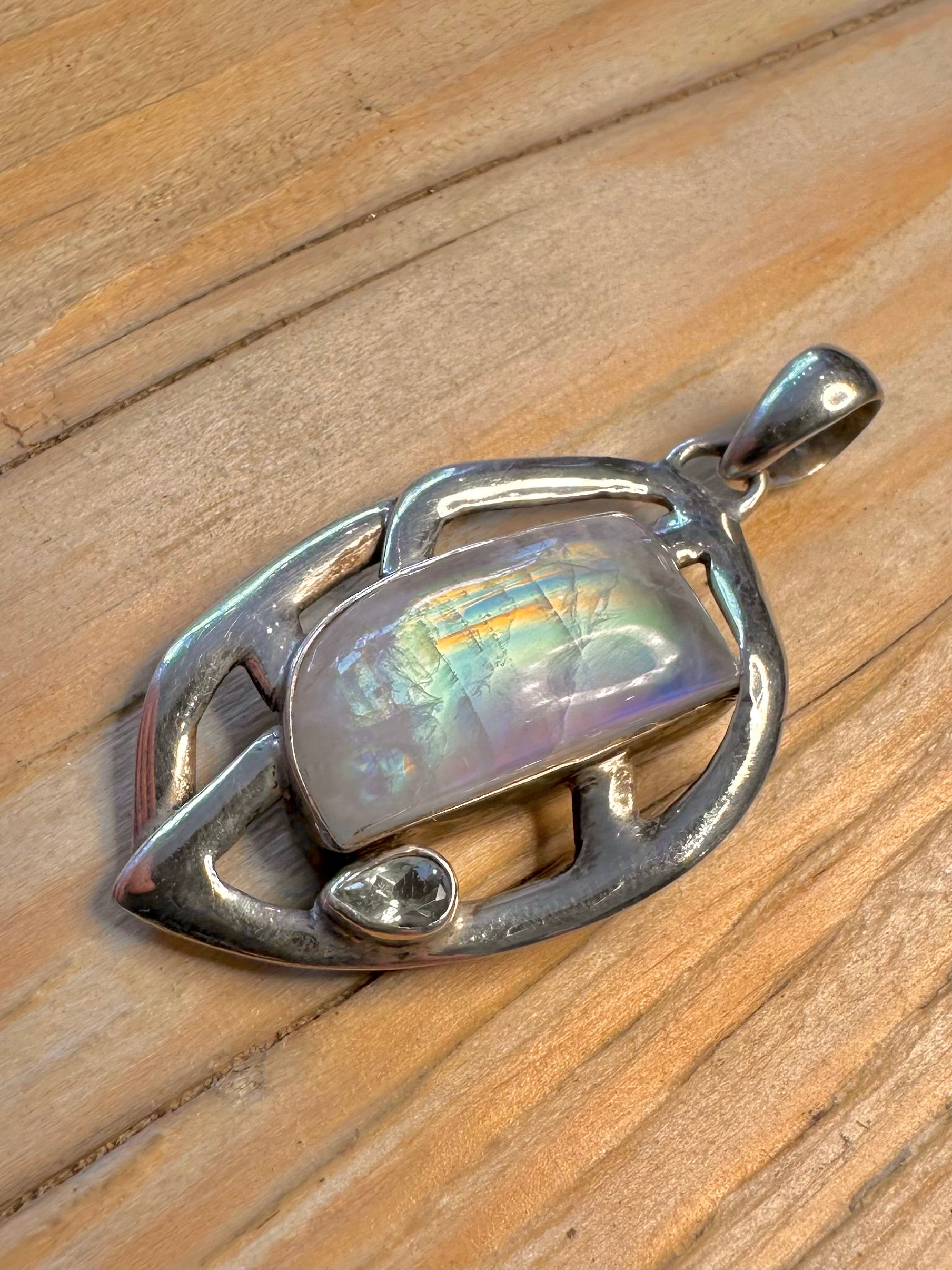 Abstract Moonstone and Blue Topaz 925 Silver Pendant