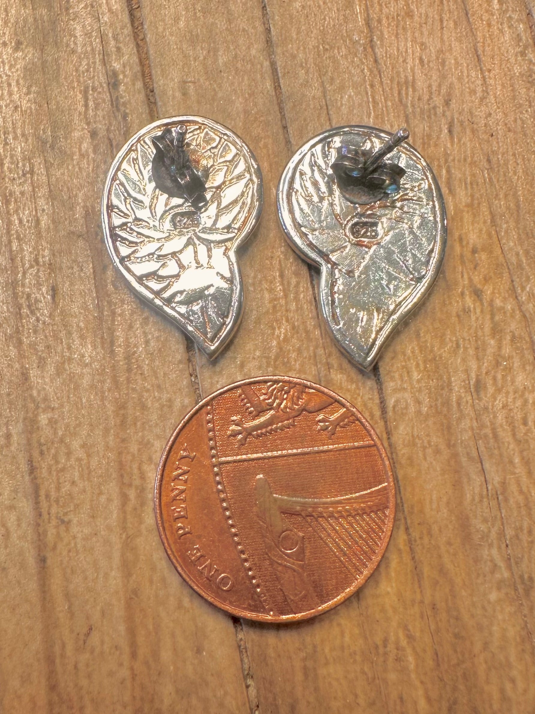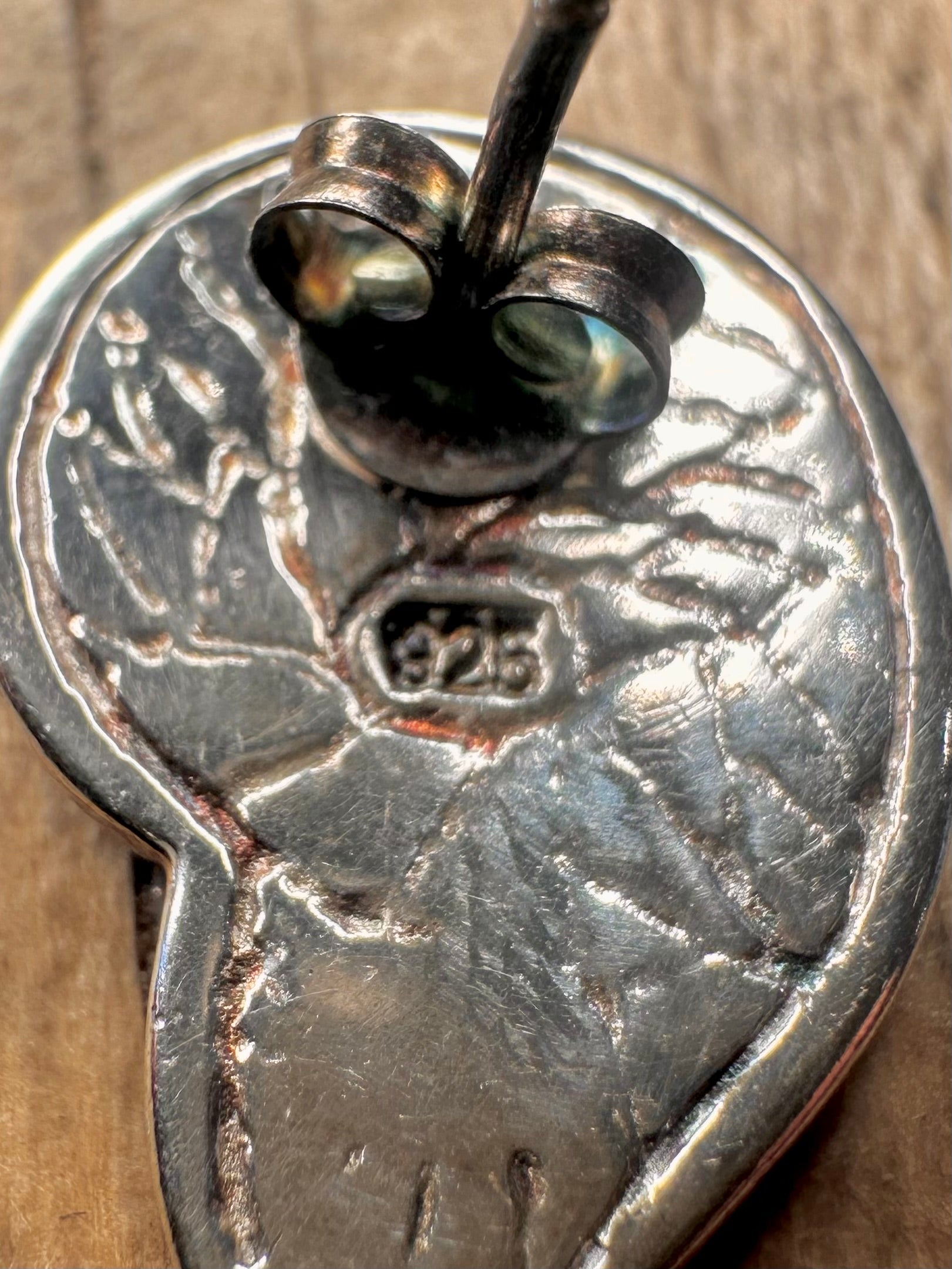 Abstract Mother of Pearl and Onyx Inlay Shell 925 Sterling Silver Earrings