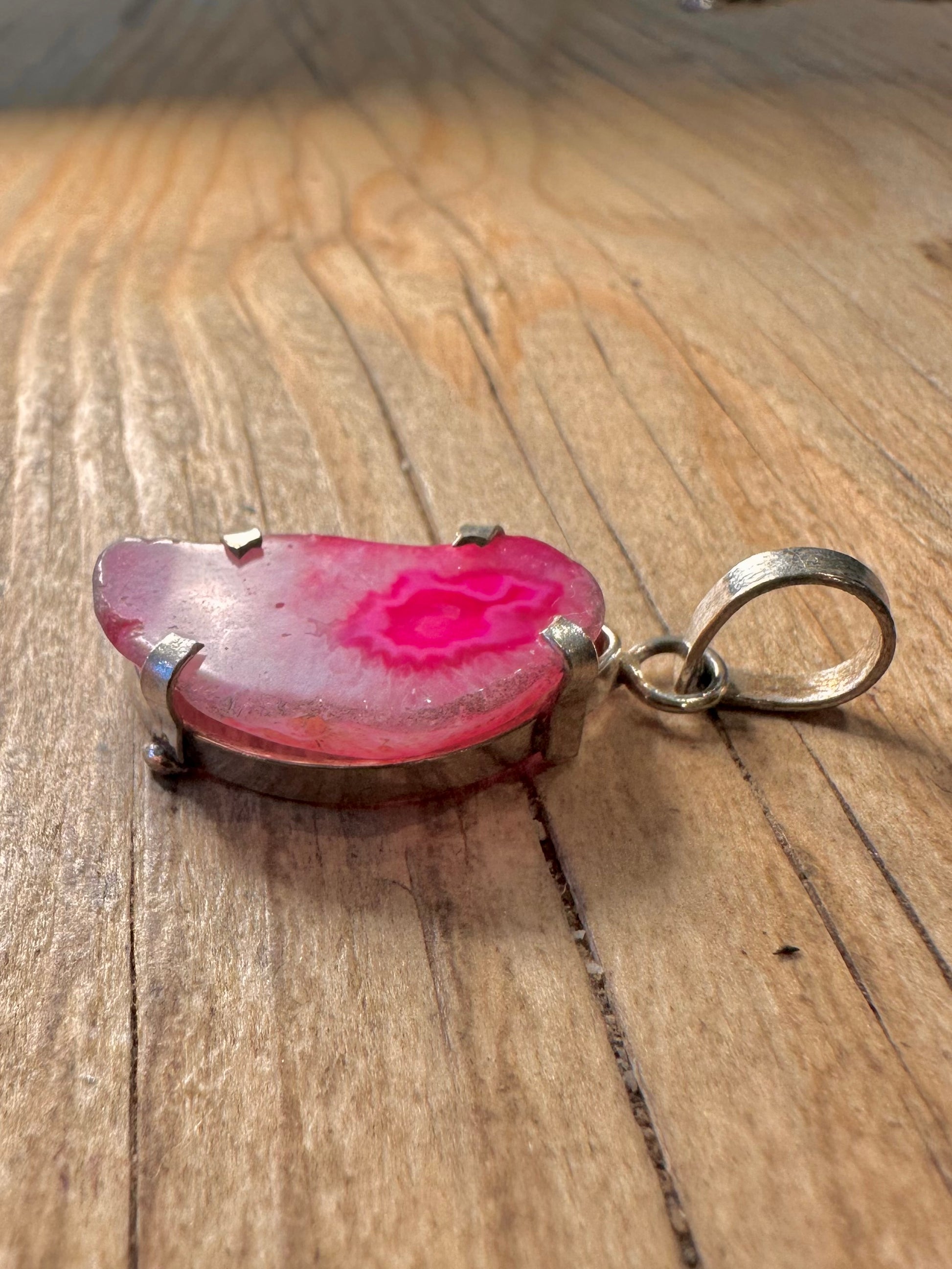 Abstract Pink Druzy Agate Slice 925 Sterling Silver Pendant